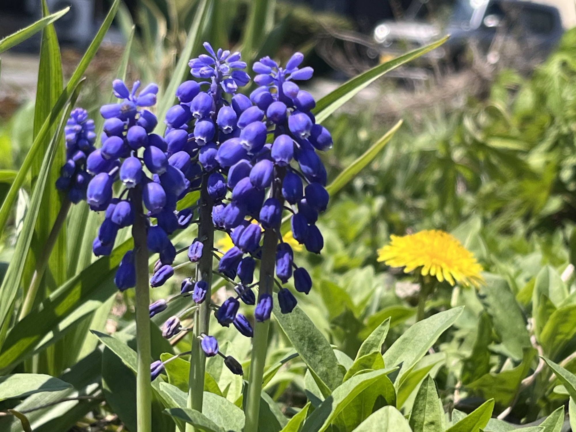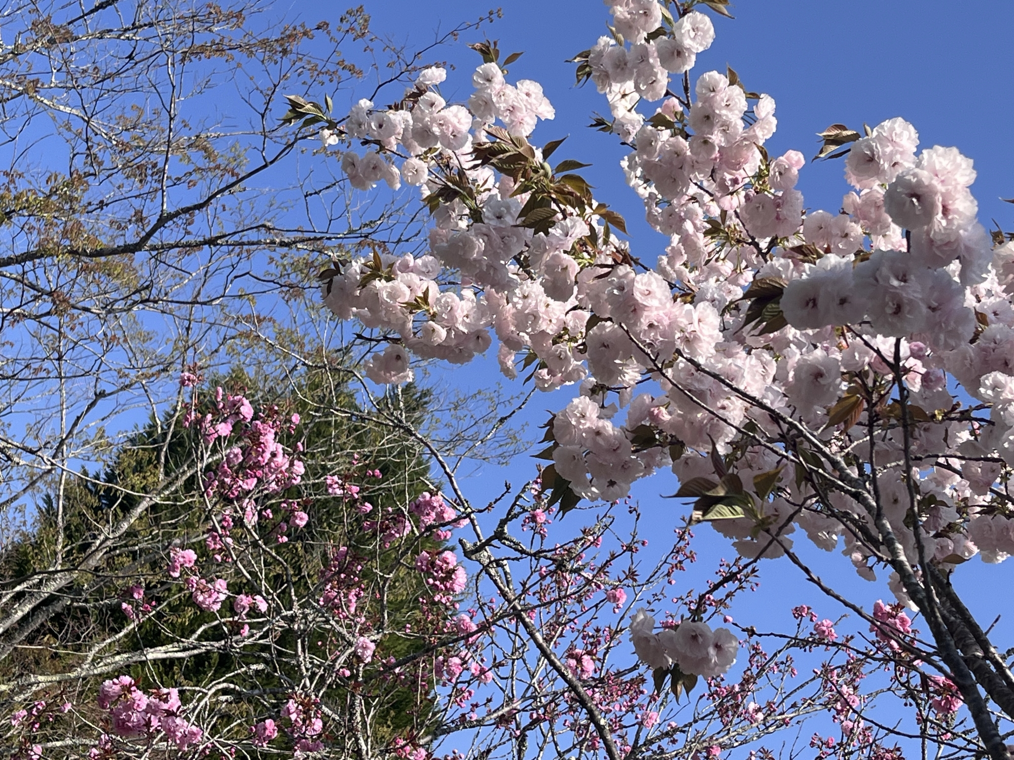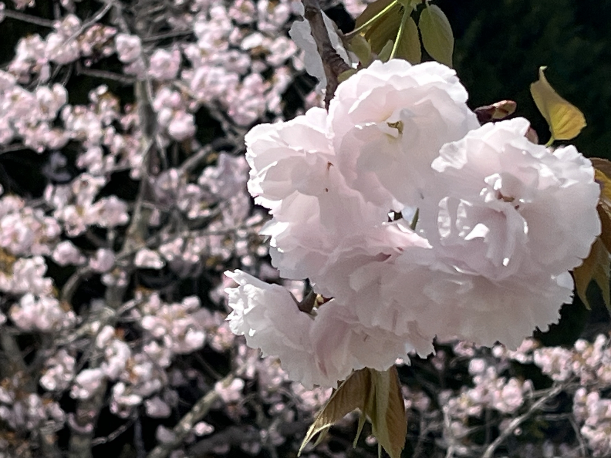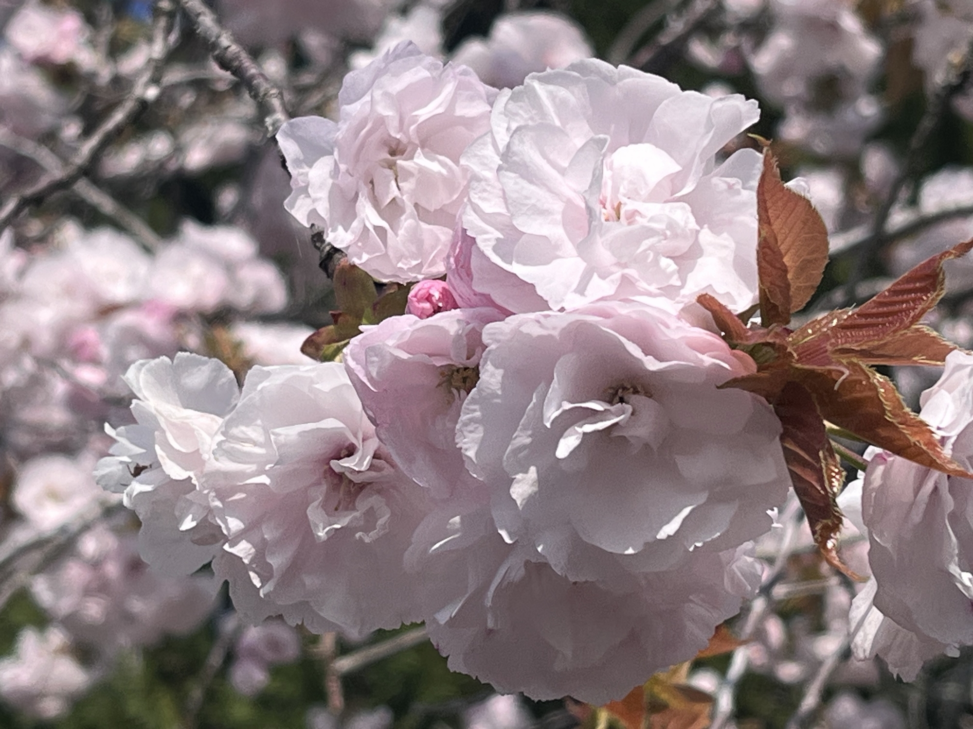 そして、ふれあい公園横の八重桜の並木道……濃い色も開花がどんどん進んでいます。