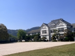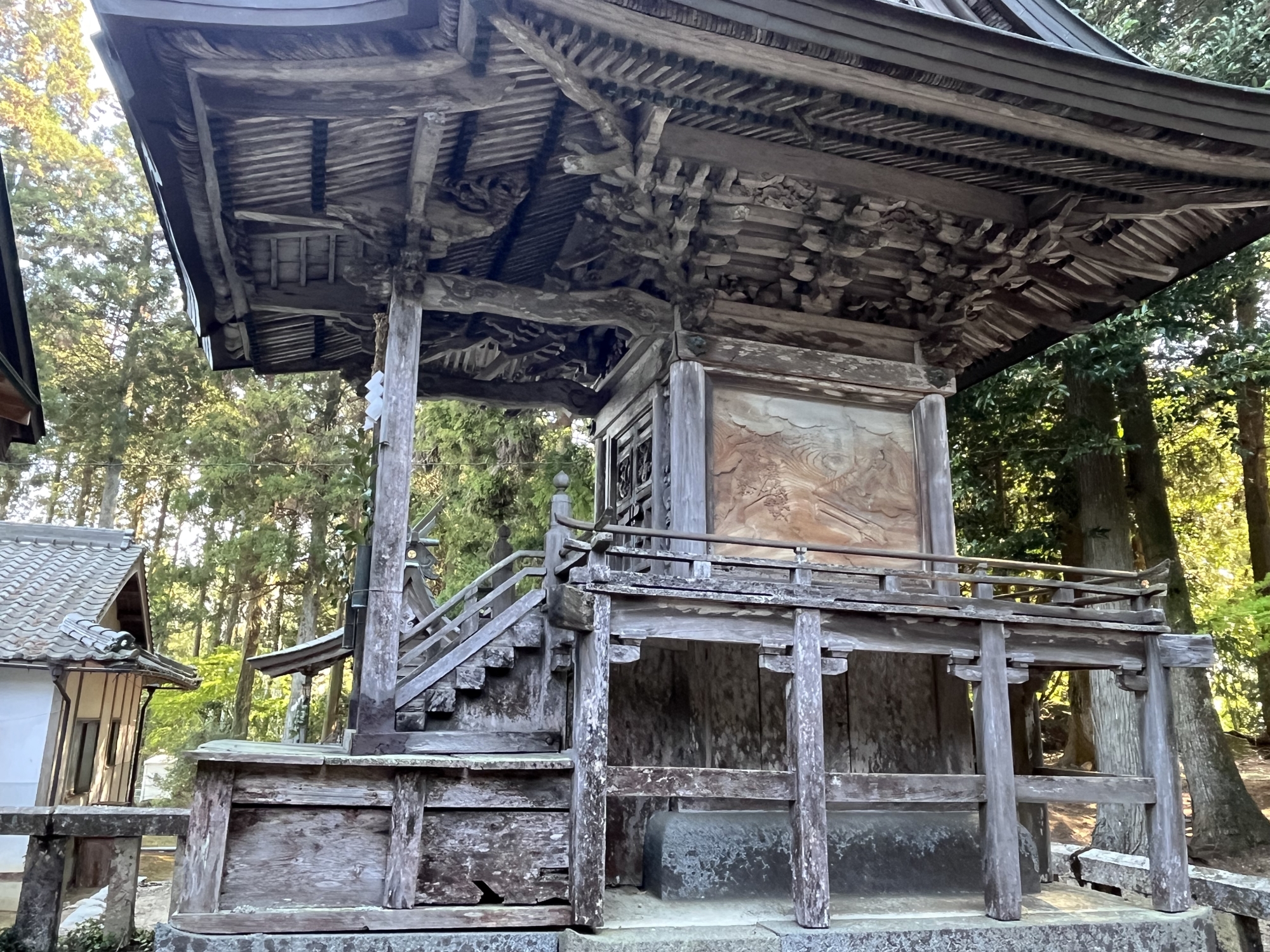 緑もきれいし、本殿横の浮霊前角舎の本殿の横の壁は木彫り。