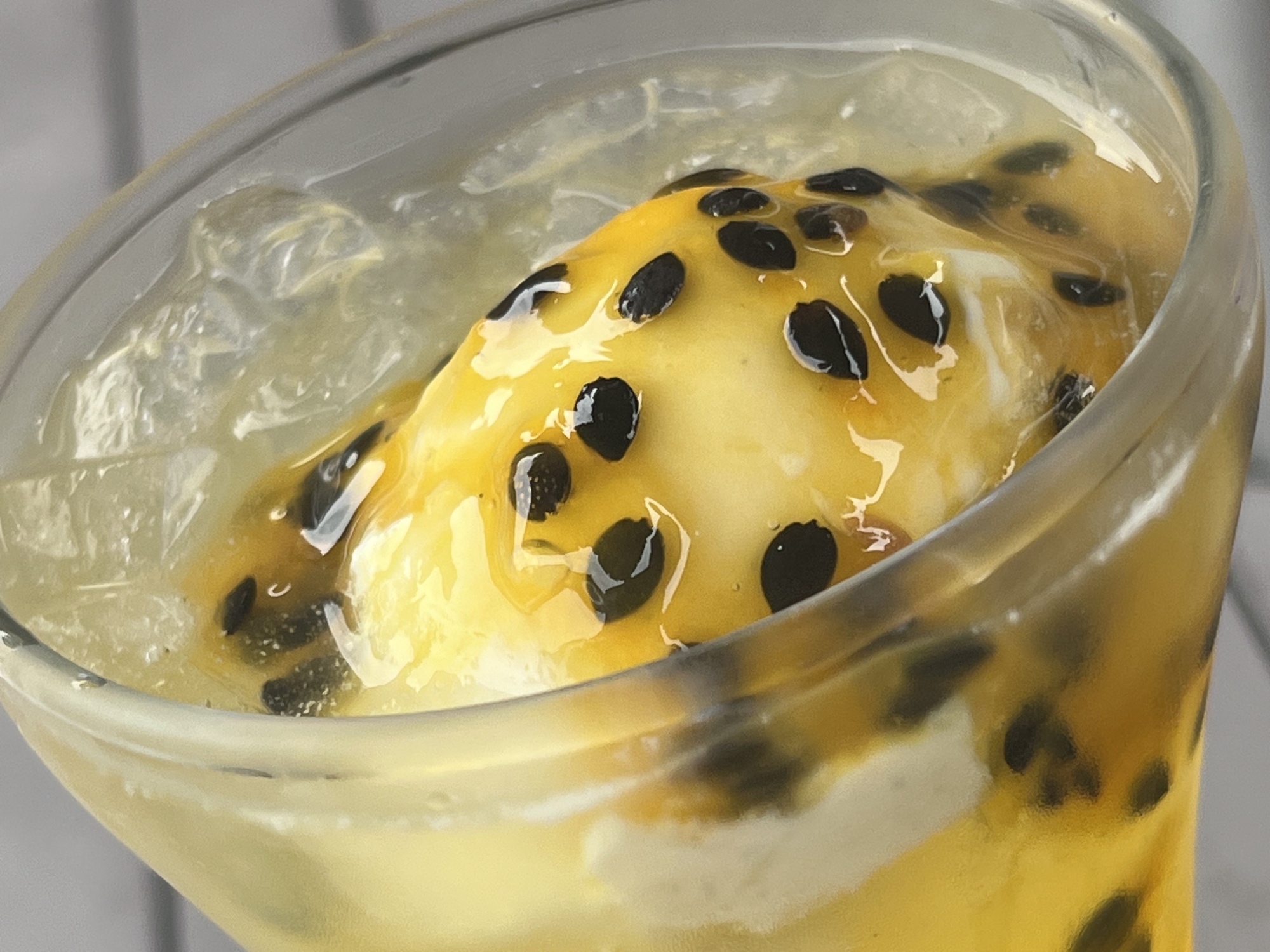 今、矢掛は町あげて「クリームソーダ」推し!! パッションフルーツ・クリームソーダを頂戴しました.