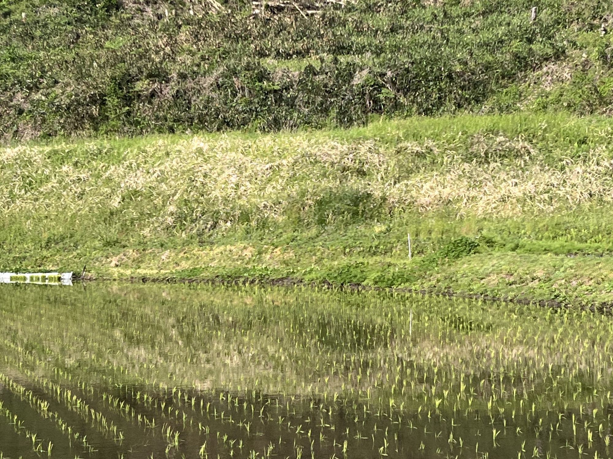小学校の田圃は……少しだけ終わってて、まだ、苗が残ってて……岳ねんのグループで少しずつするのかな??