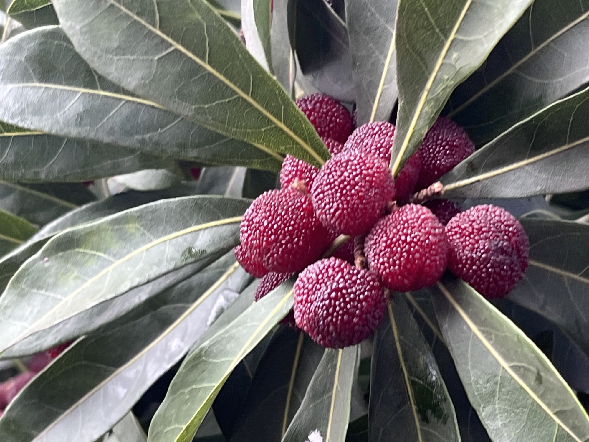 ここは、ヤマモモ並木で……なんていうか、実がすごく落ちています.踏み切れない.