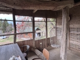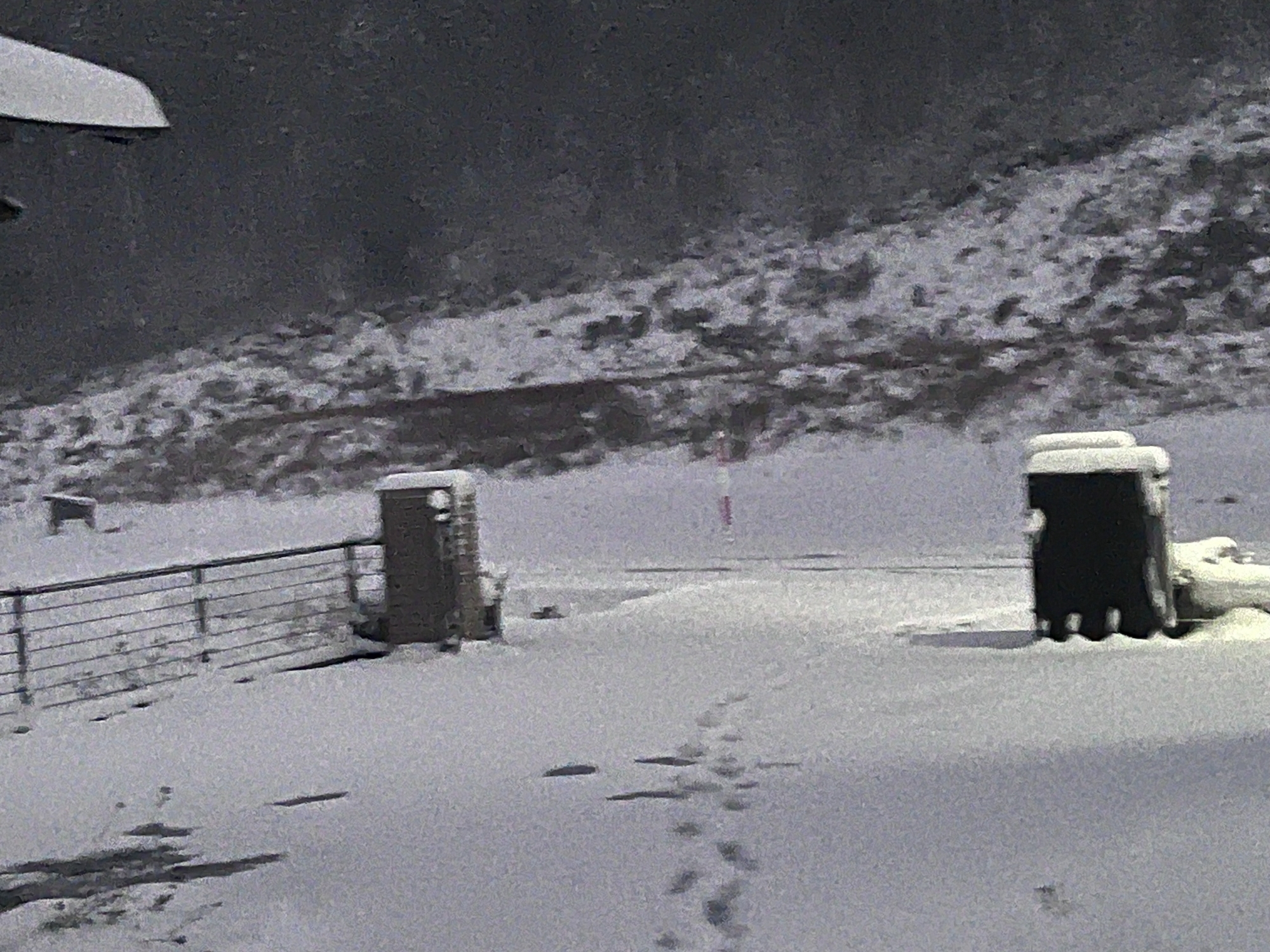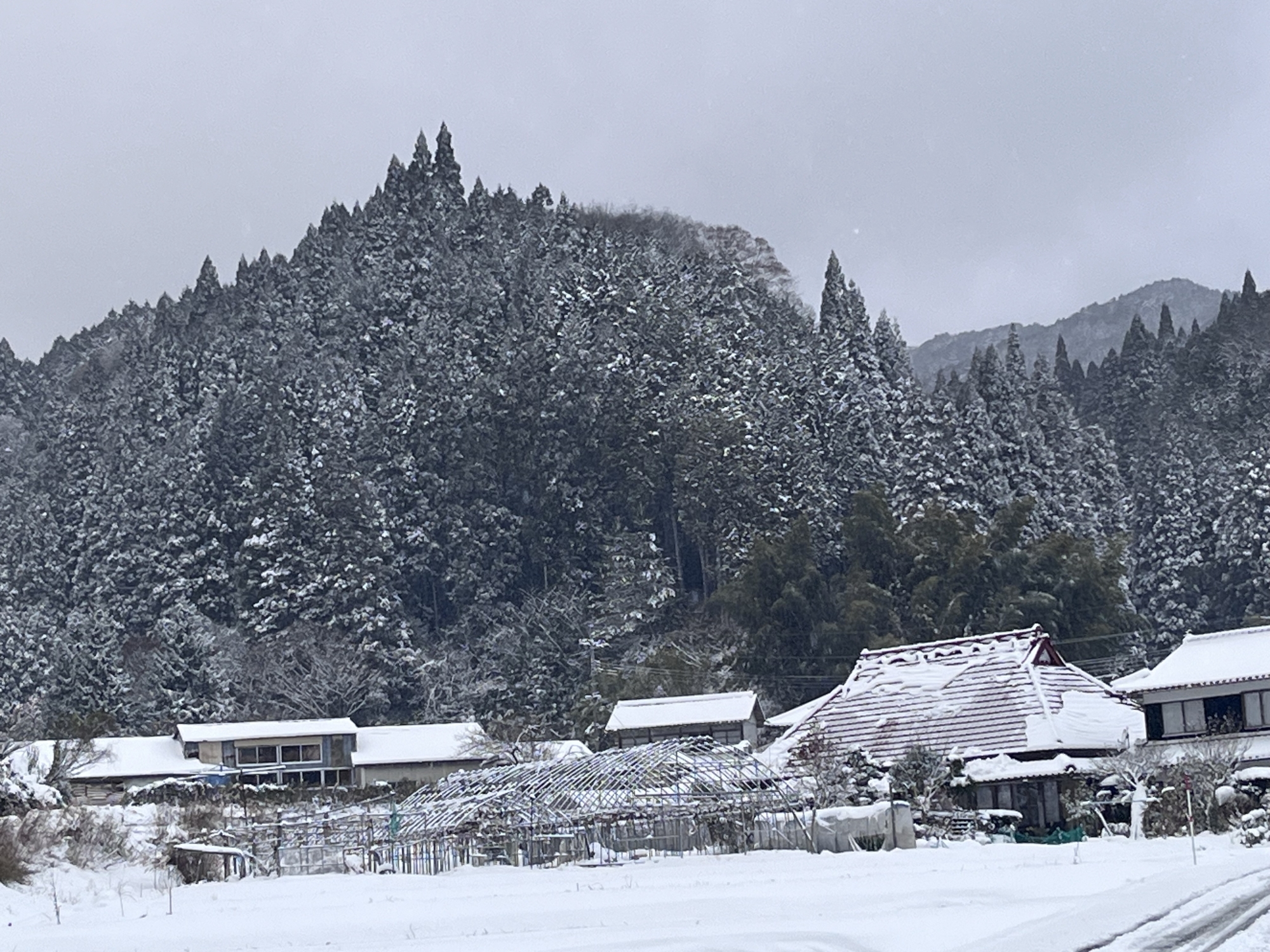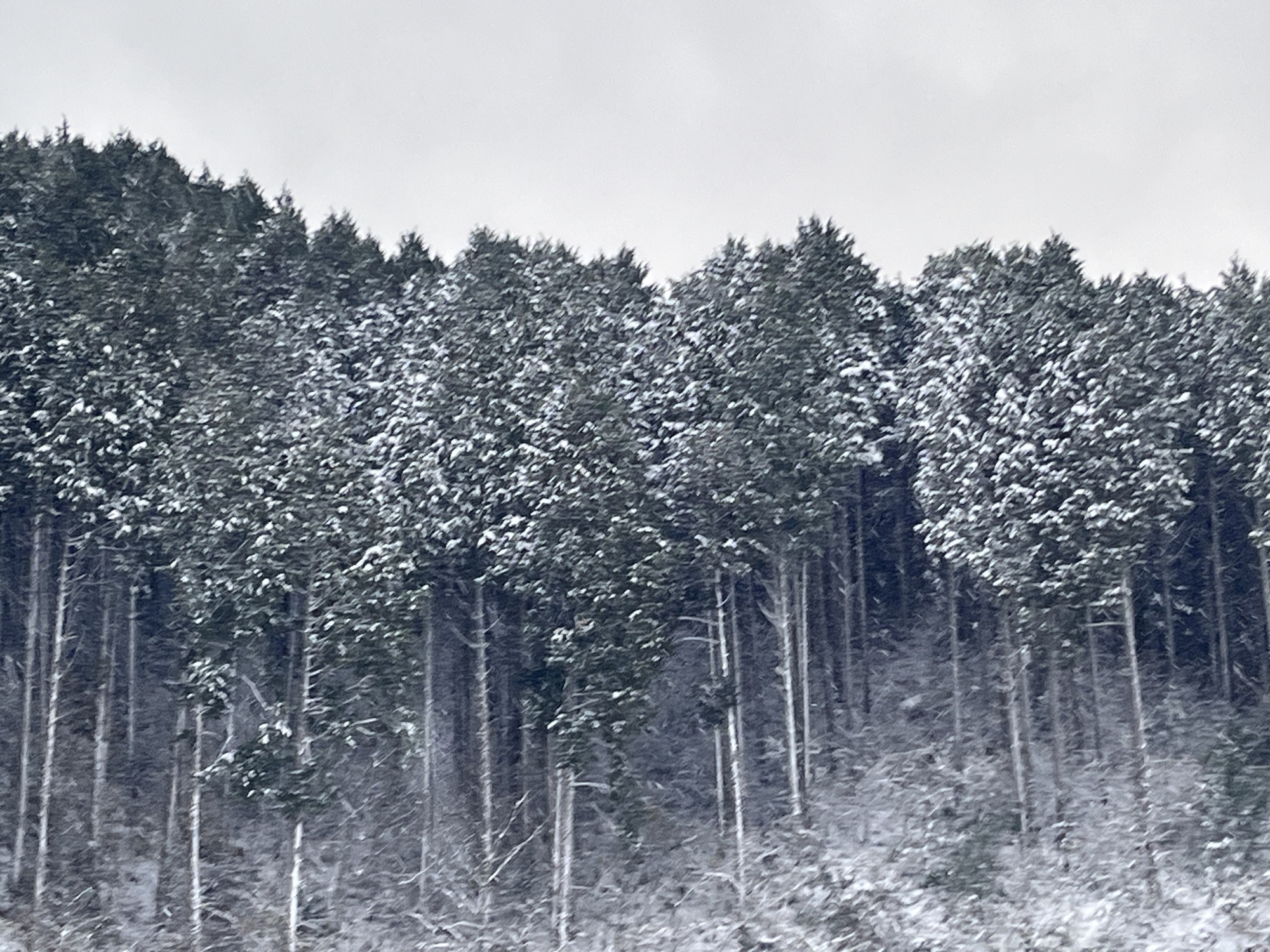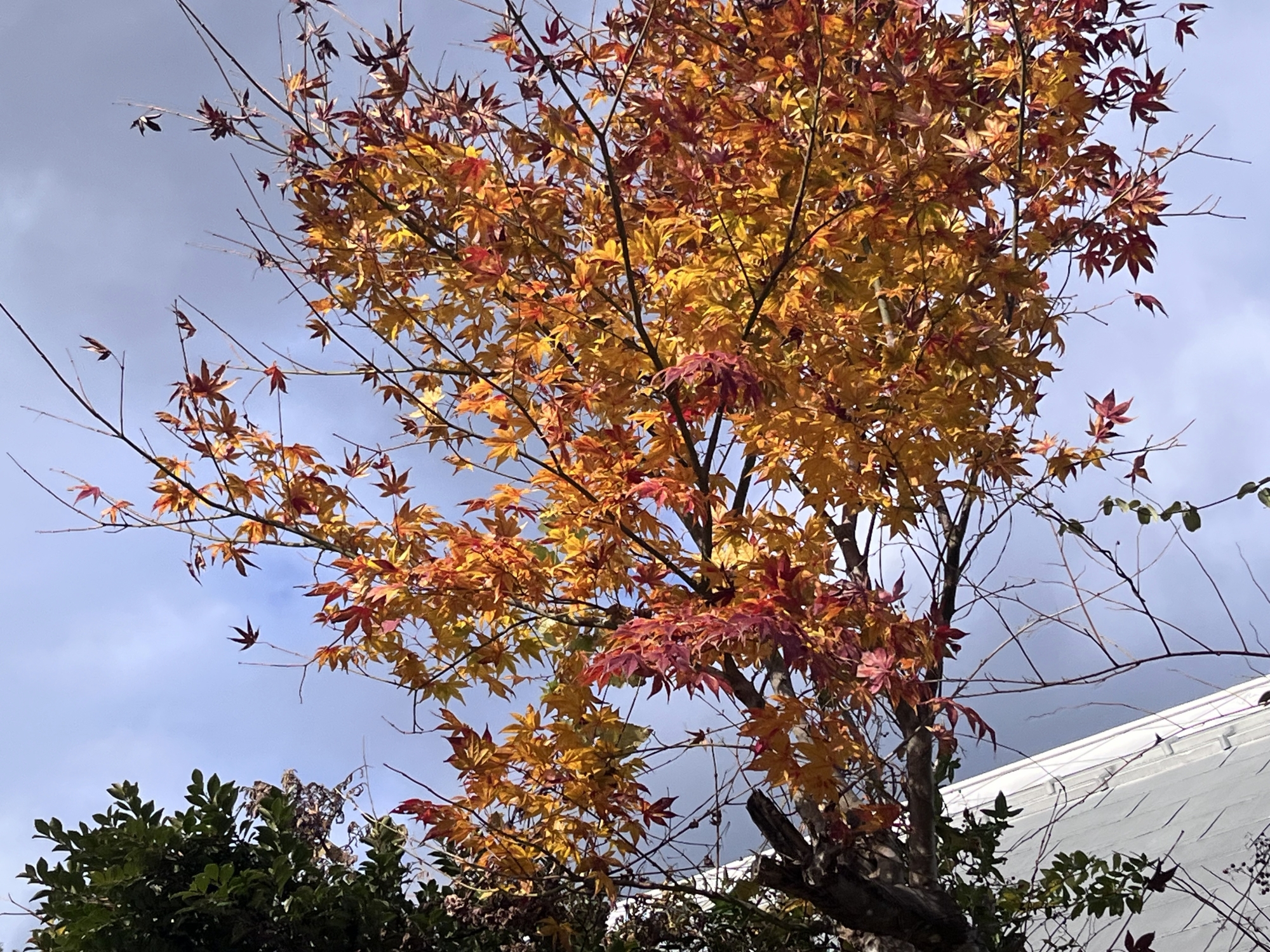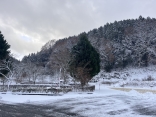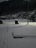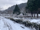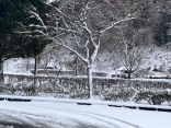 さて、昼は郵便局へ……名残りの紅葉にも雪が積もっていました.