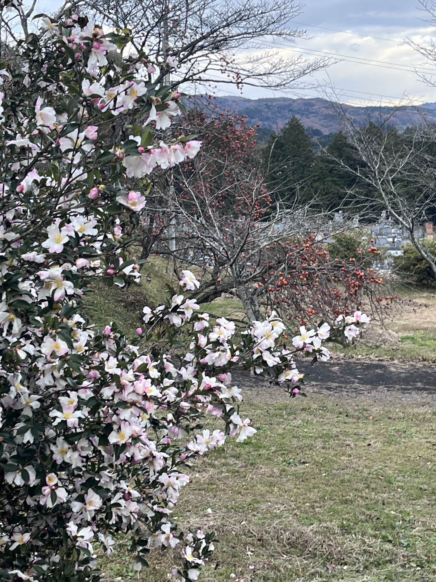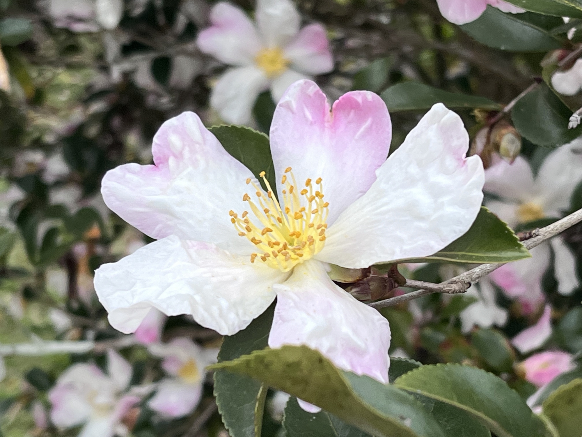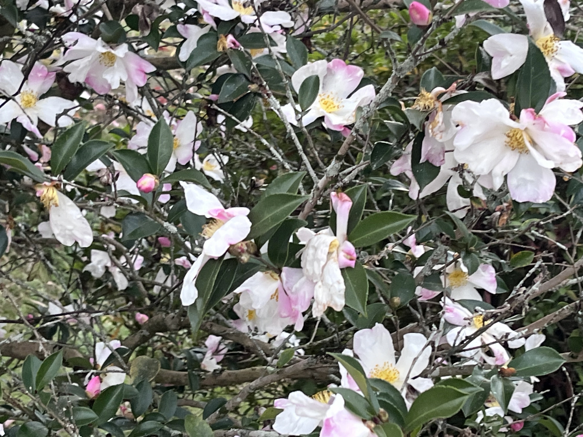さて、車の方に戻ると……山茶花、山茶花咲いた道……です、.
