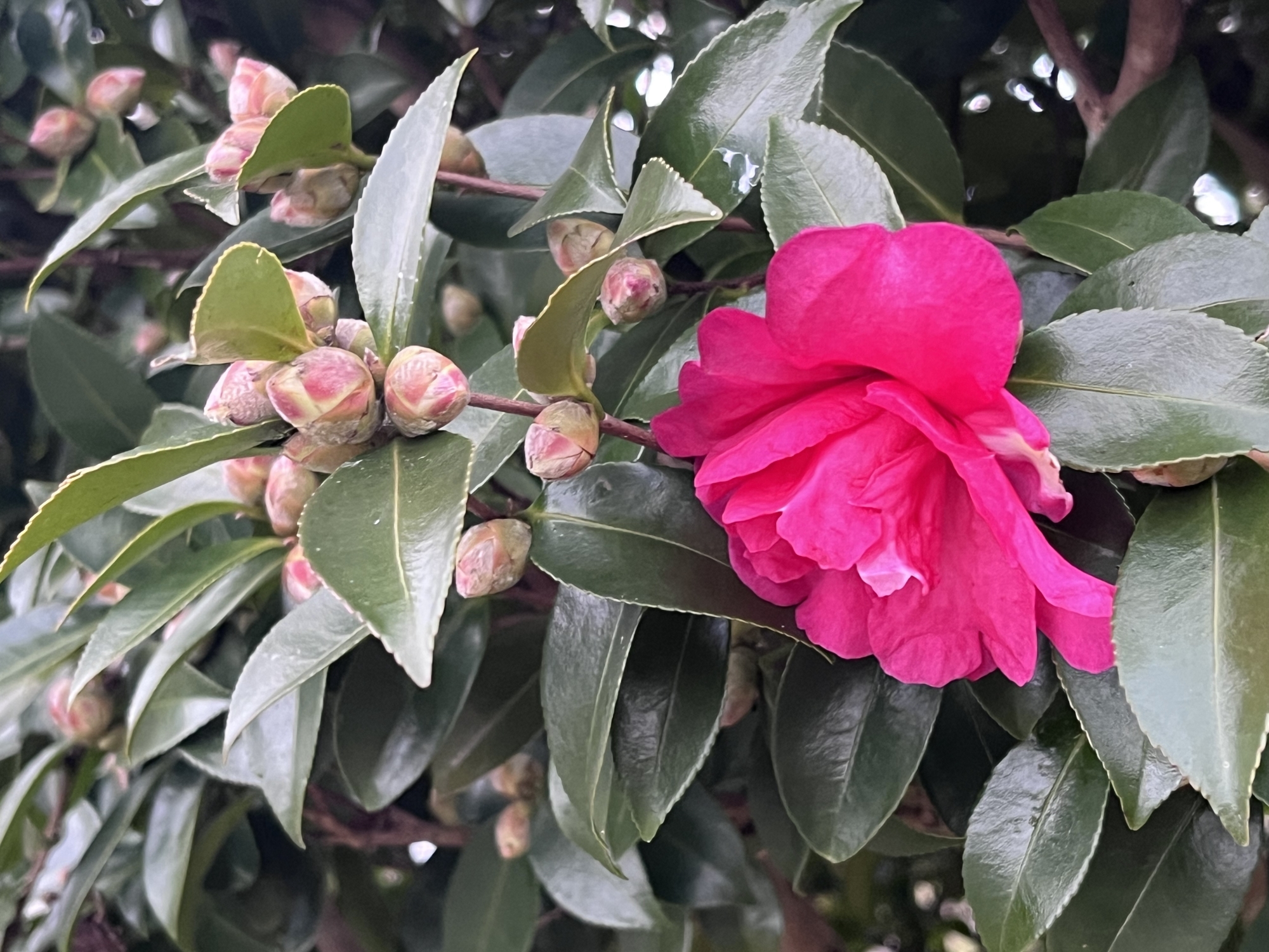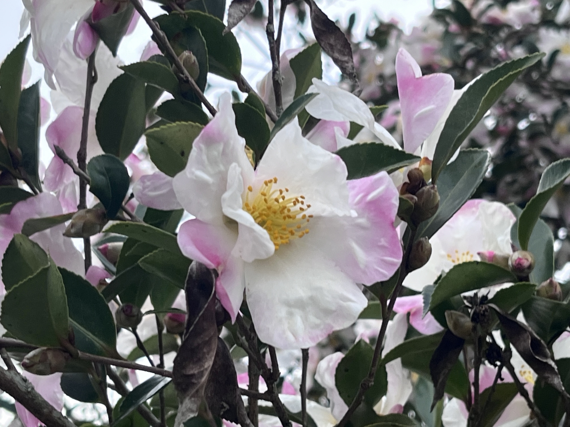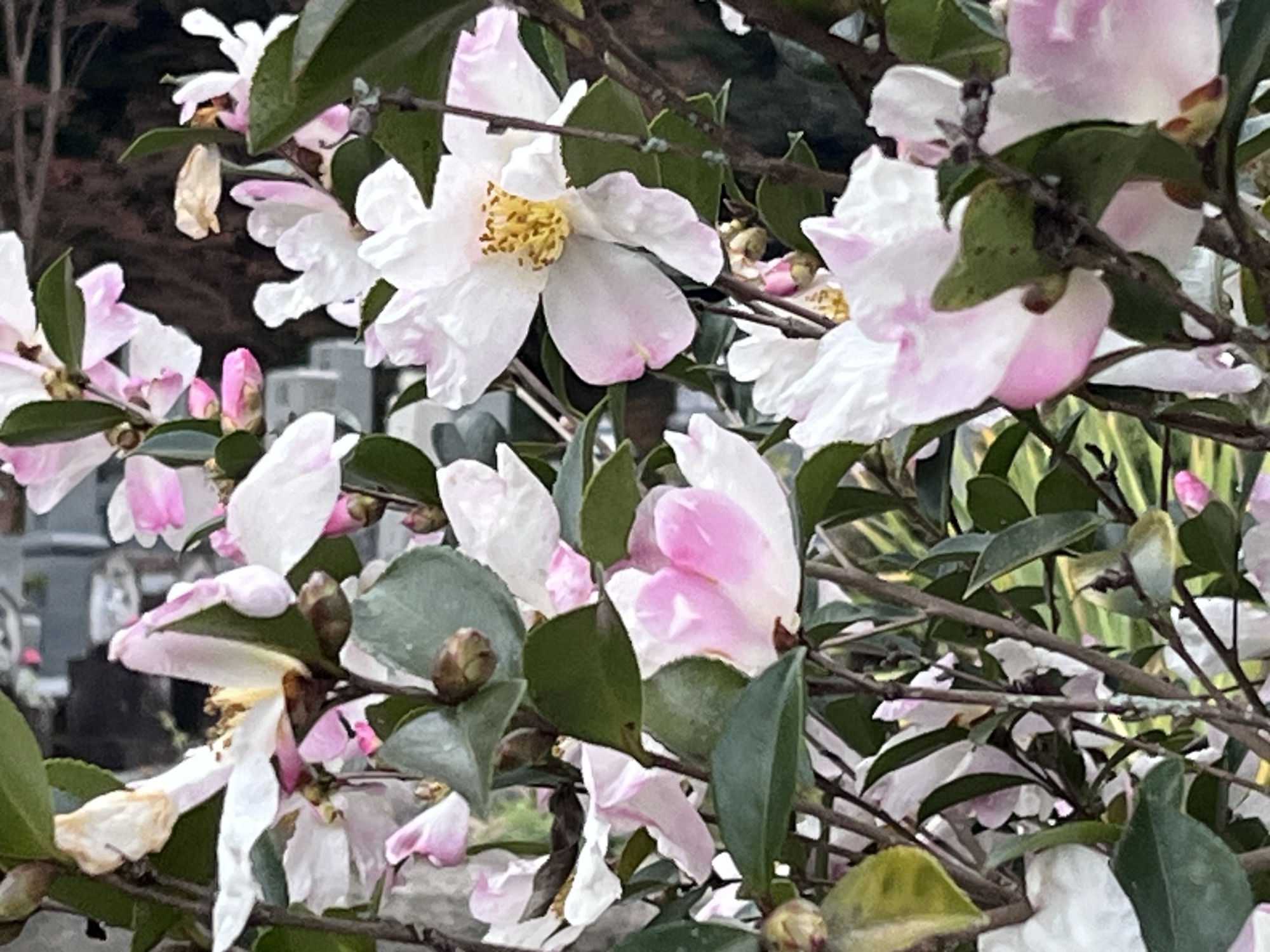 さて、車の方に戻ると……山茶花、山茶花咲いた道……です、.