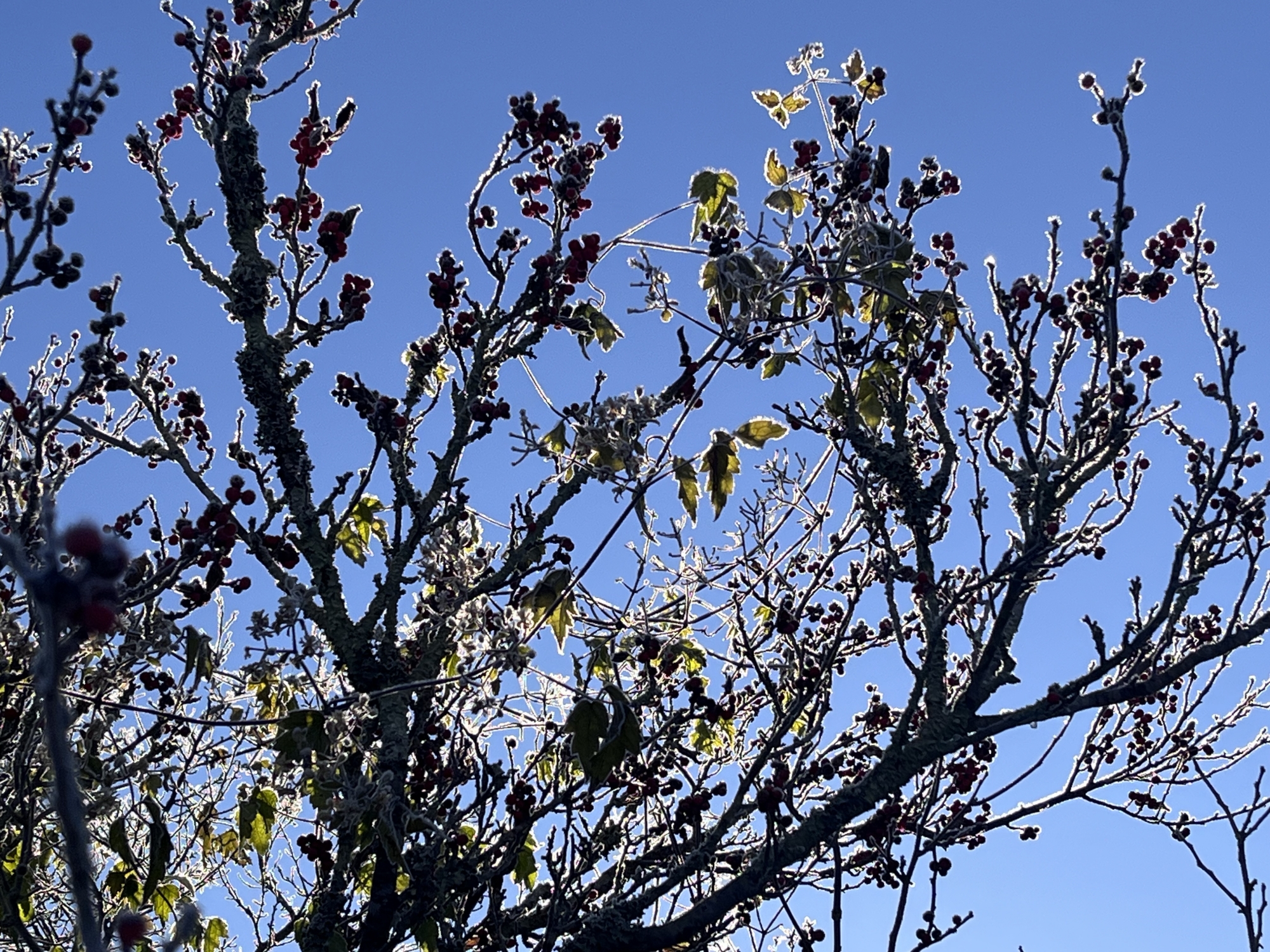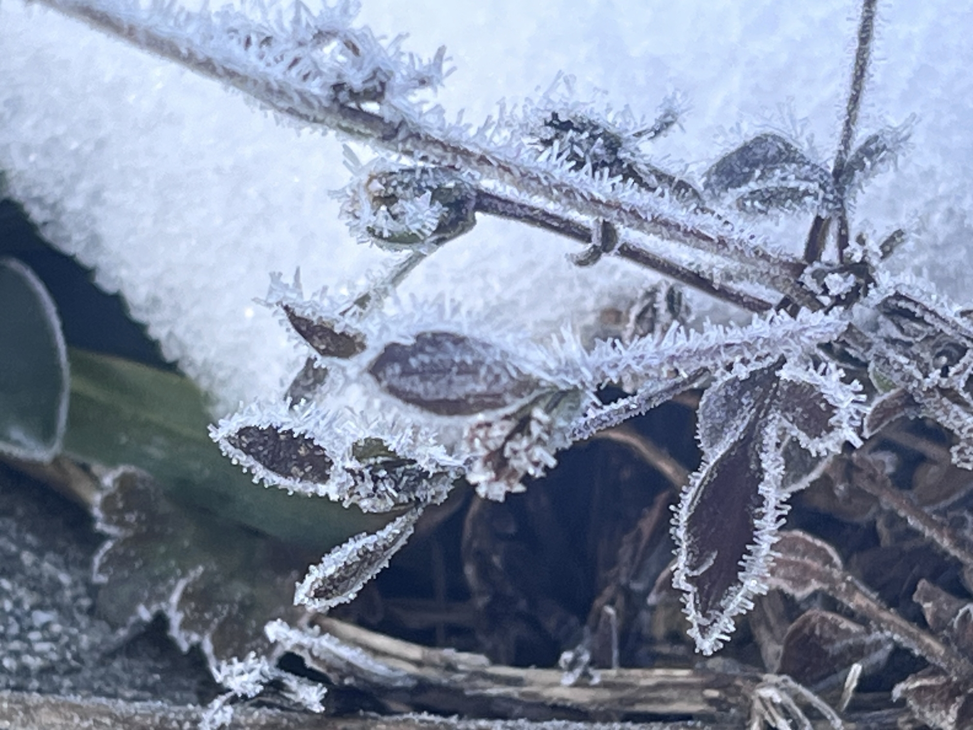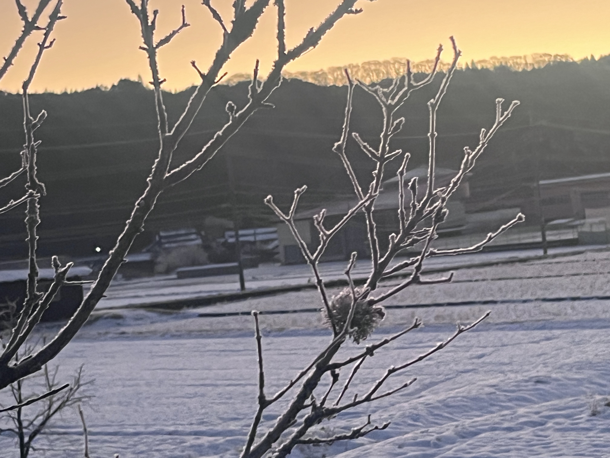 夜明け前……なんだか冷えて、霜.