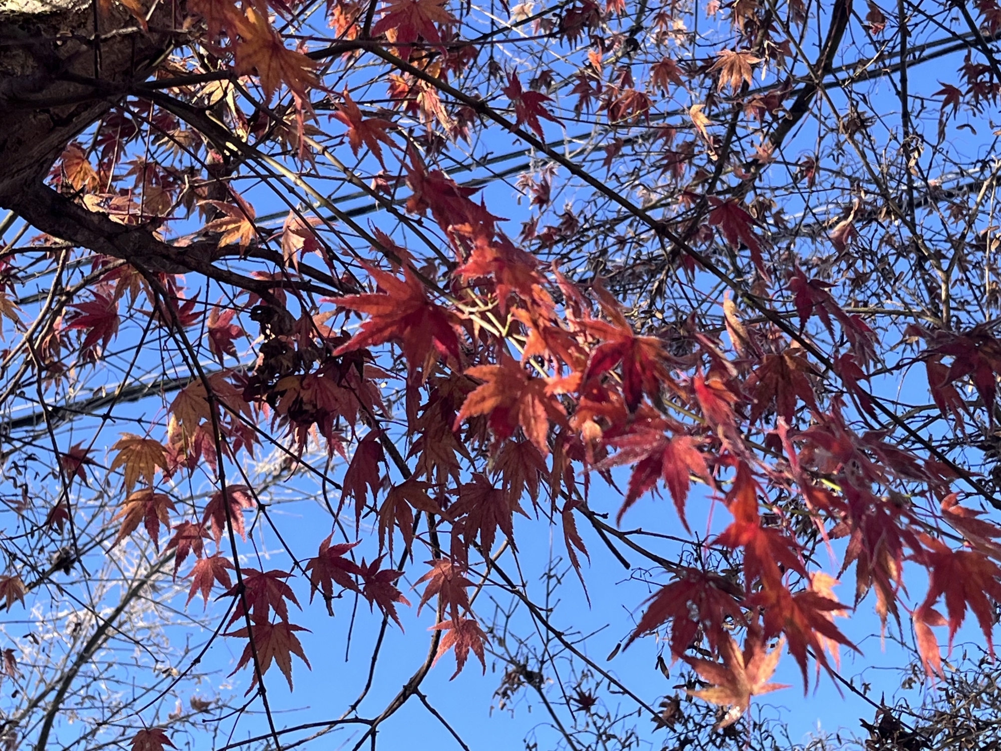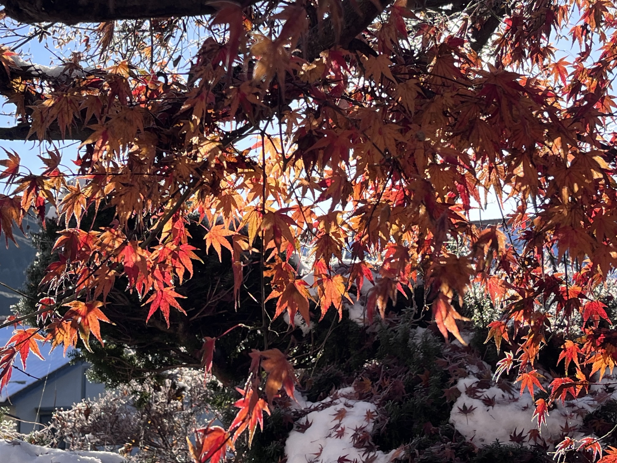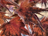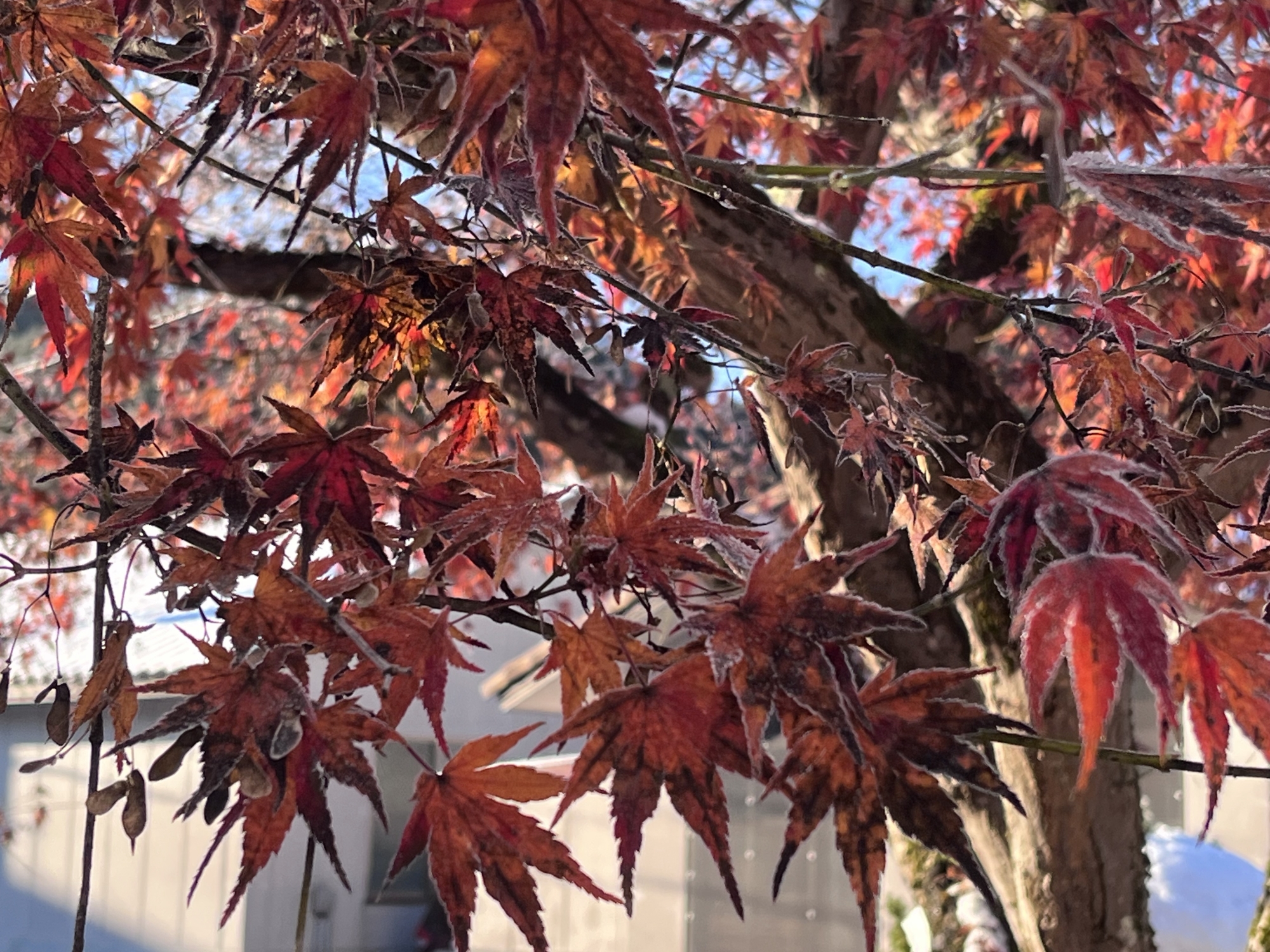 散り忘れている紅葉にも霜.