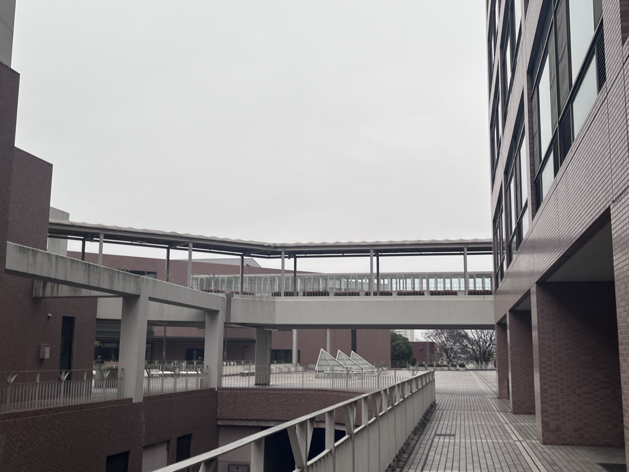 曇り空……小雨空で、タイルも濡れてて、結構、滑る.