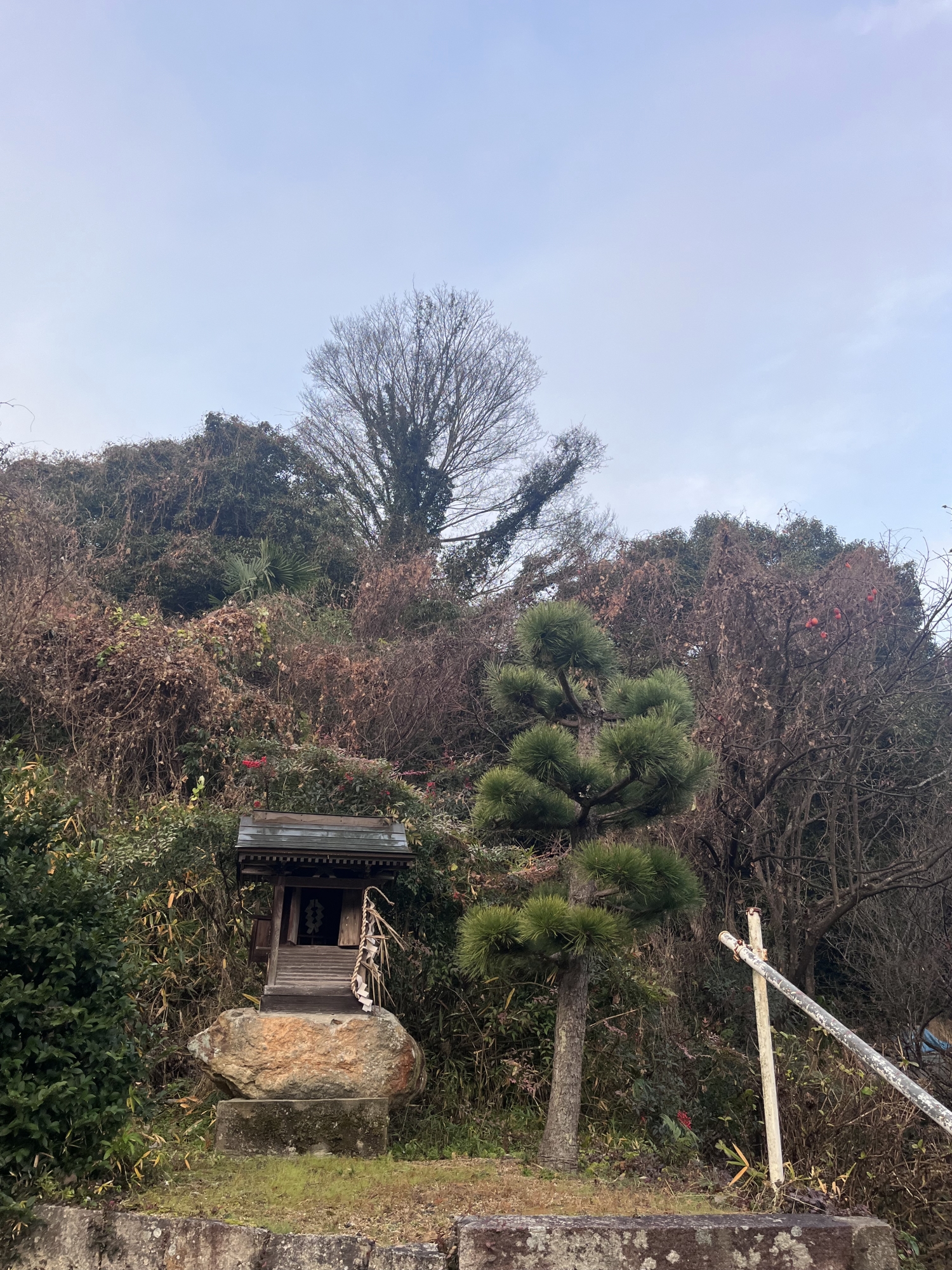 土塀の囲いの外にも摂社と、そして、その近くの摂社には、鳥居.