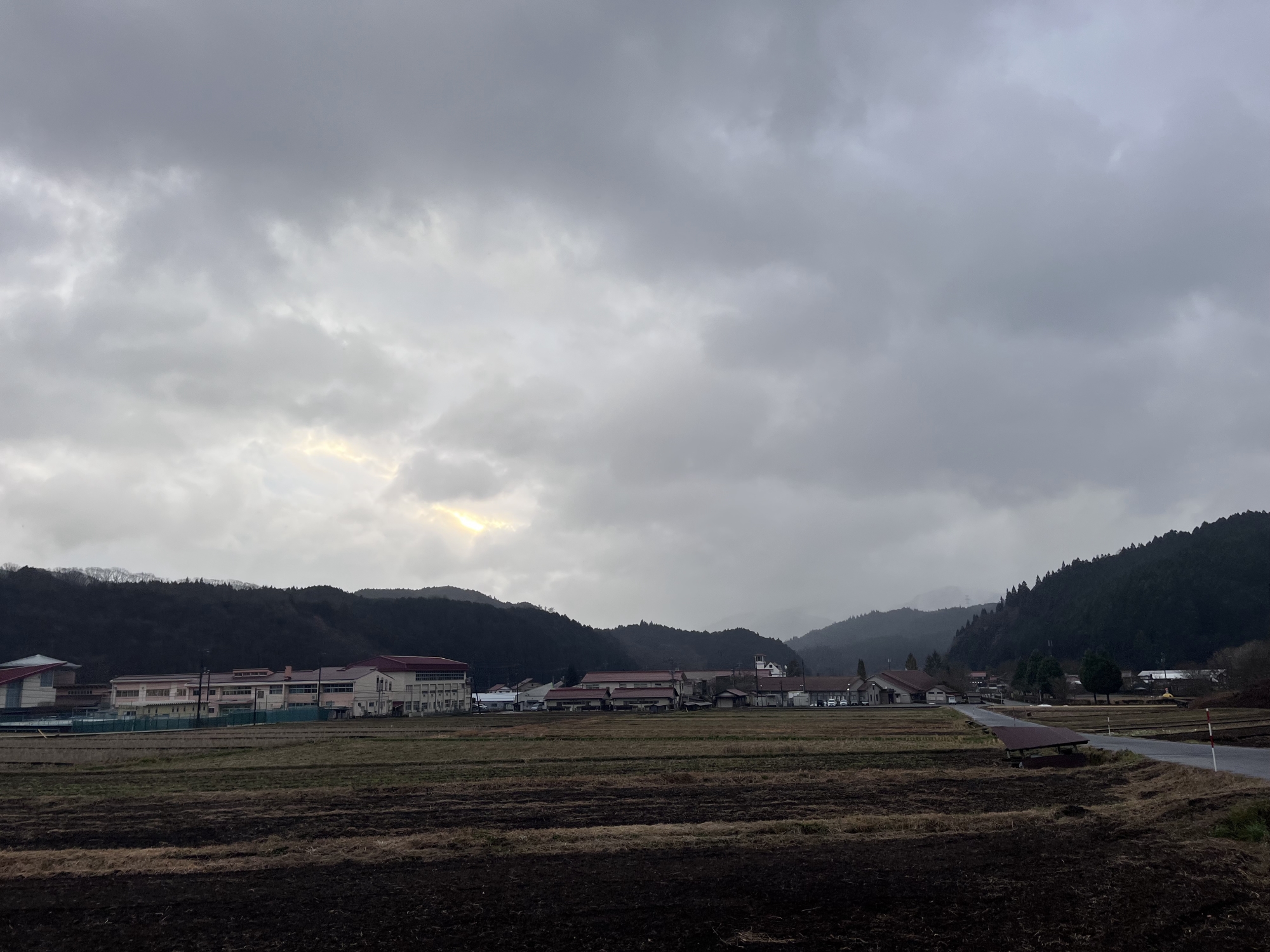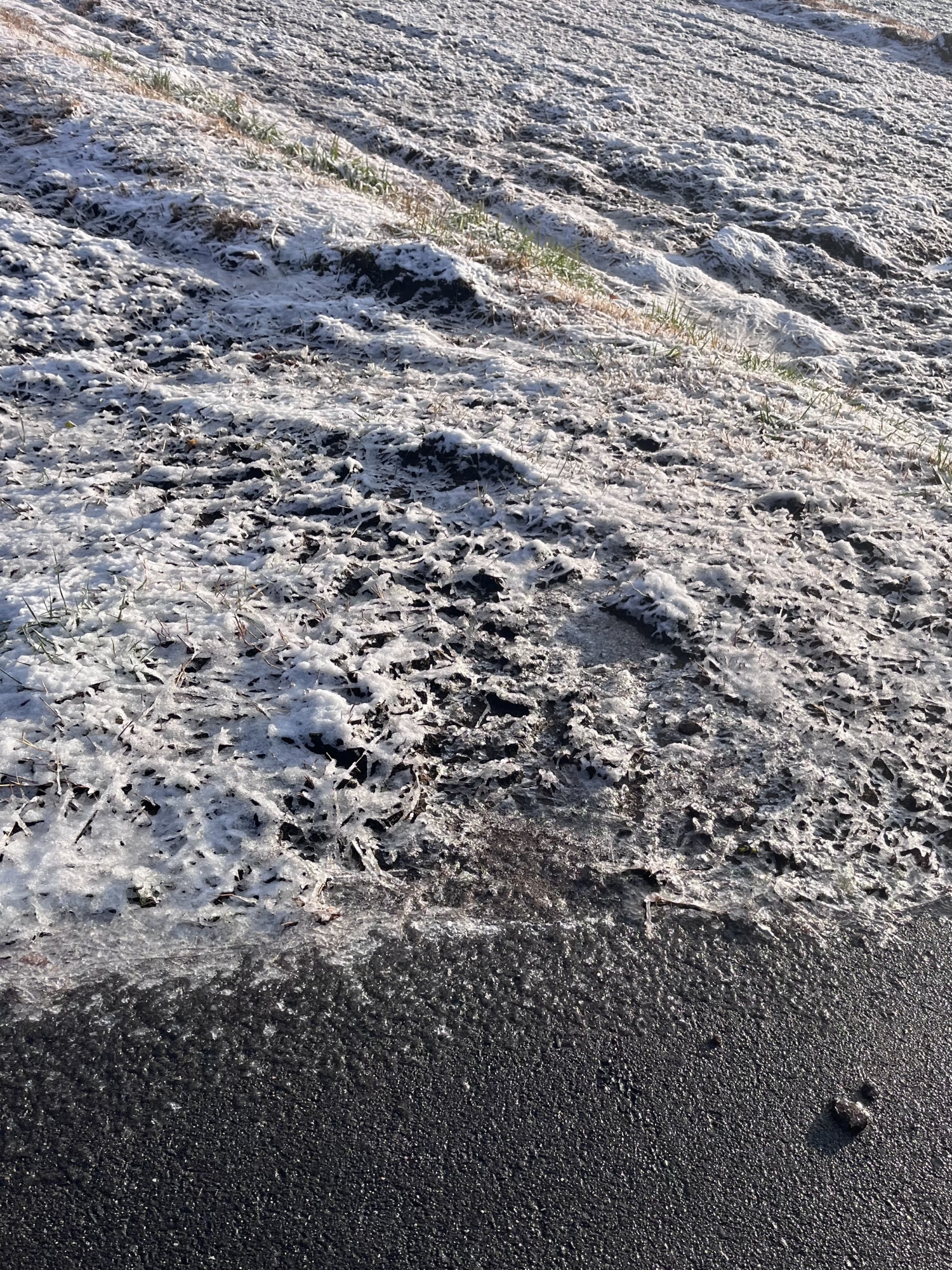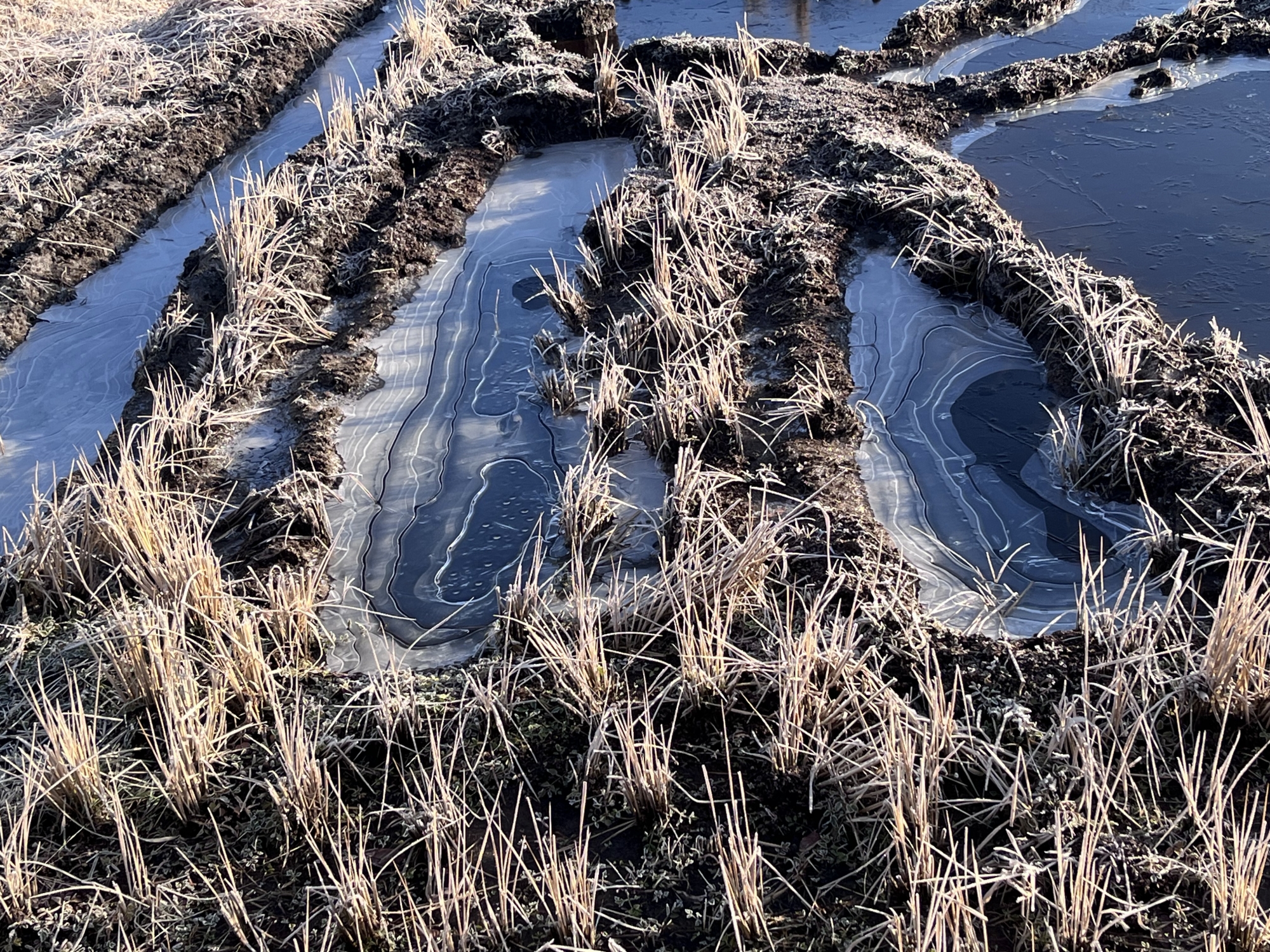 田圃は白い……でも、シャーベット状態.