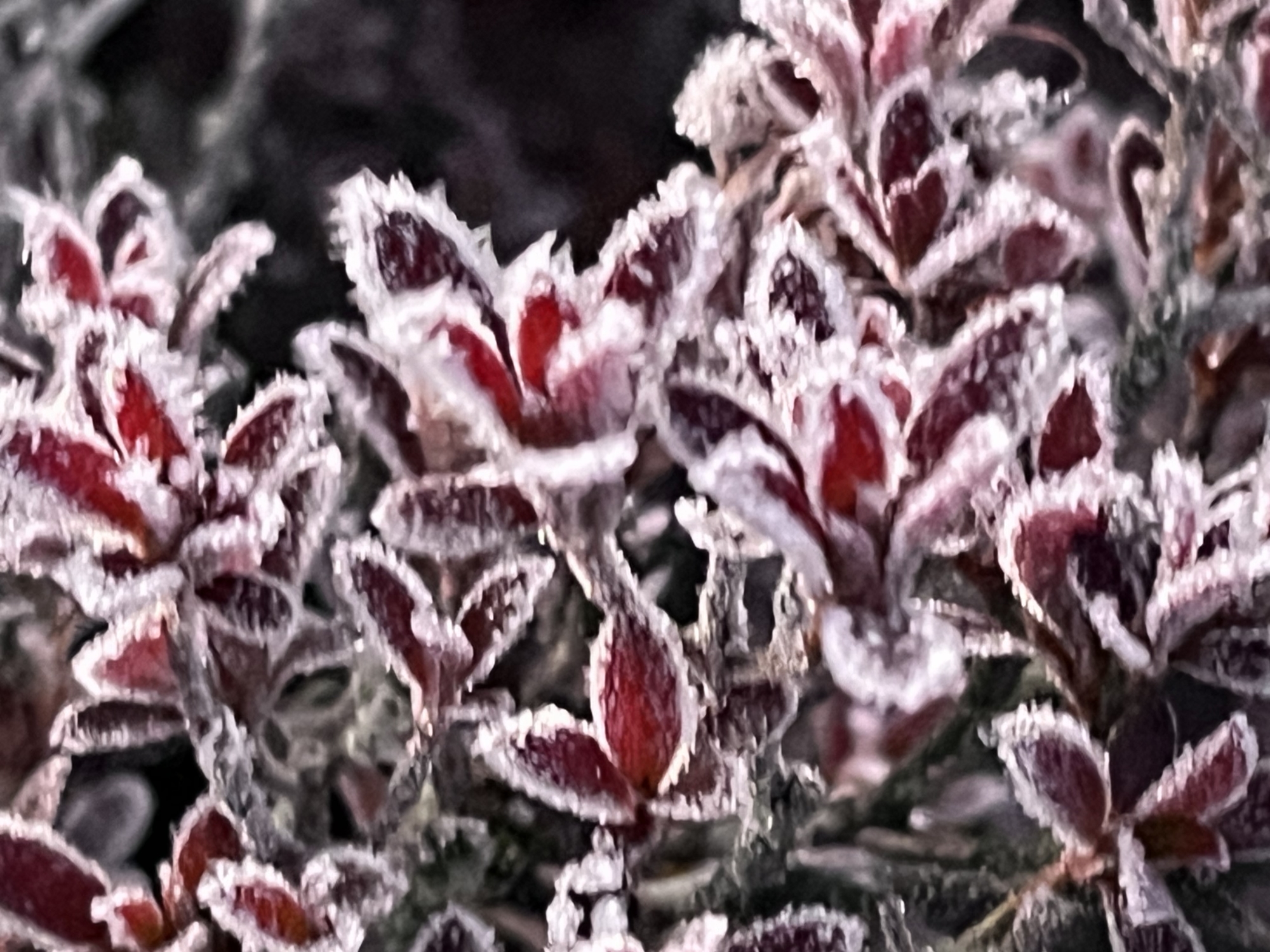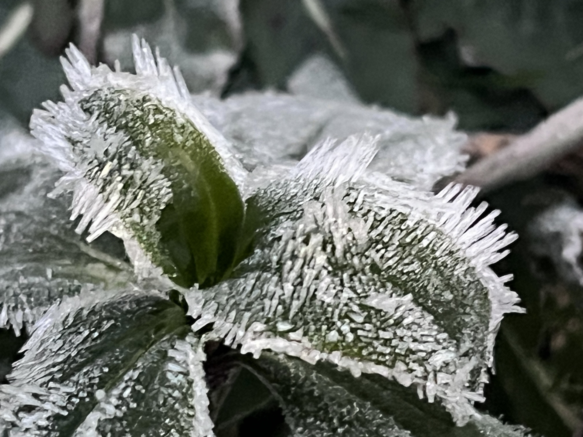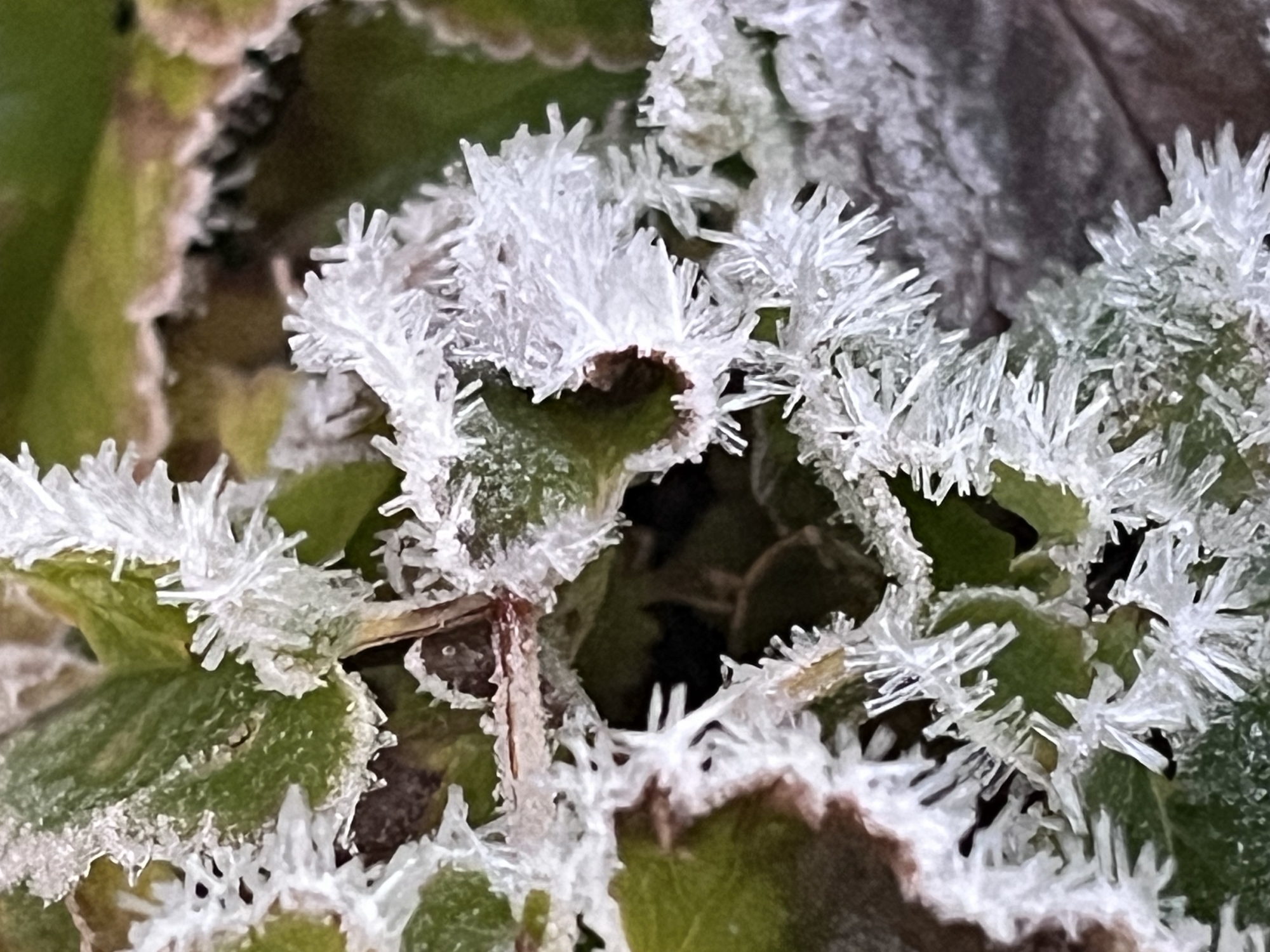 それぞれの葉で、異なる霜.