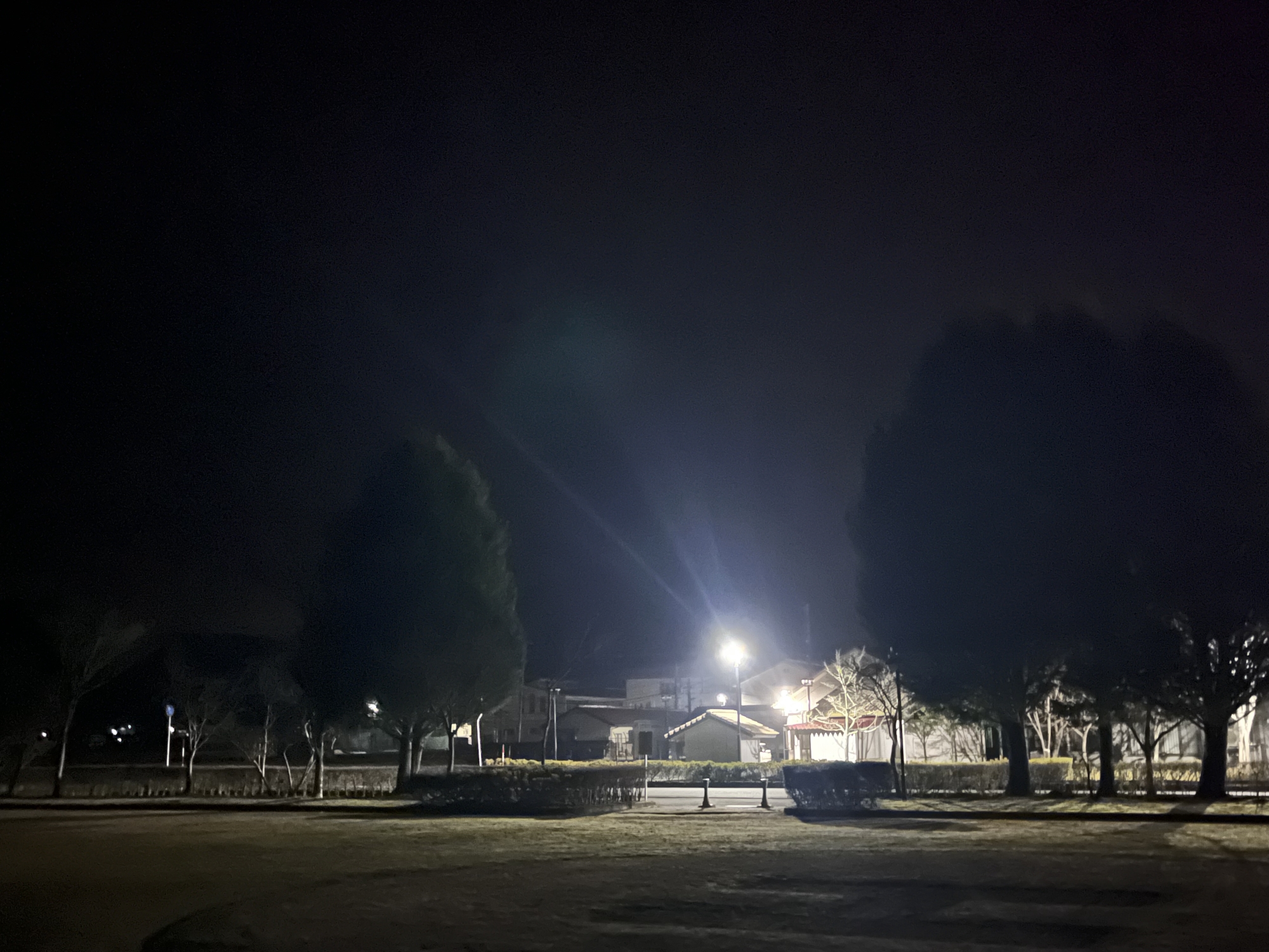 ふれあい公園も霜で白い!!