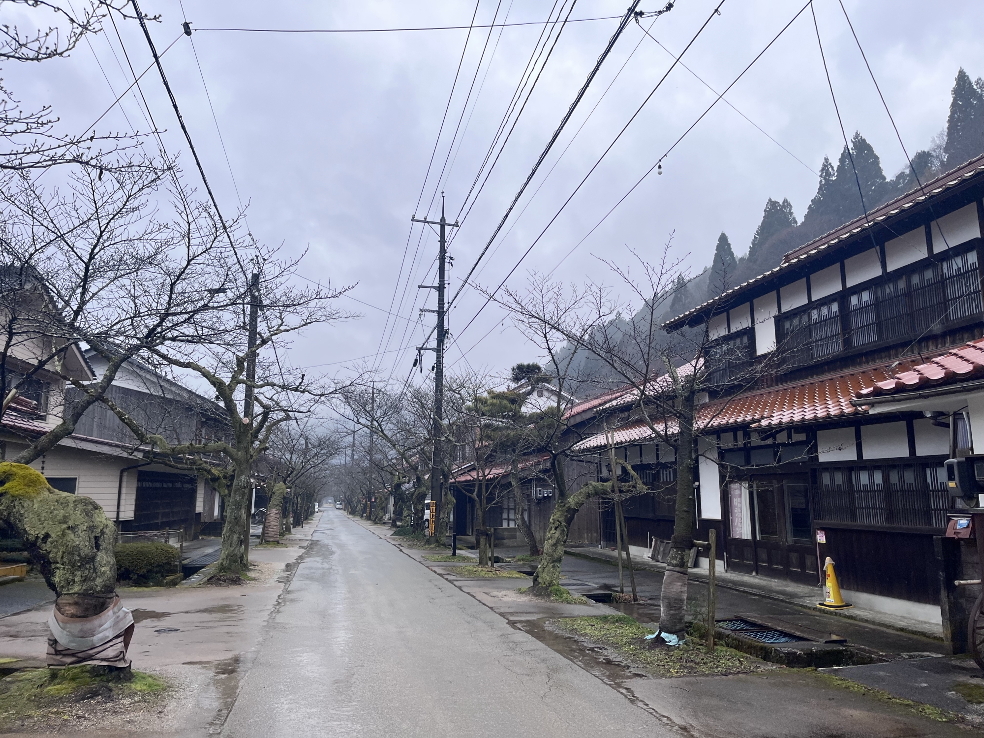 向かいが役場ですが……まずは、がいせん桜とおりへ.
