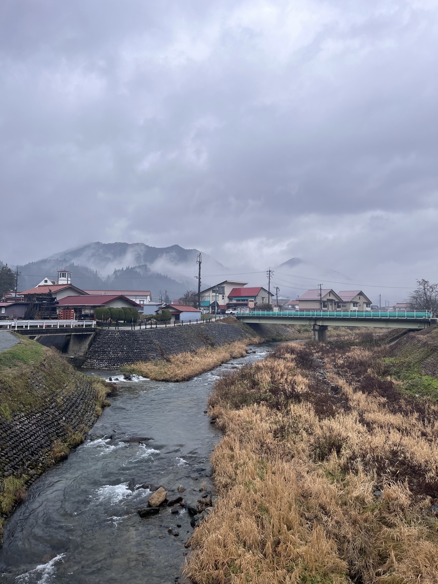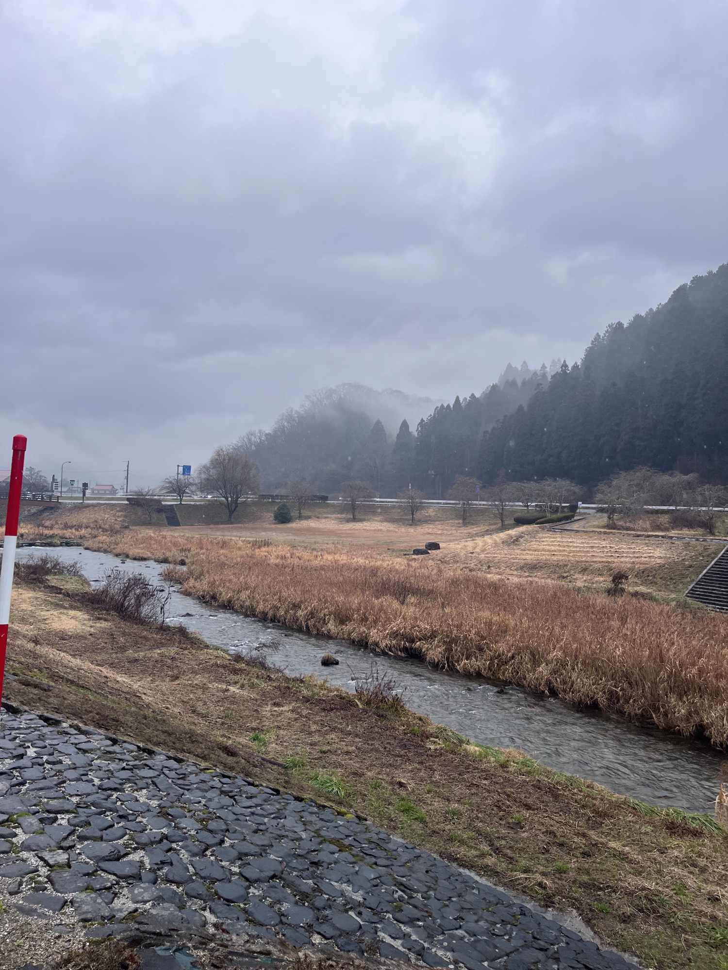 新庄川も雨の中.