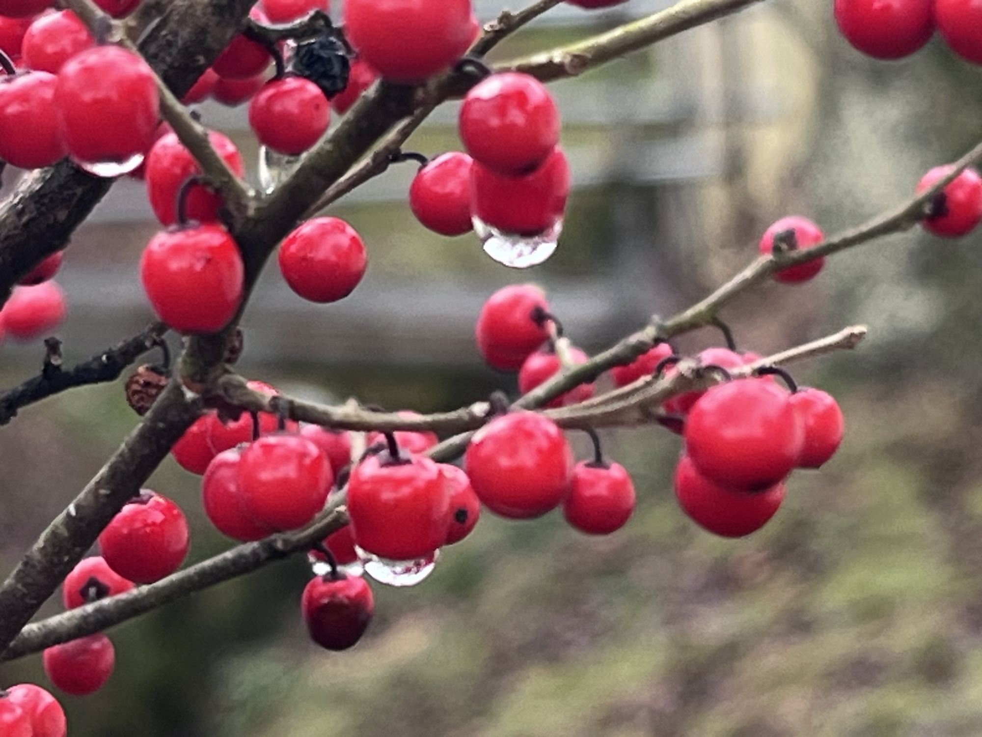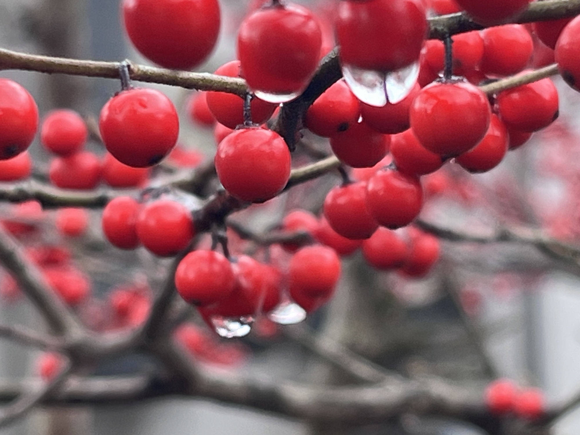 紅い実に雨粒.