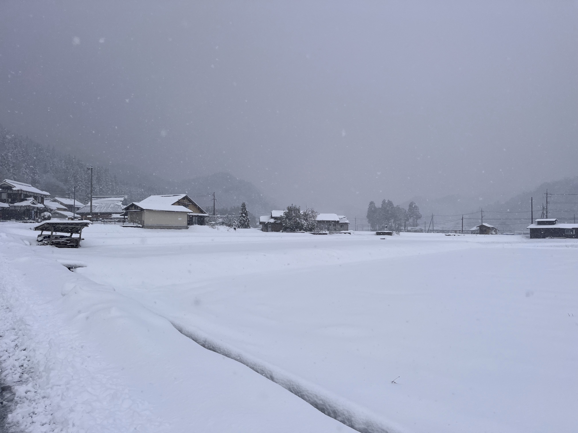 田圃は一面の白.