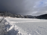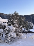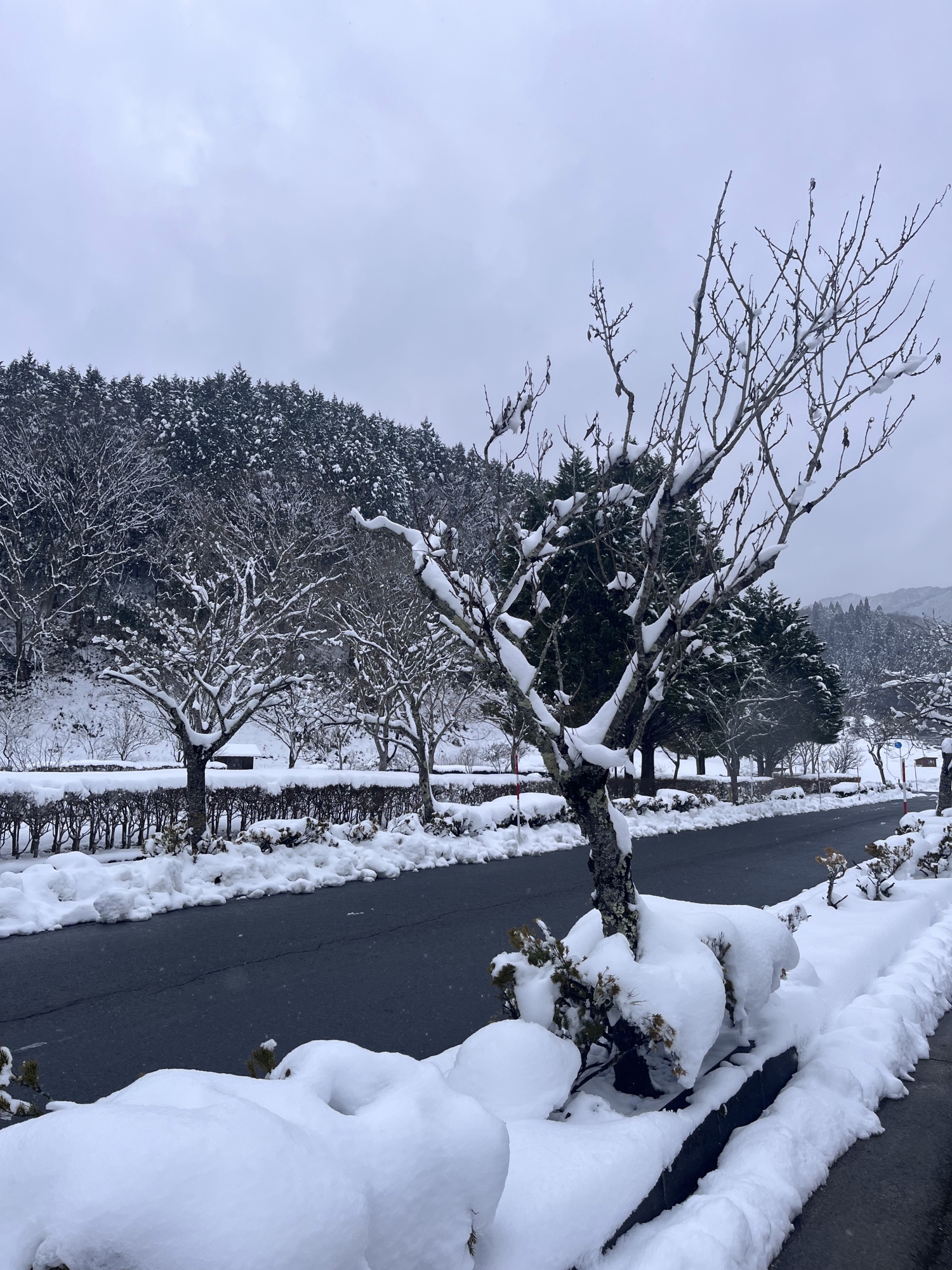 山の木々の枝々にも白い縁取り.