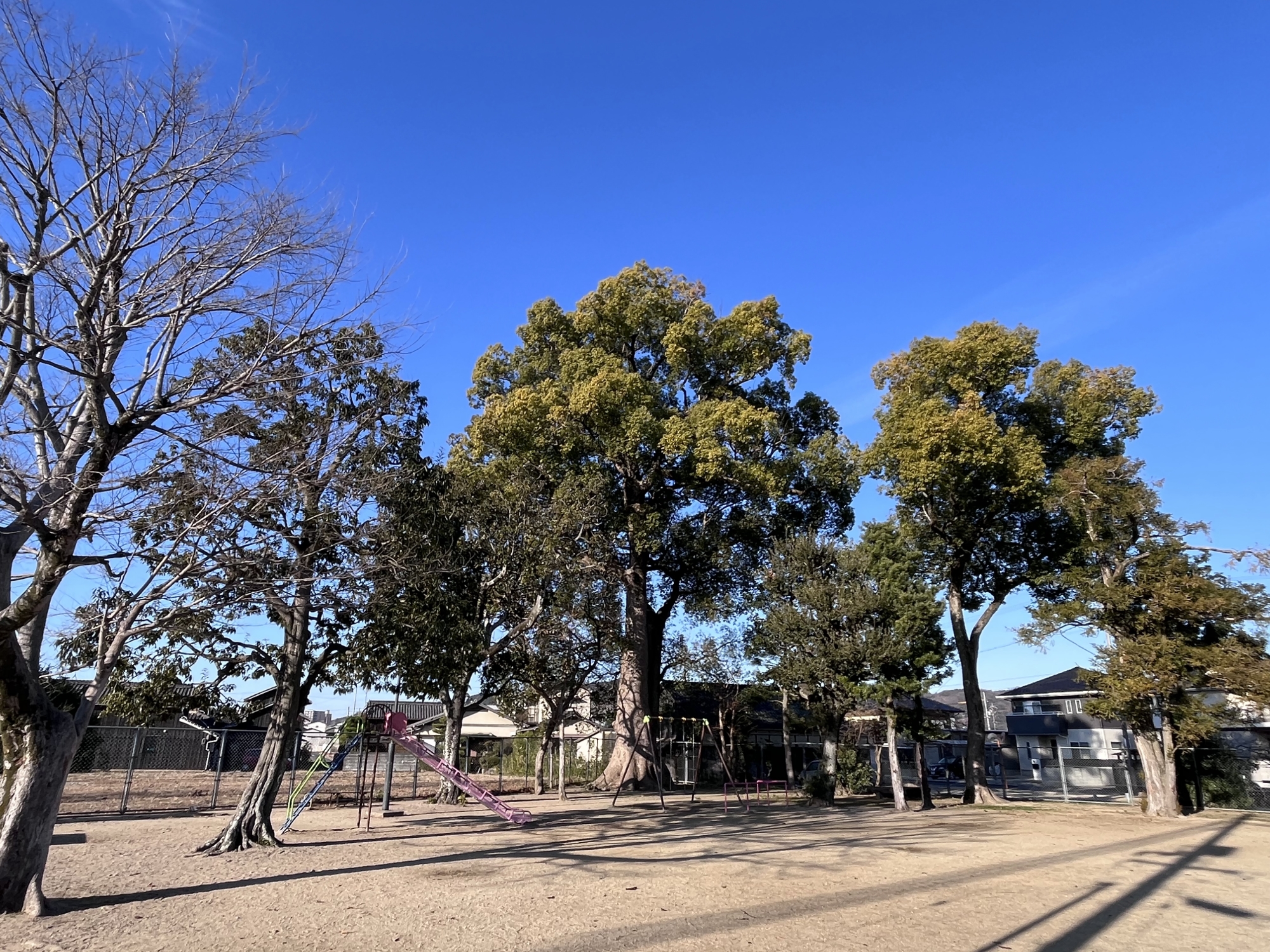いつも気になっていた大木~倉敷市の巨樹「クスノキ」だそうで、ここは庄楠遊園.