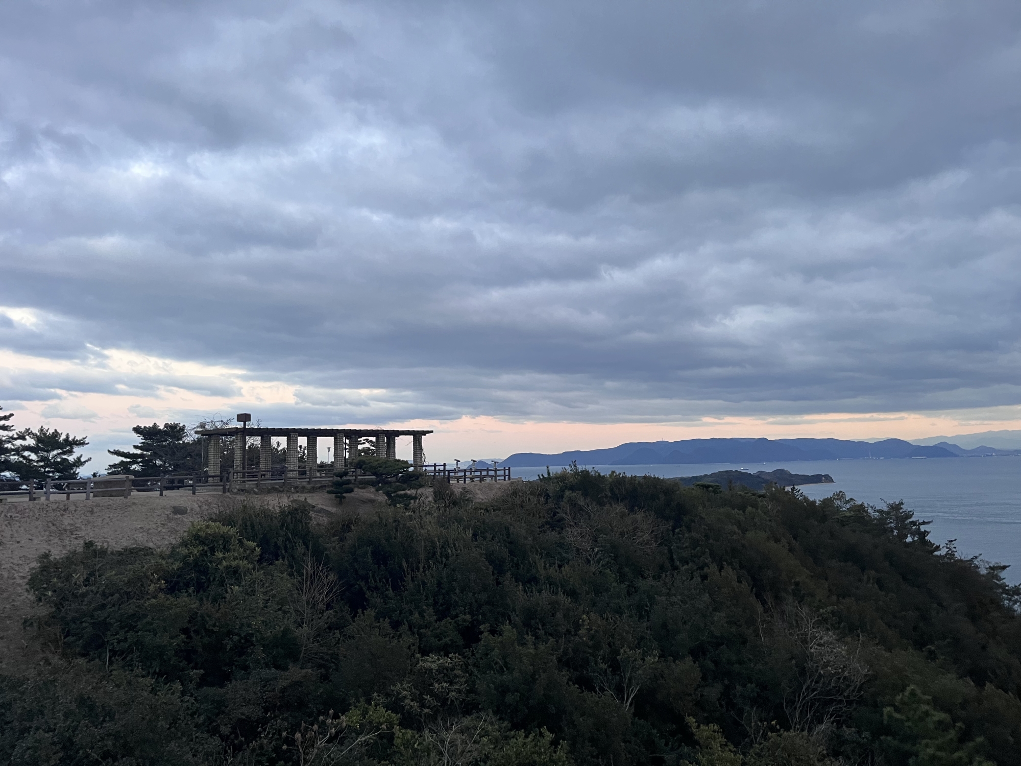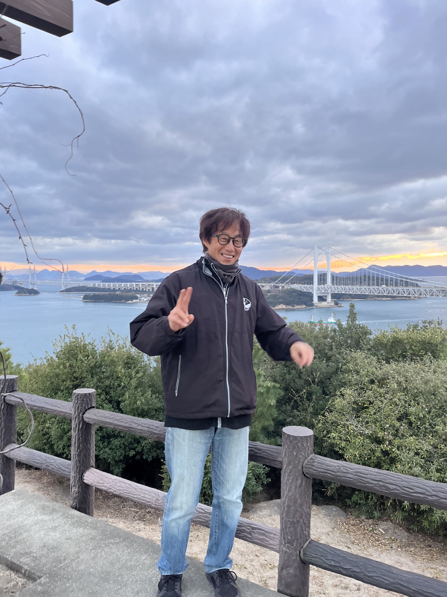鷲羽山展望台……生憎、雲が多くって夕陽は観れませんでしたが、それでも、瀬戸大橋も含めて、良い情景.
