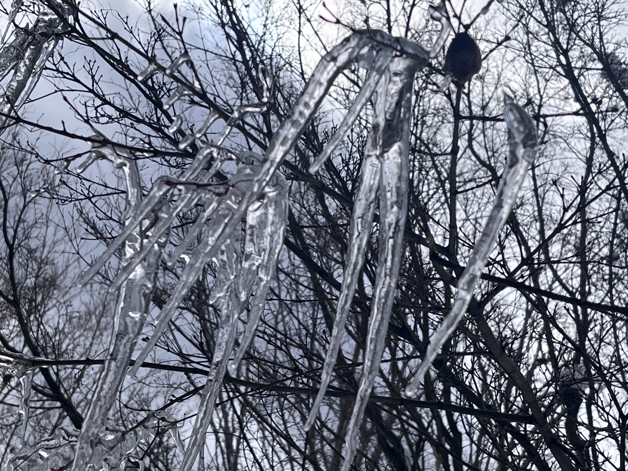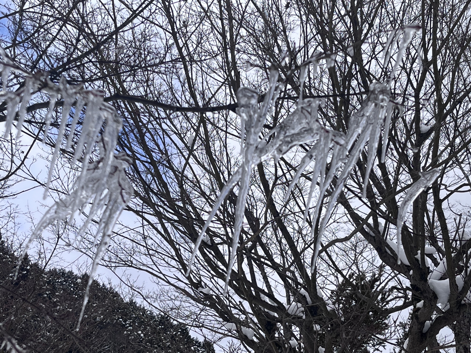 そして.デイサービスの所の氷柱~の、紅葉の枝の氷柱.