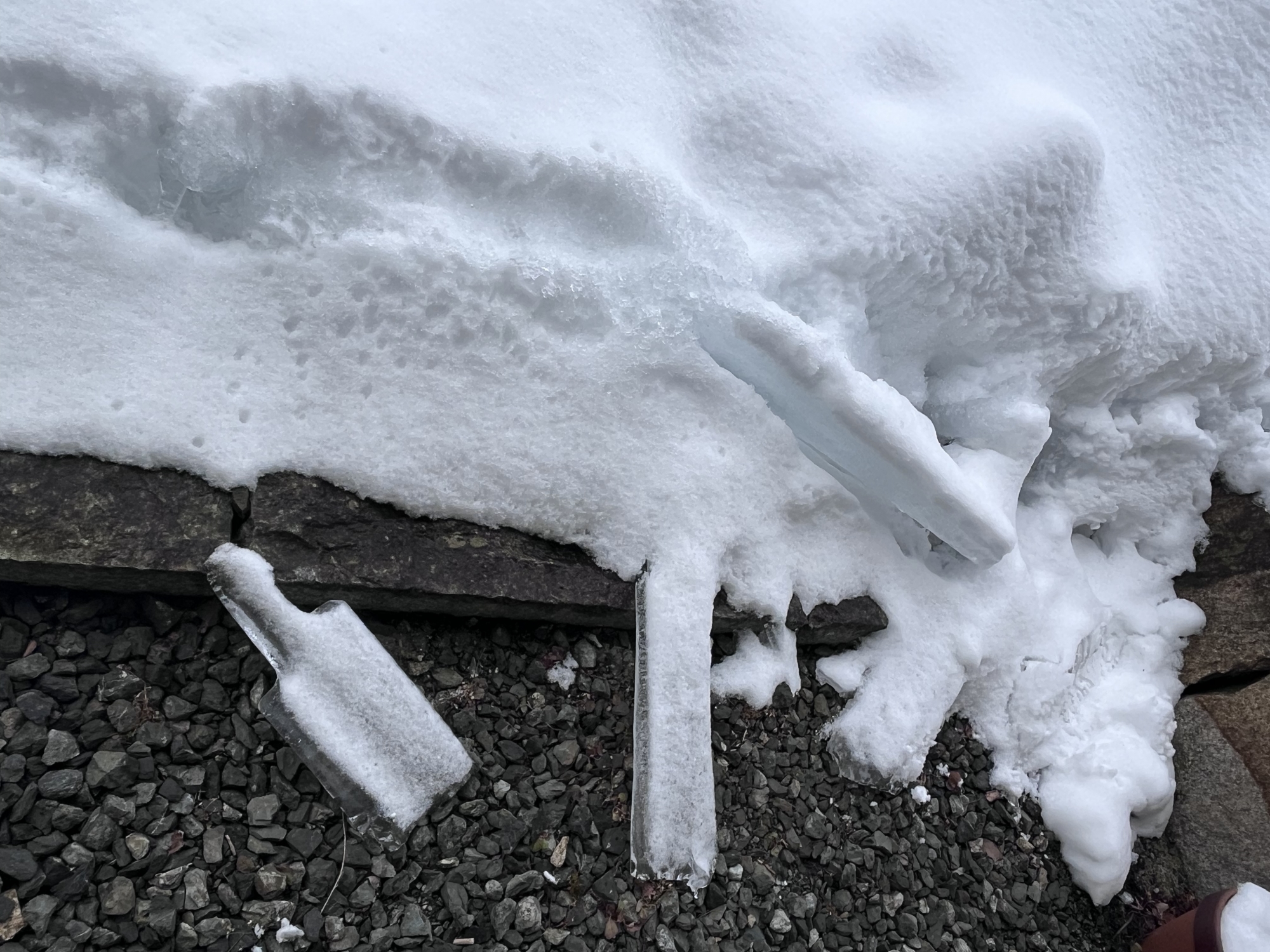 落下した骨太の氷柱.