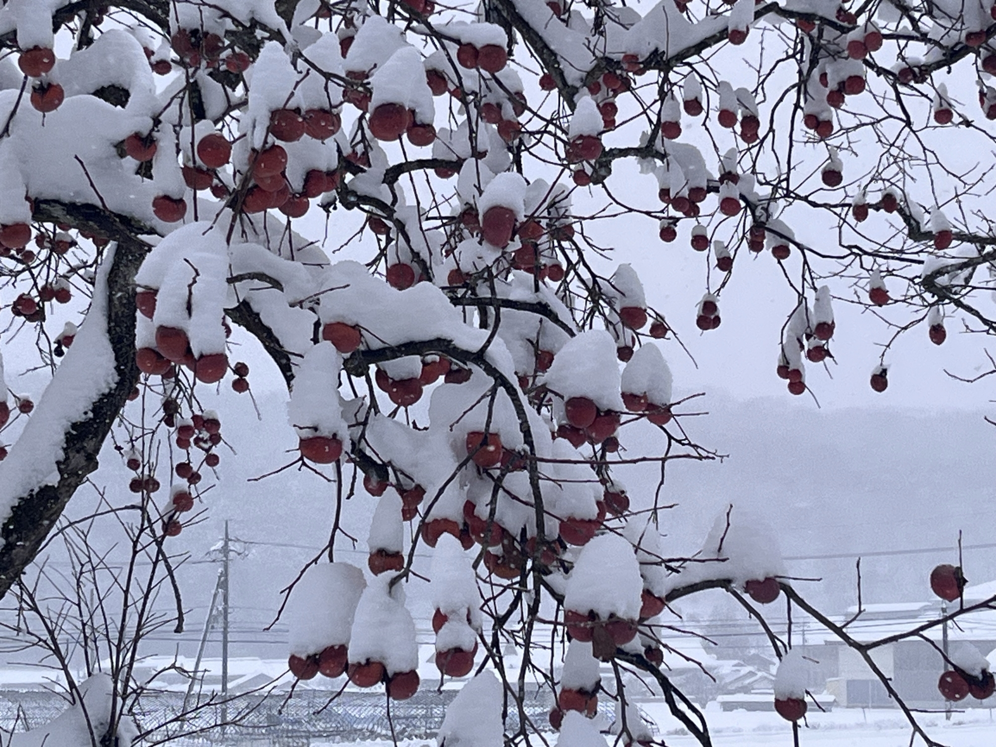 まだ、雪が……柿の木の雪.
