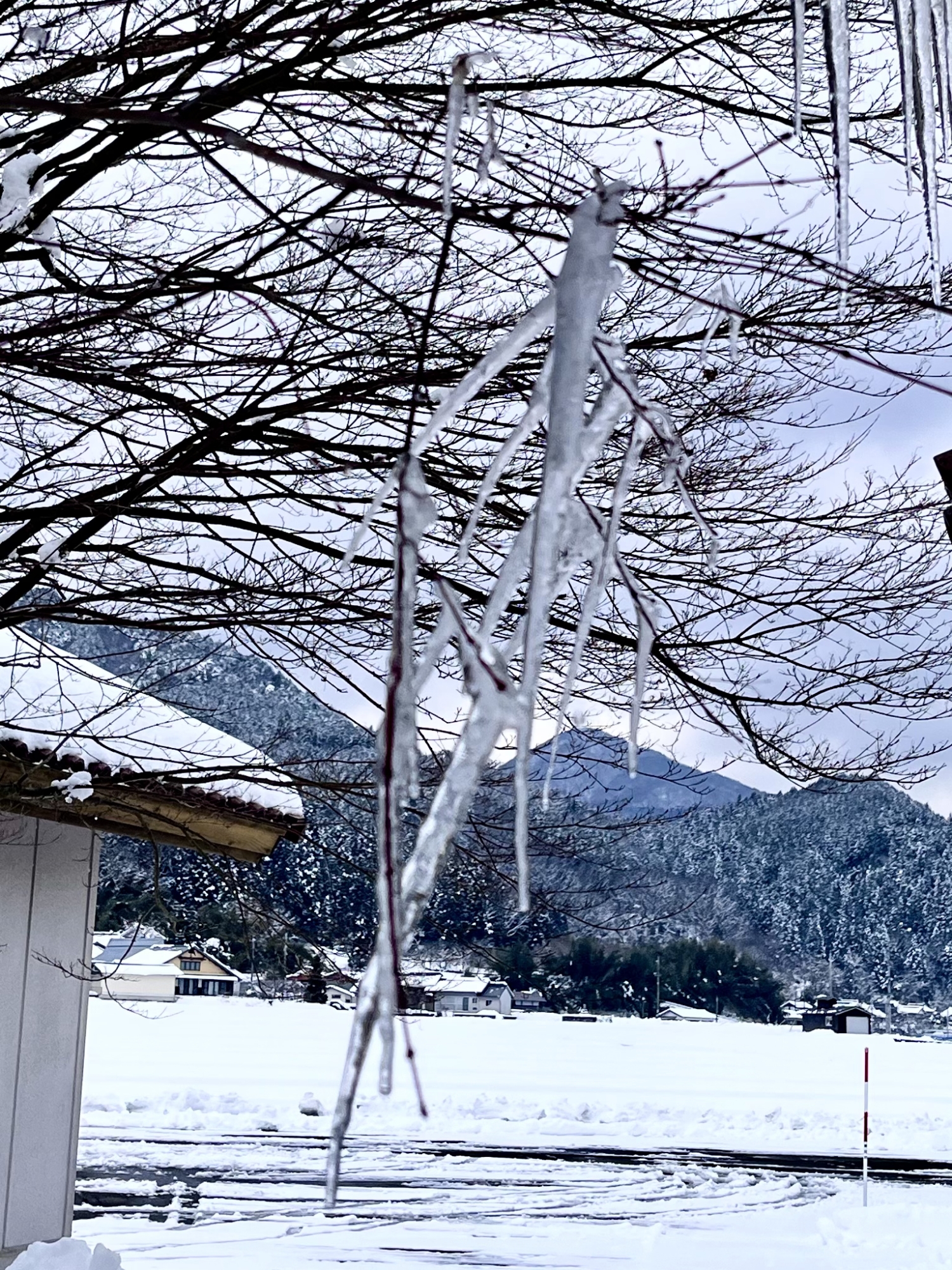 今回は、伸びがそこまっではないものの……紅葉の枝からの氷柱がすごい.