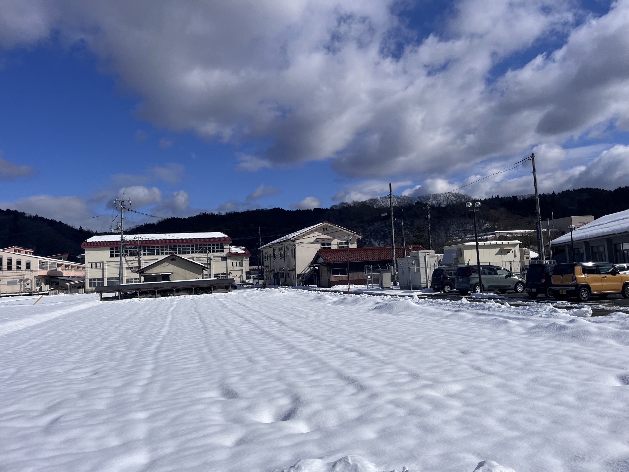ふれあい公園は、雪が溶けていませんね.