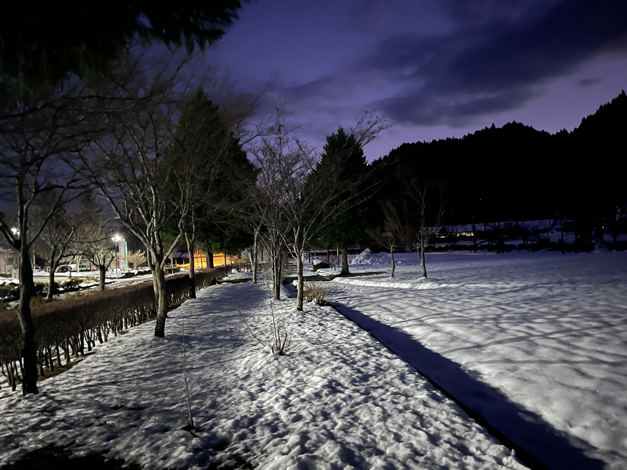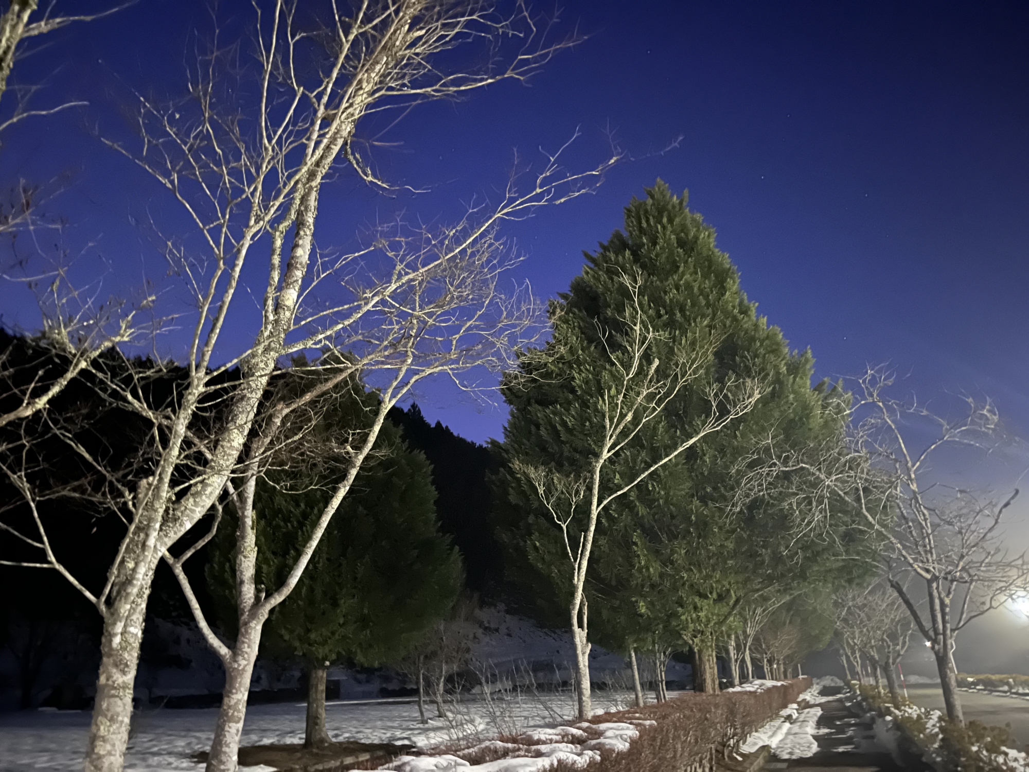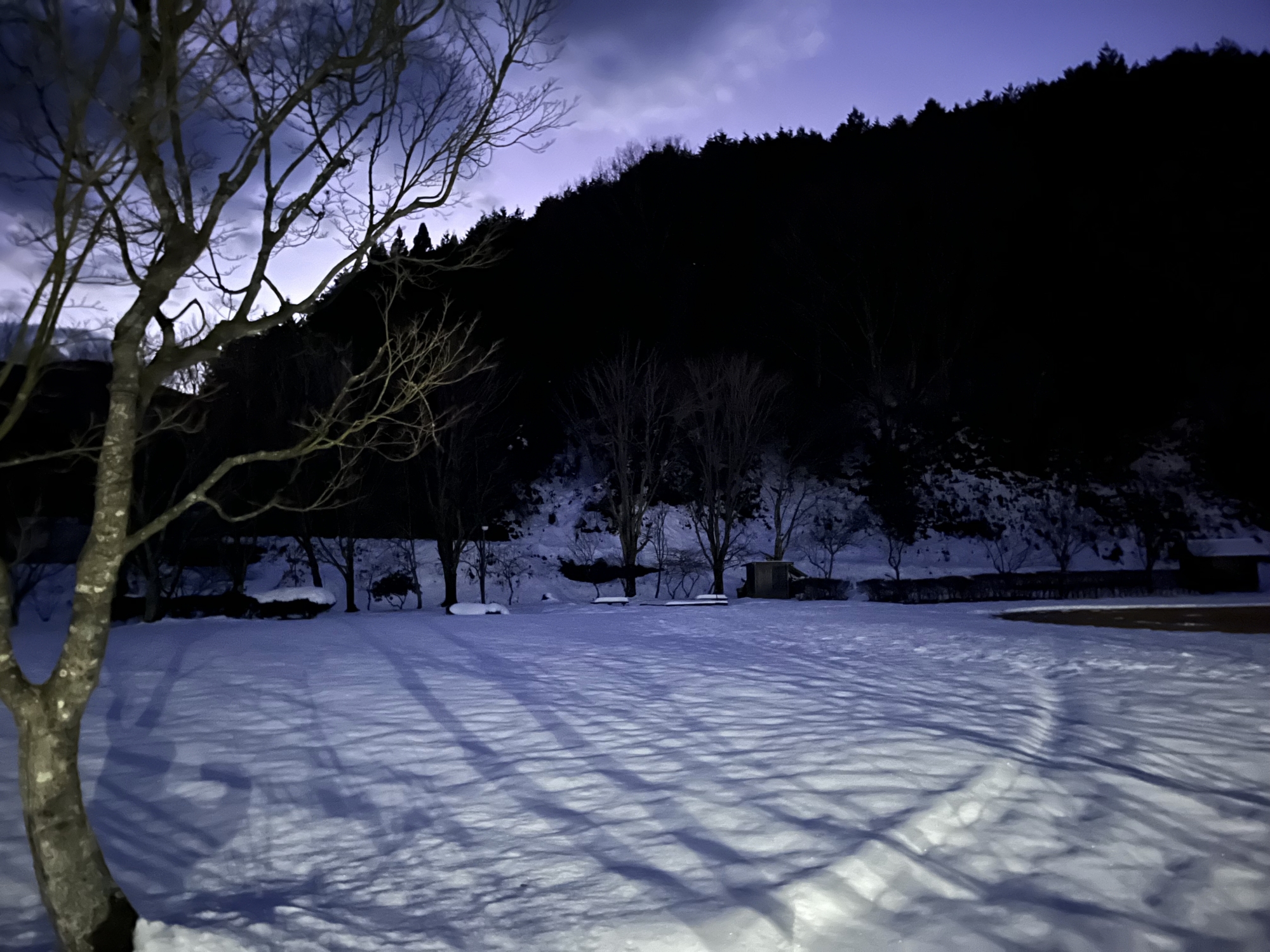 夜になっても変わらずの天気……ぐるっと官舎周り.