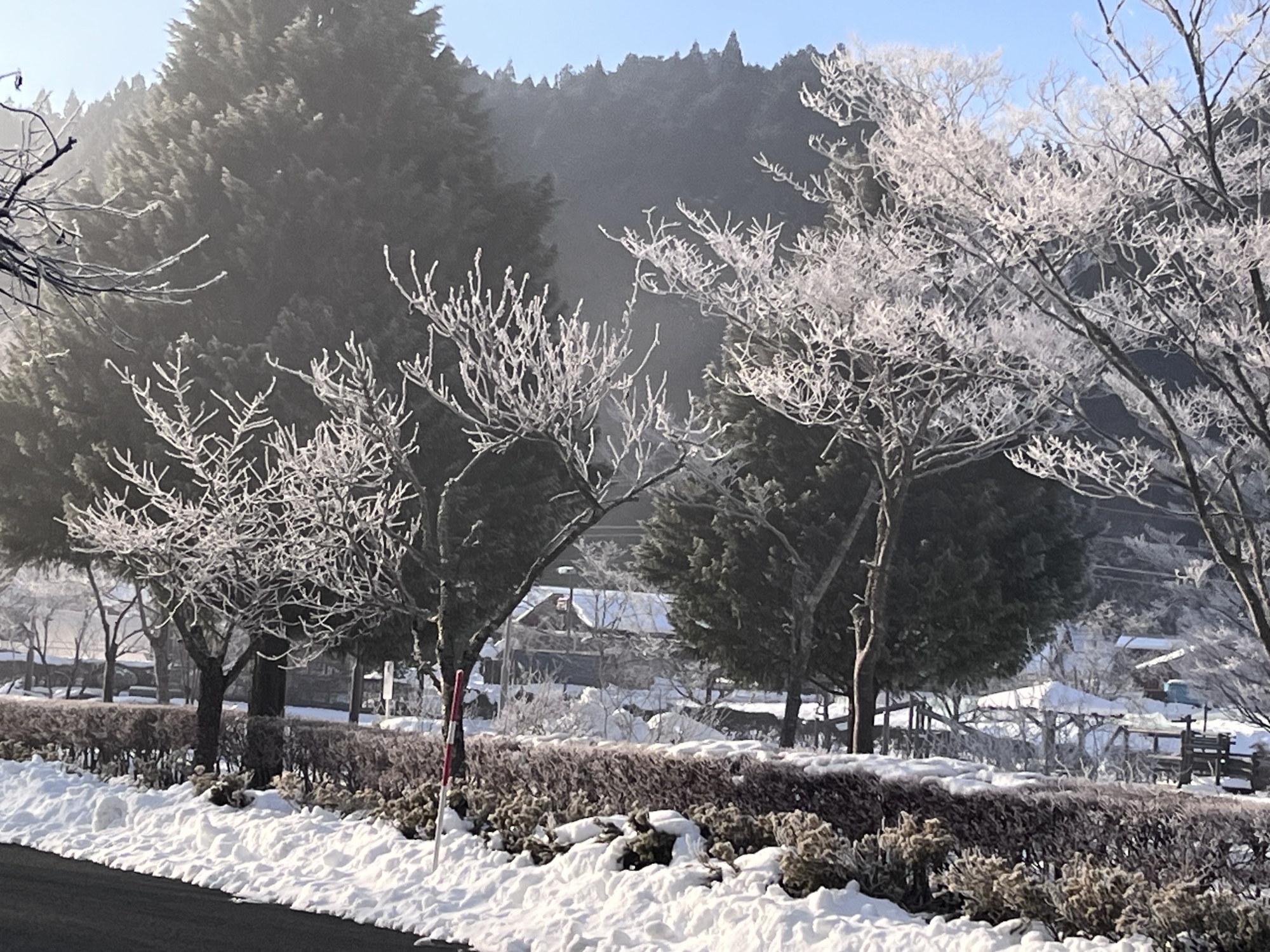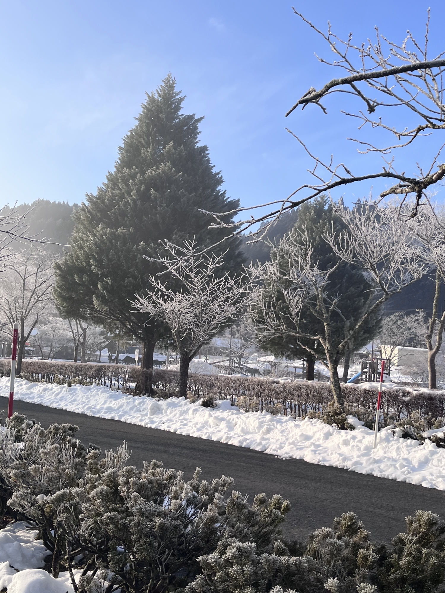 朝は冷え込んで……夜、少し降った雪が凍った感じ!!