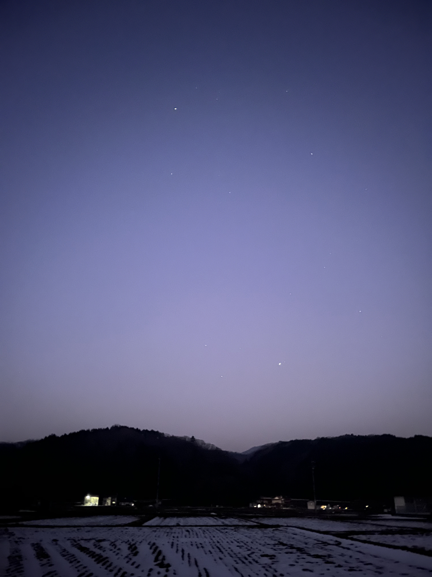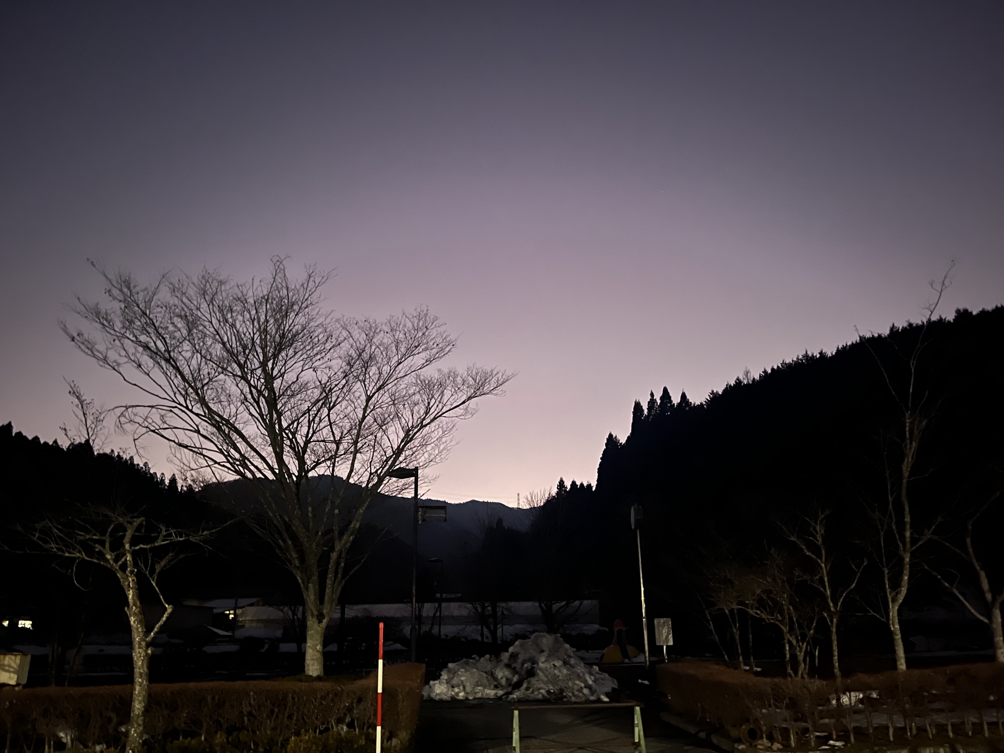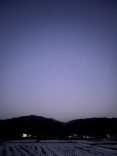 そして、もう帰路……陽が長くなってきて、まだ暮れてませんが、雲もなく、絶妙な色合いの空です.