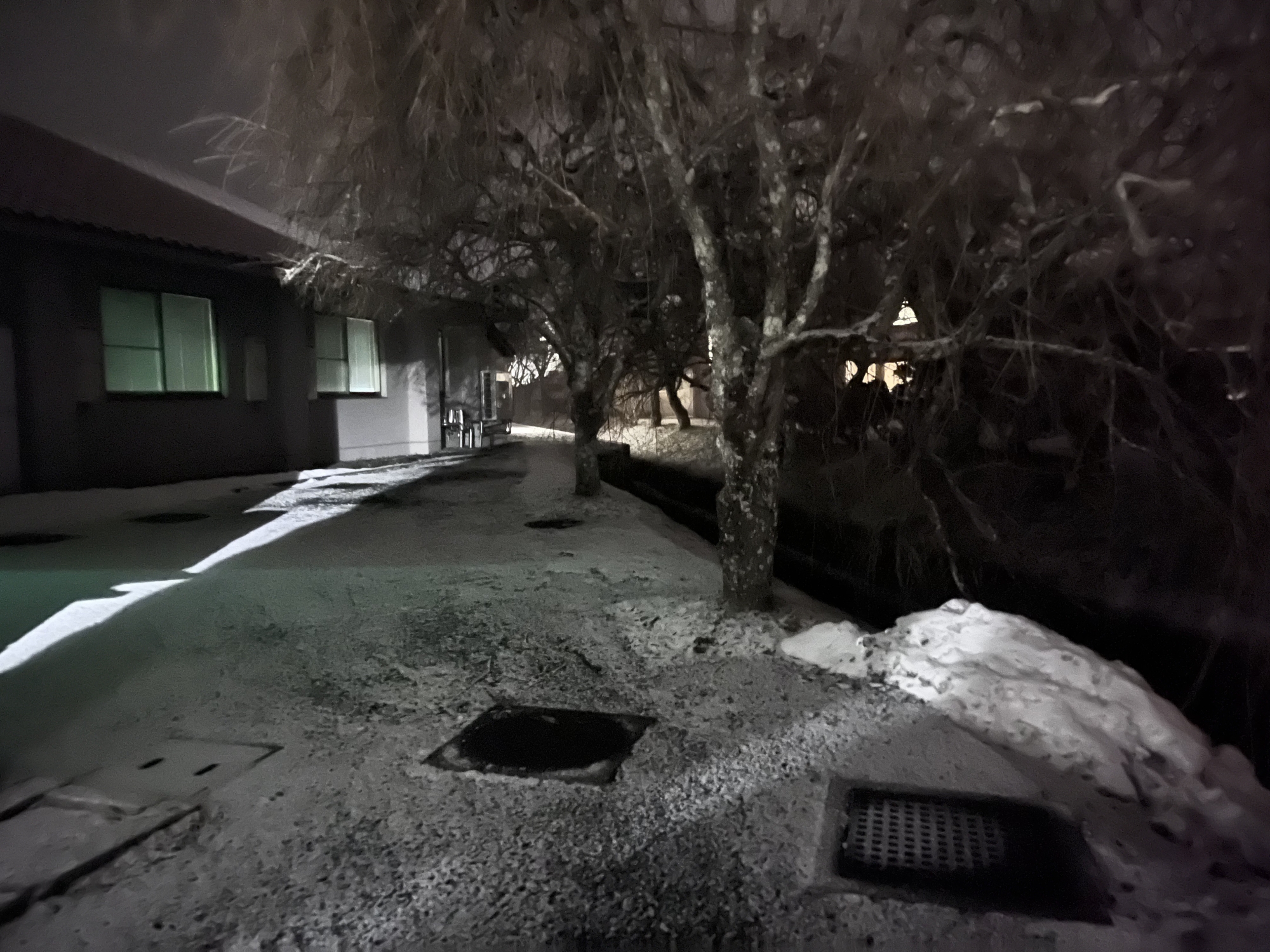 弱い雪だけど、ずっと降っていました.~帰って来たヨ.