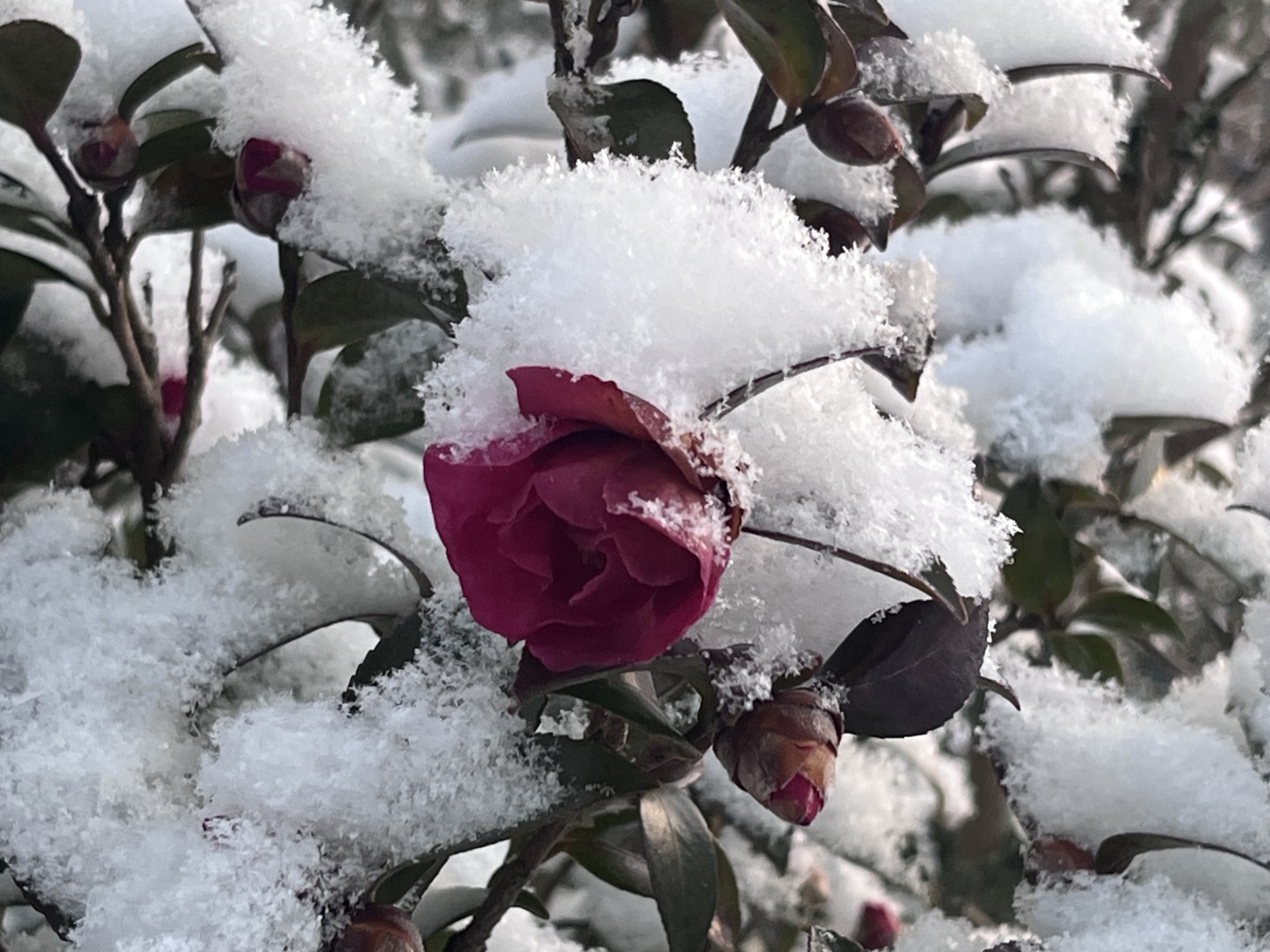 山茶花にも雪.