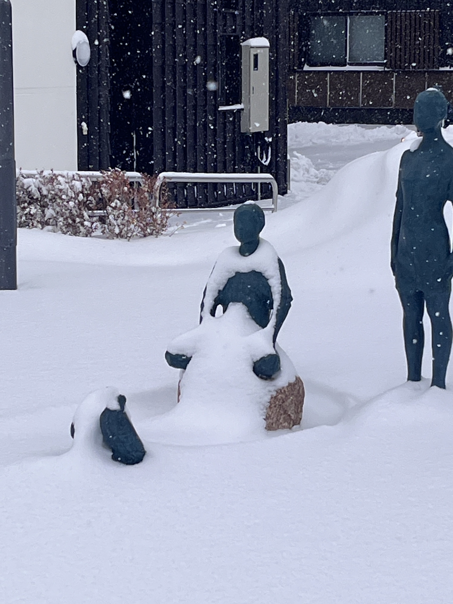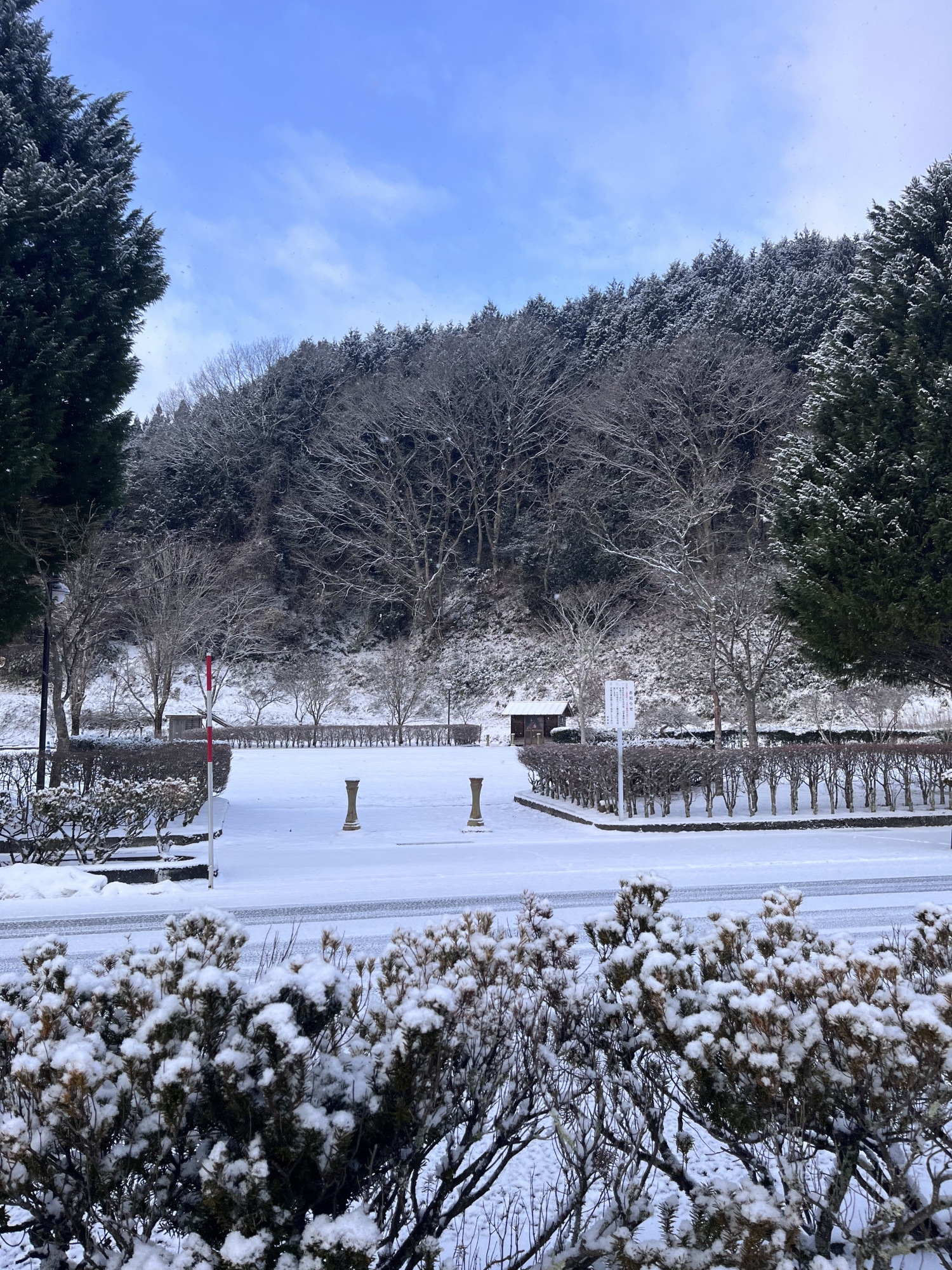 百葉箱や、移転橋欄干にも雪.