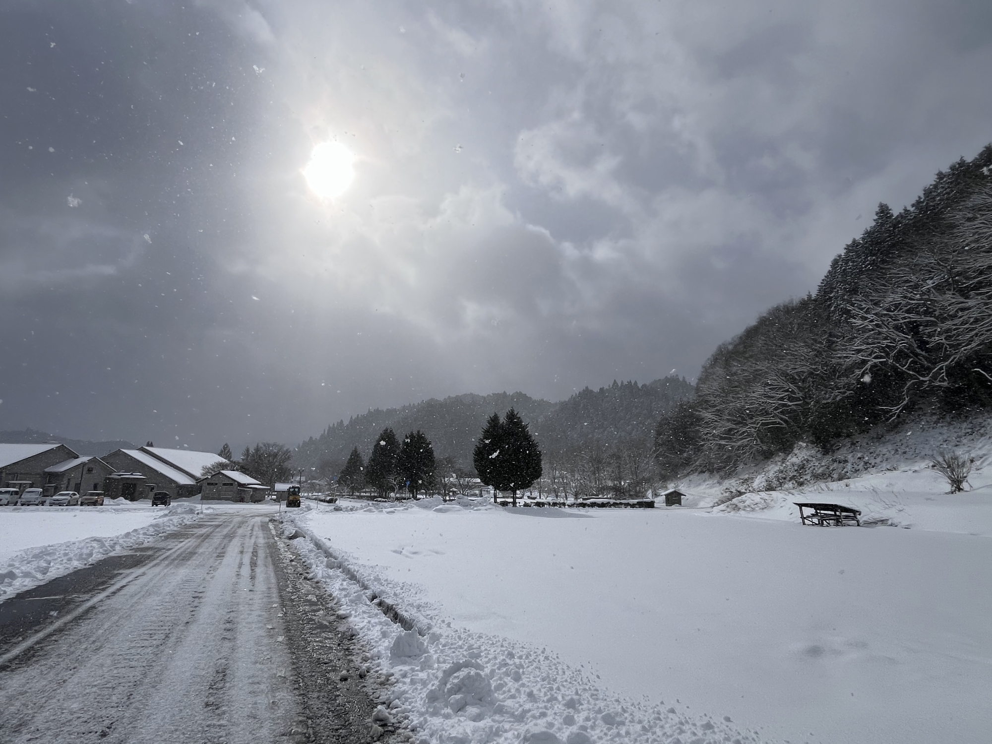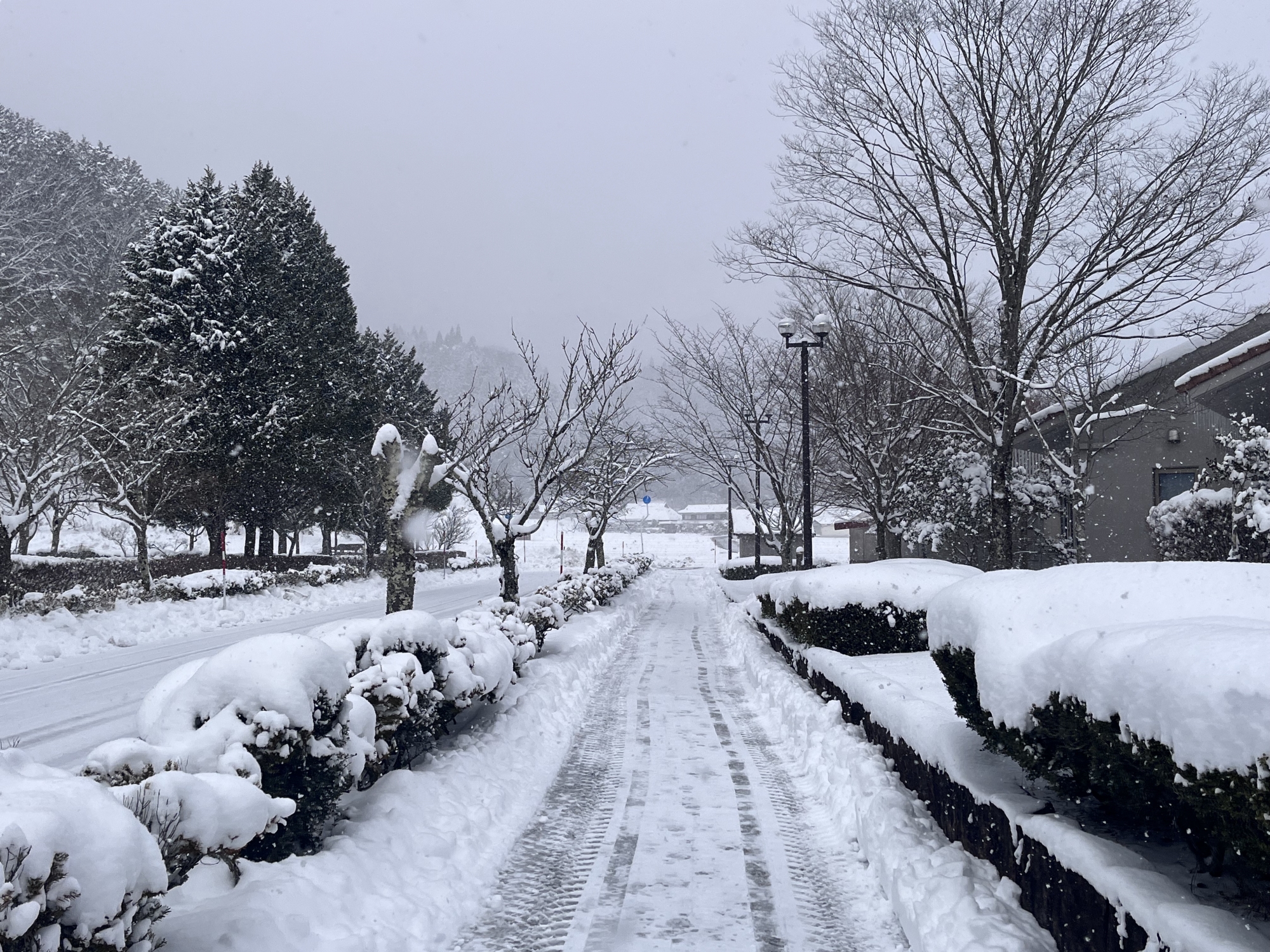 朝いちばんで(room jog の後)雪掻き.