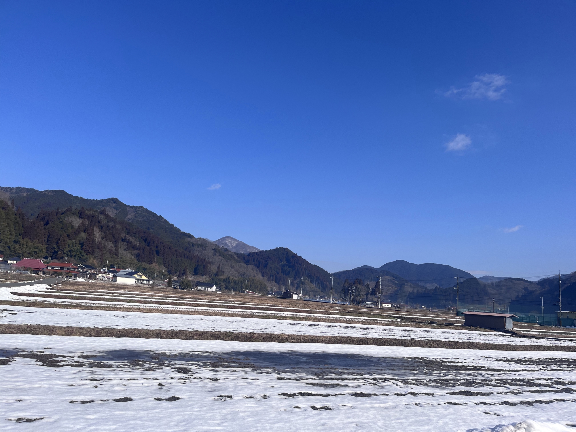 少し雲、田圃は可也、雪がなくなりました.