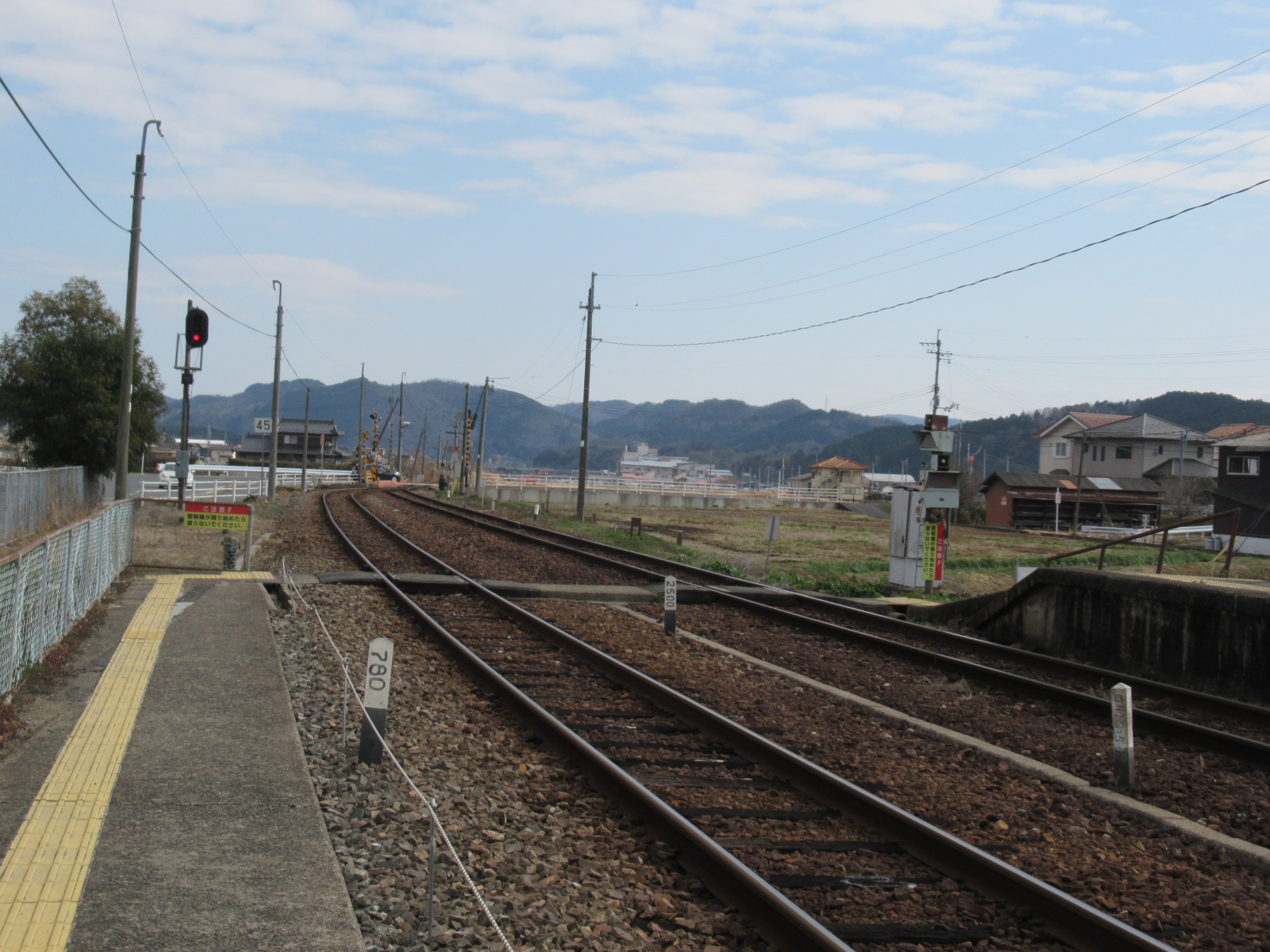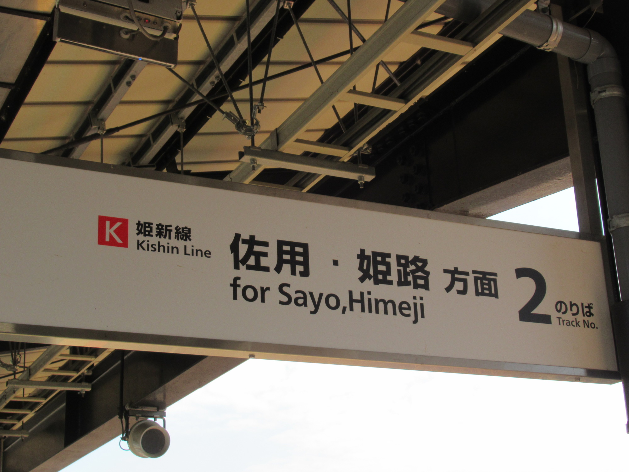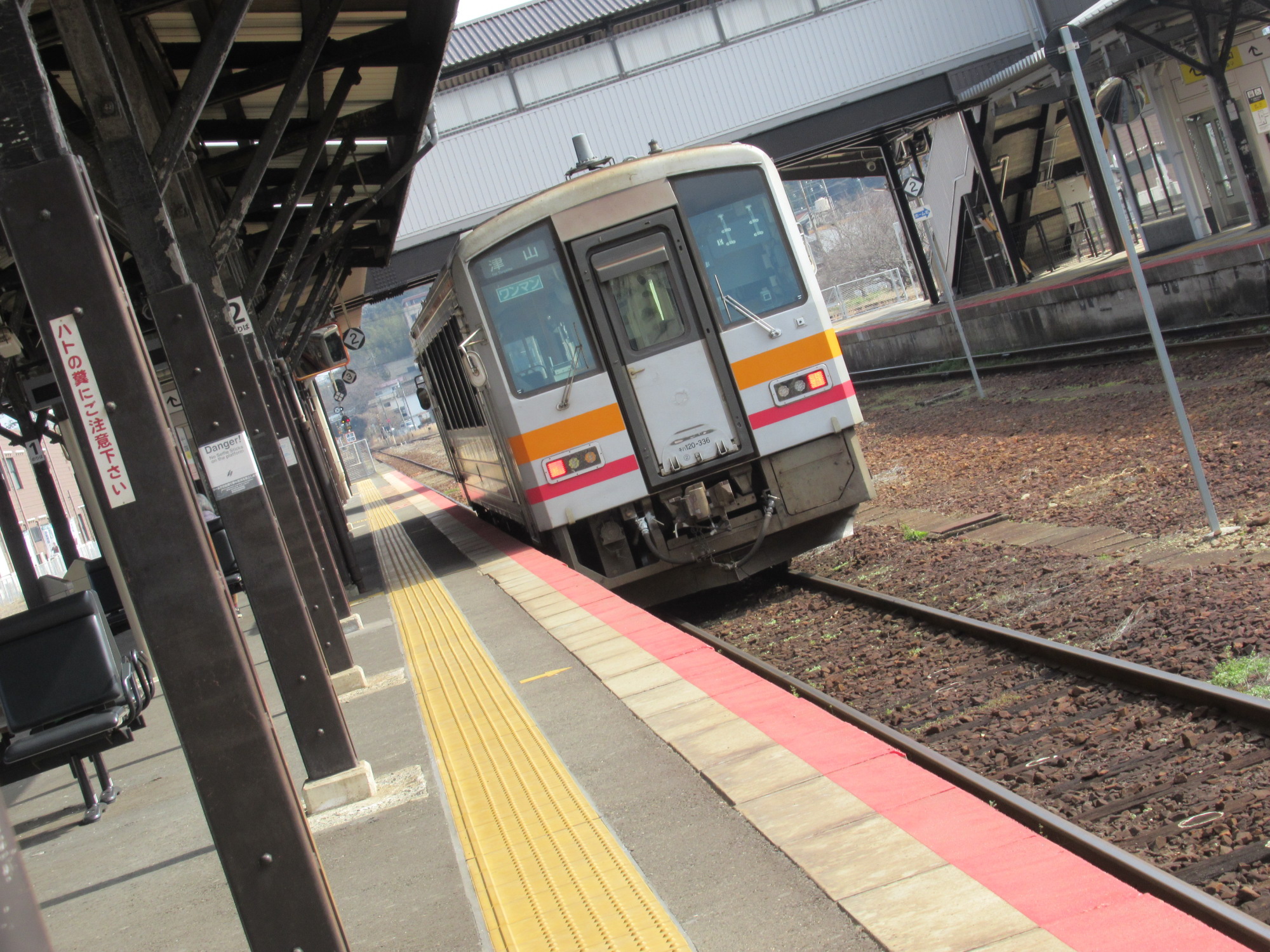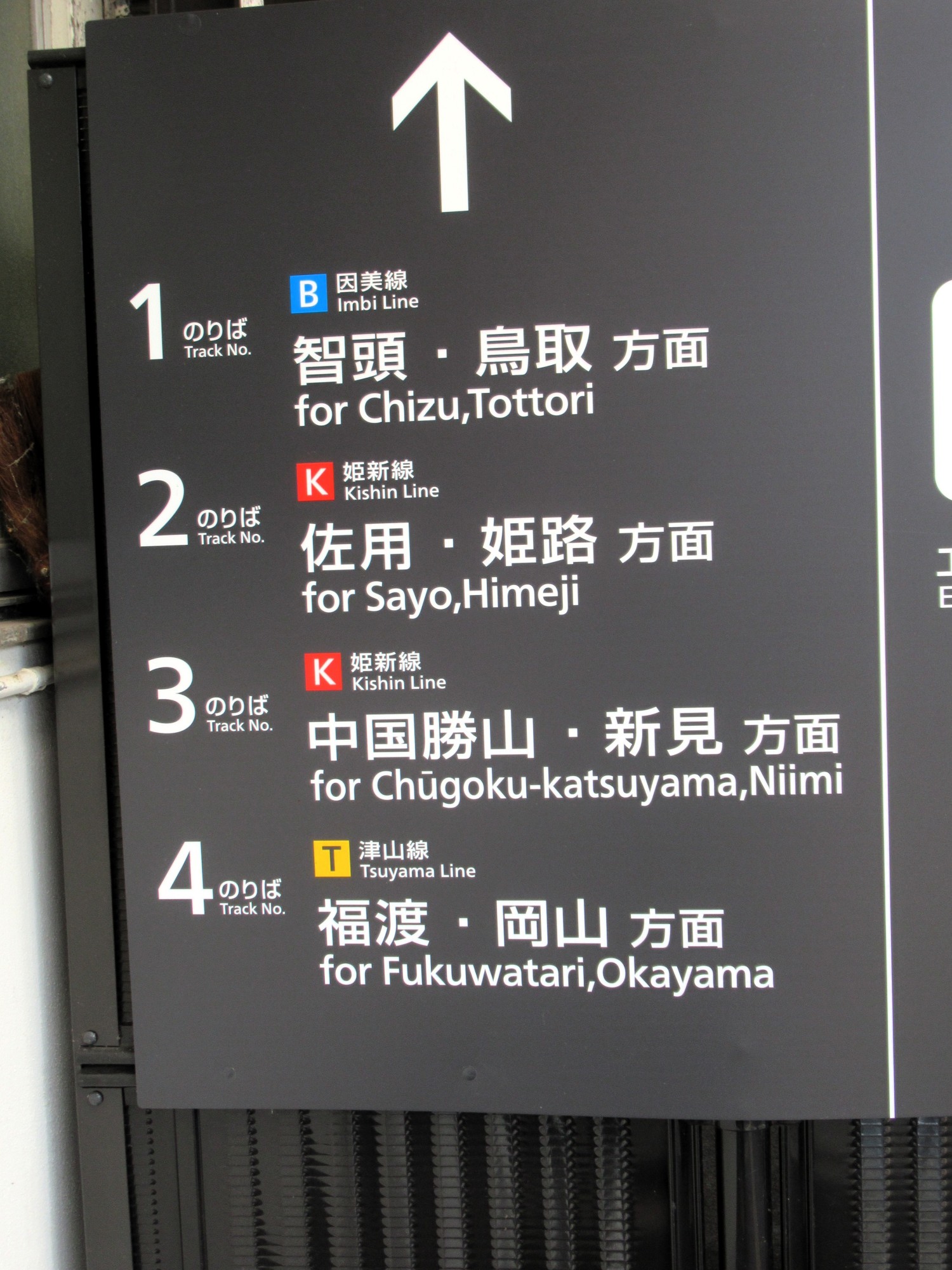 2番ホームですね.佐用・姫路方面……津山線と因美線、さらに、姫新線は中間の駅、沢山の線が交差してますね.