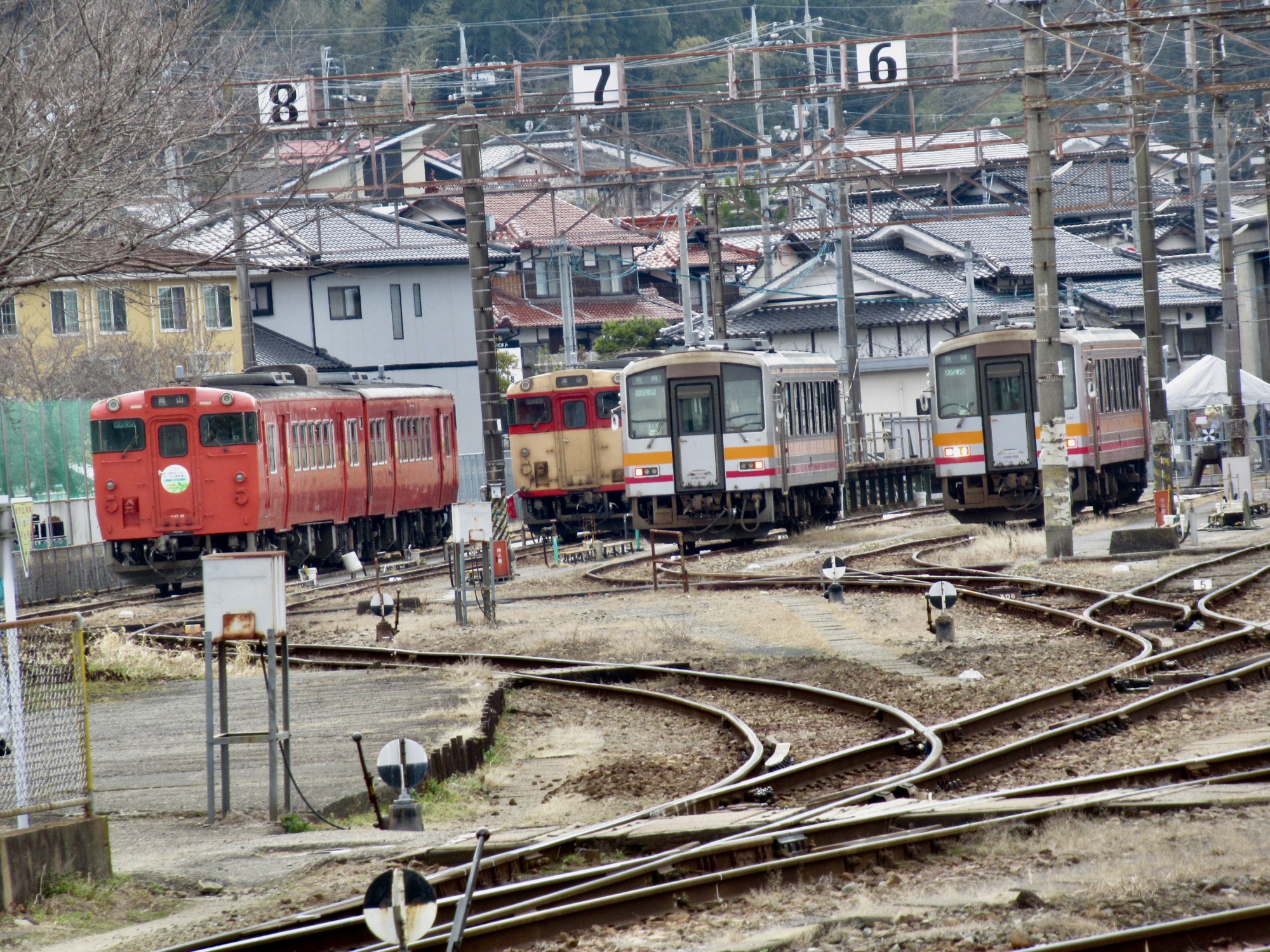 津山駅はやっぱり車庫の方から一杯、始発の列車がやってきます~そして、勝山駅に到着.