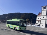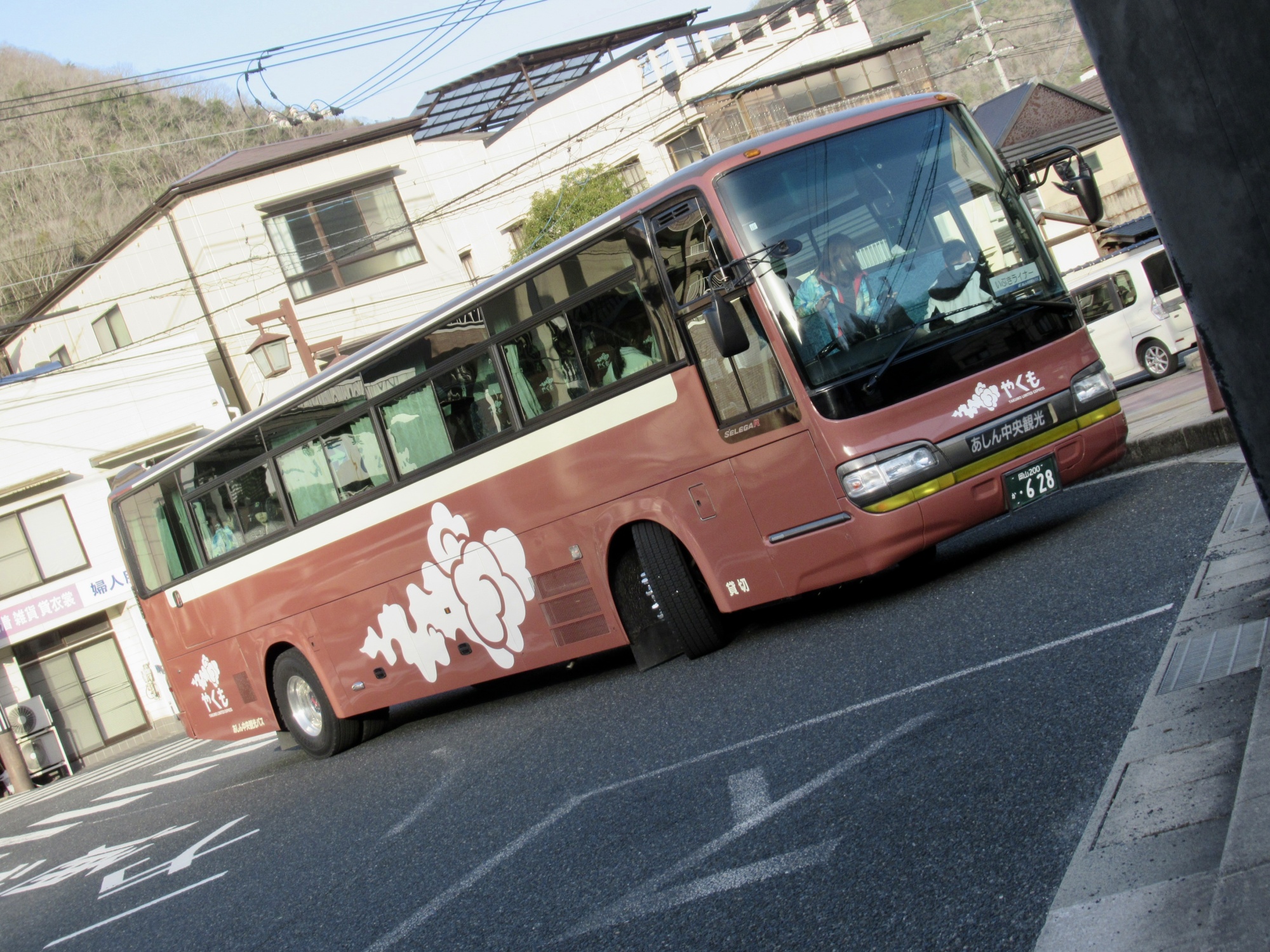 バスが特急やくもと同じ柄.スノボを担いだ若者がたくさん降りて来ました.
