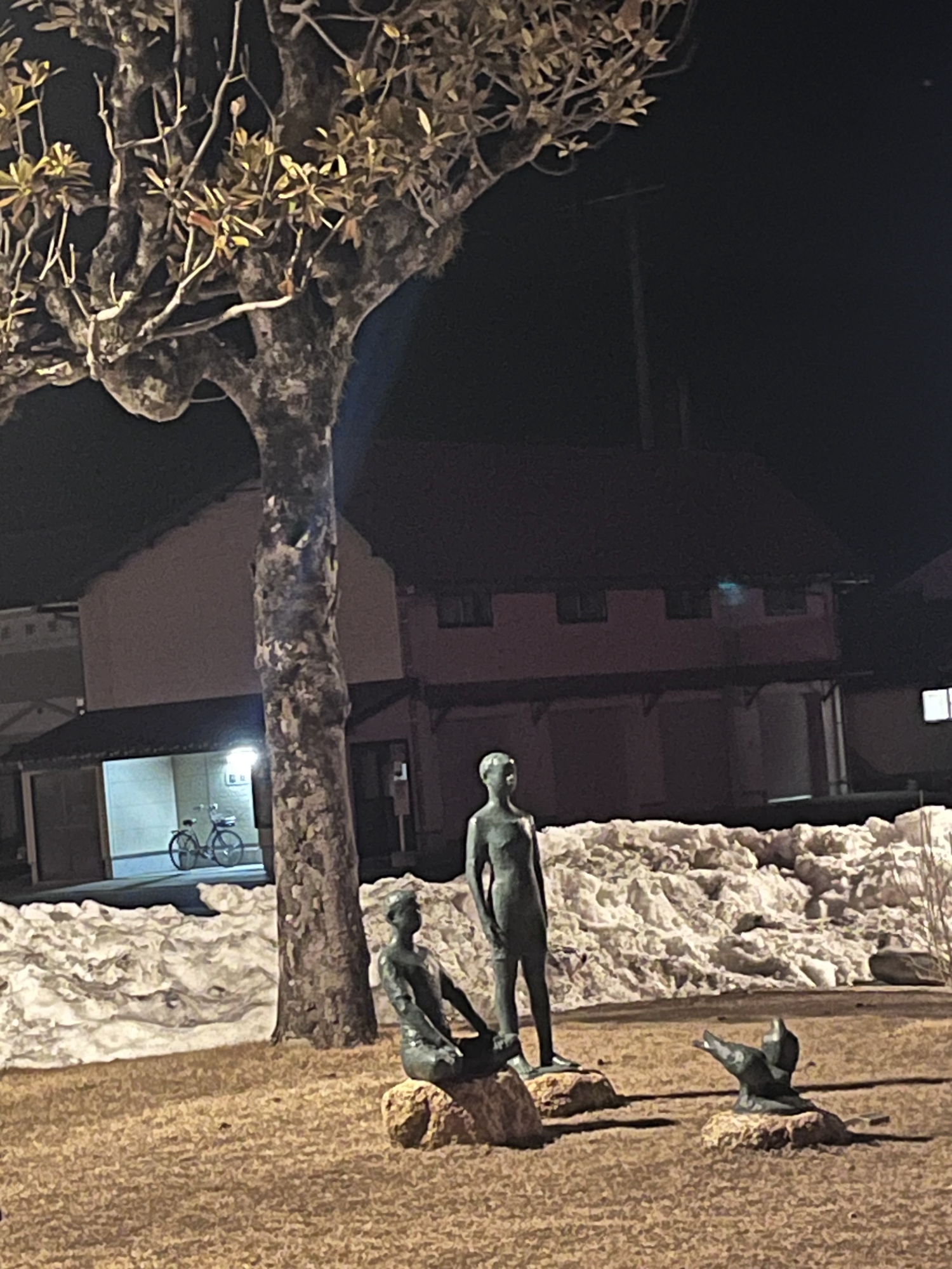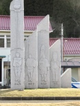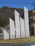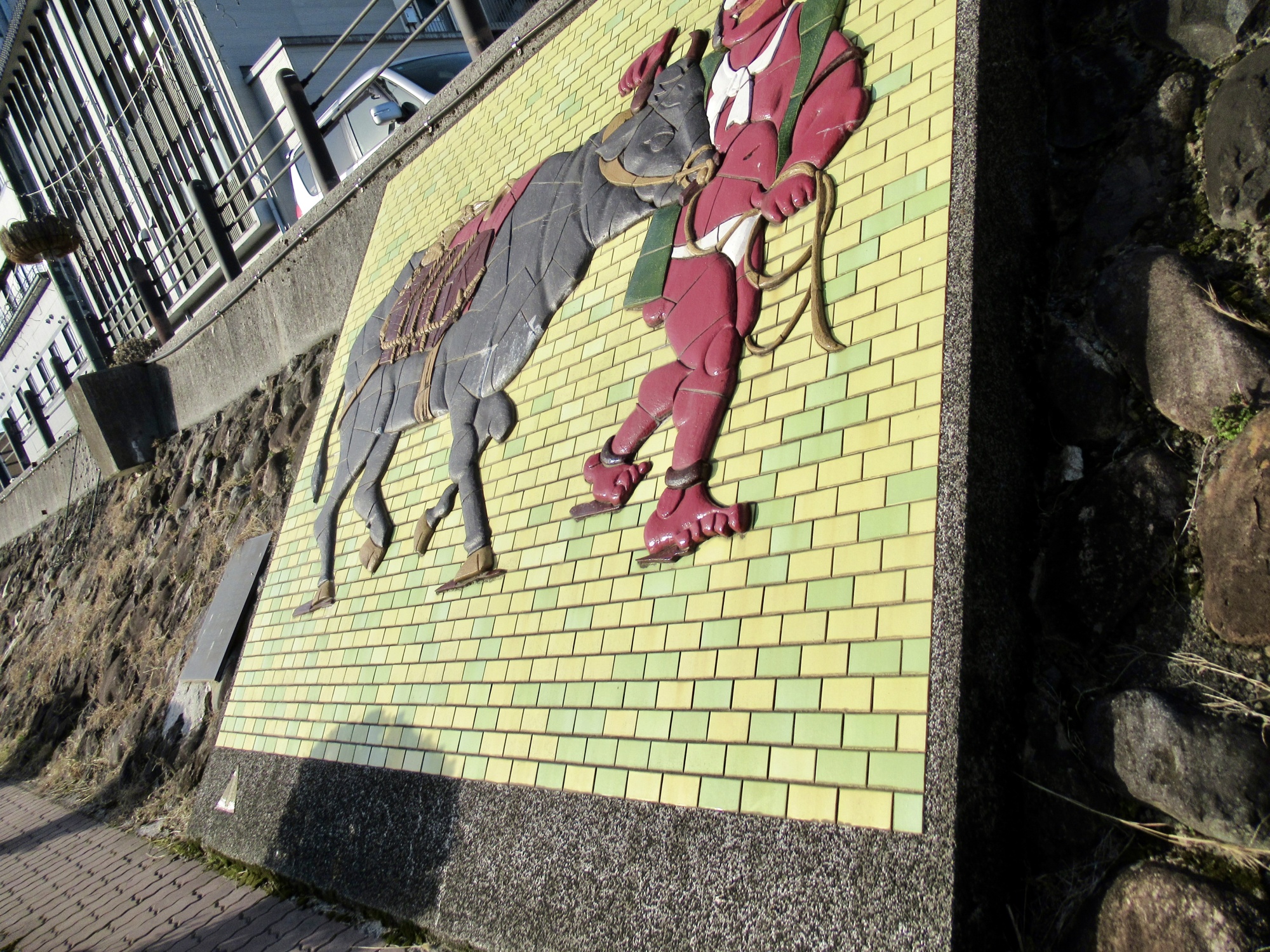 駅近くの河川敷は、いろんなアートで郷土紹介です.