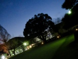 到着……いつもながら、奥の藪っていうのか、庭園でもなく……裏手から.