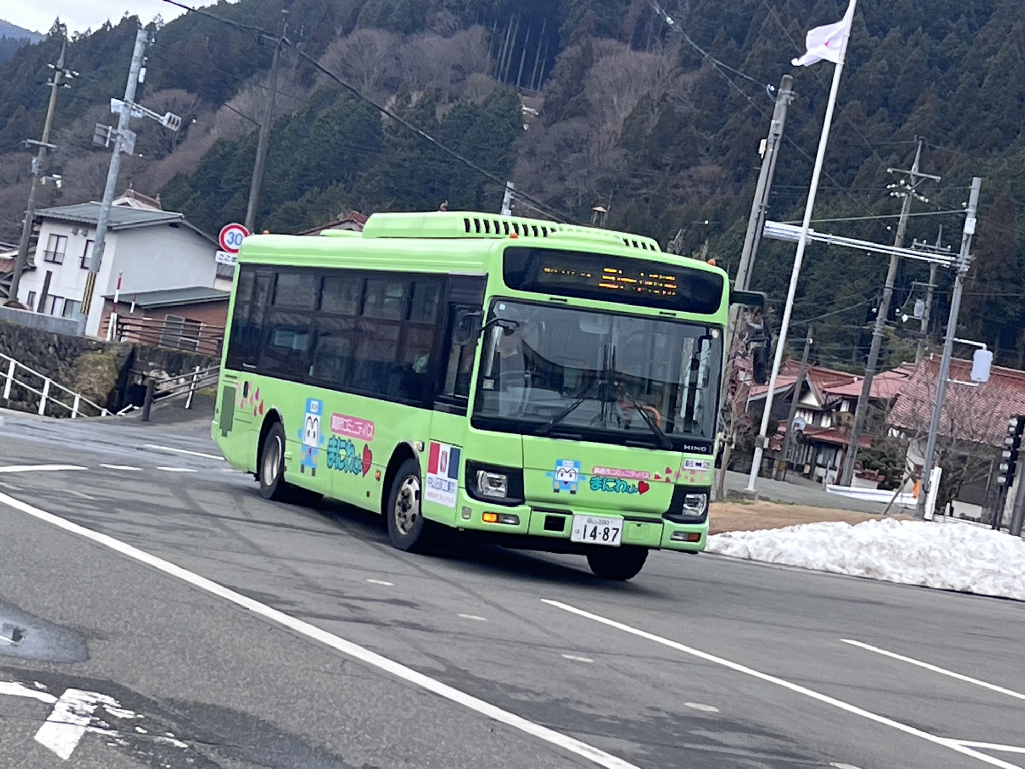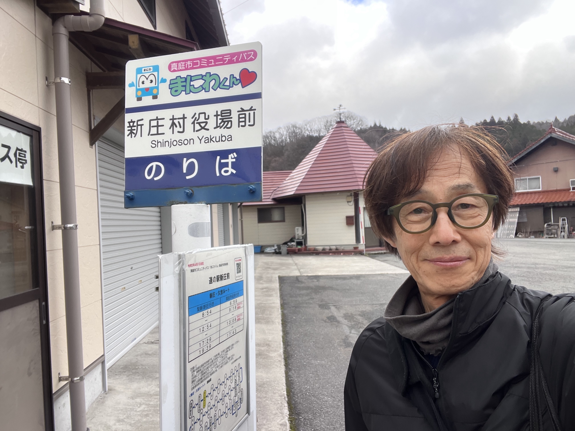 役場前からポスト経由でバス停へ.
