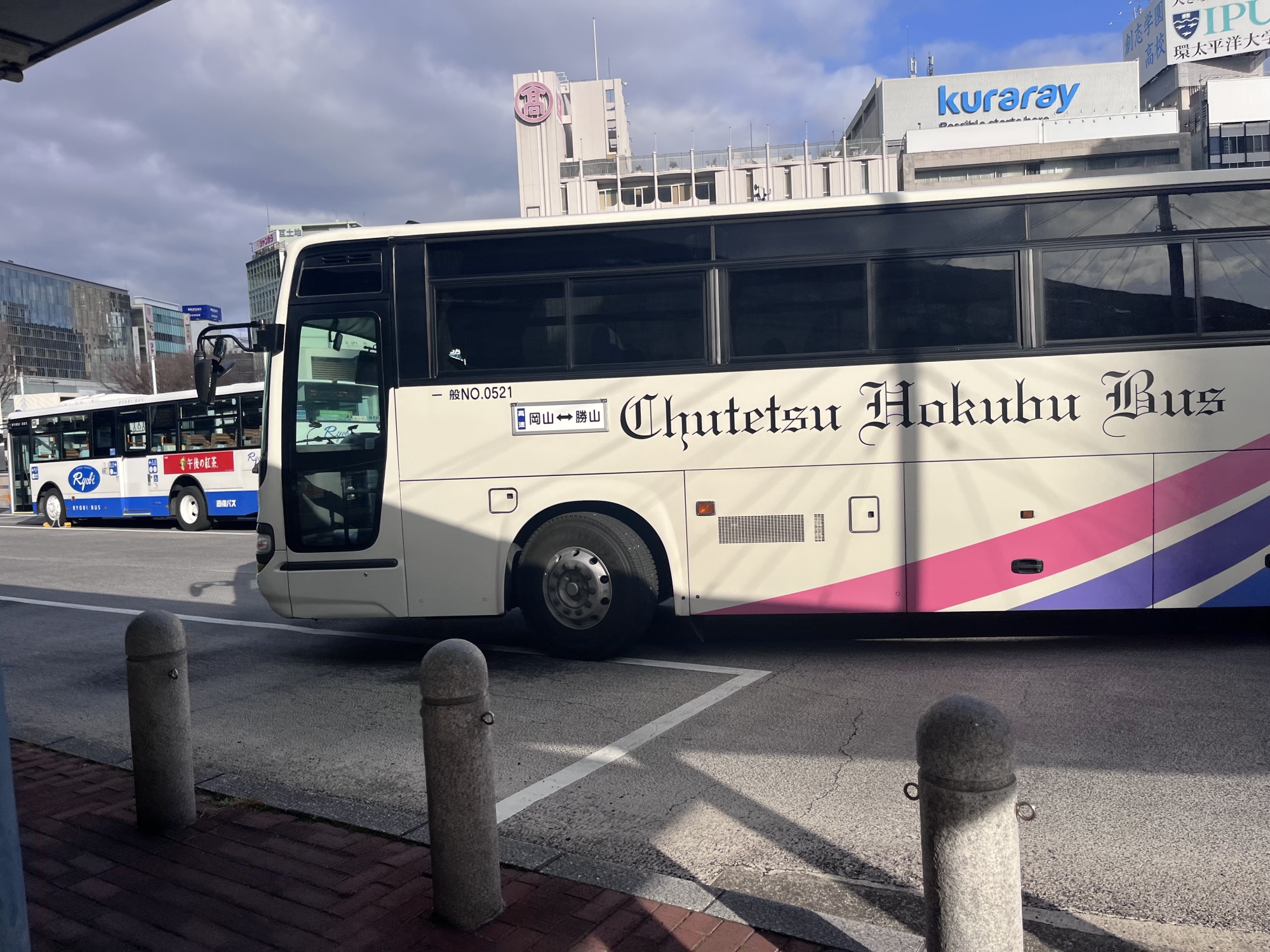 そこから商大前、岡大筋、スポーツセンター前、で岡山駅です.