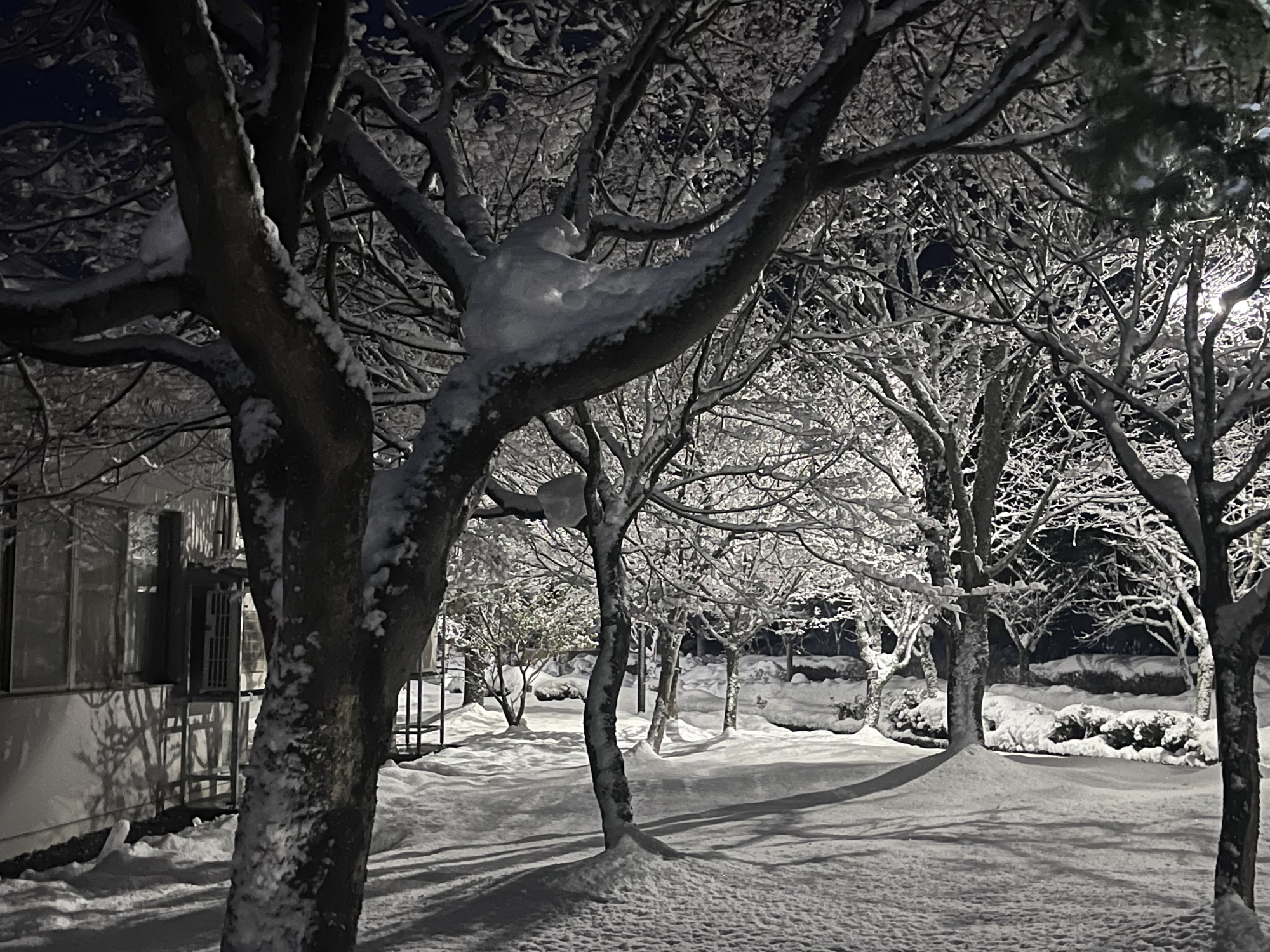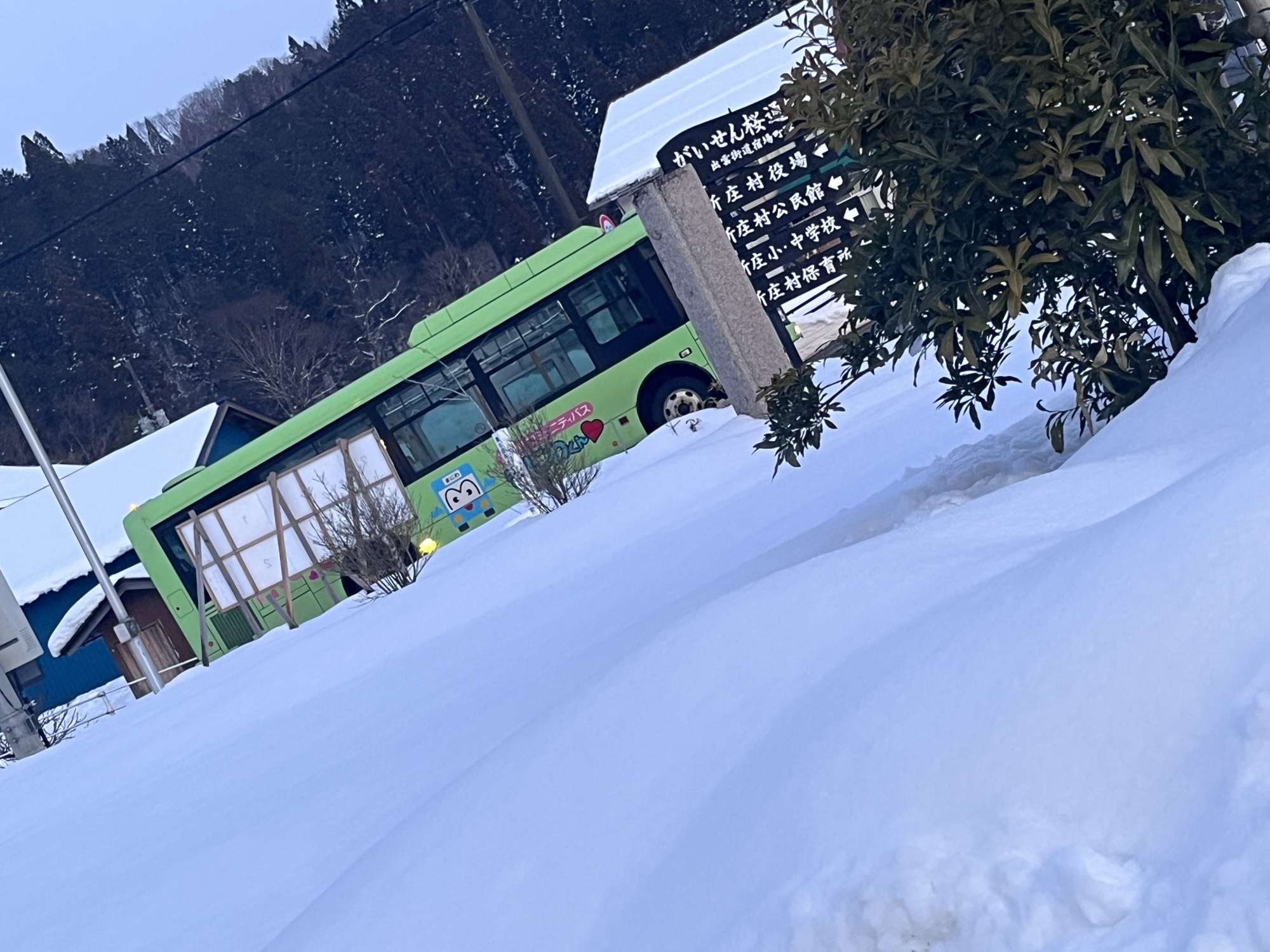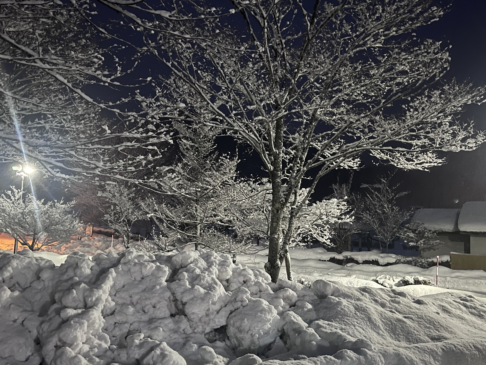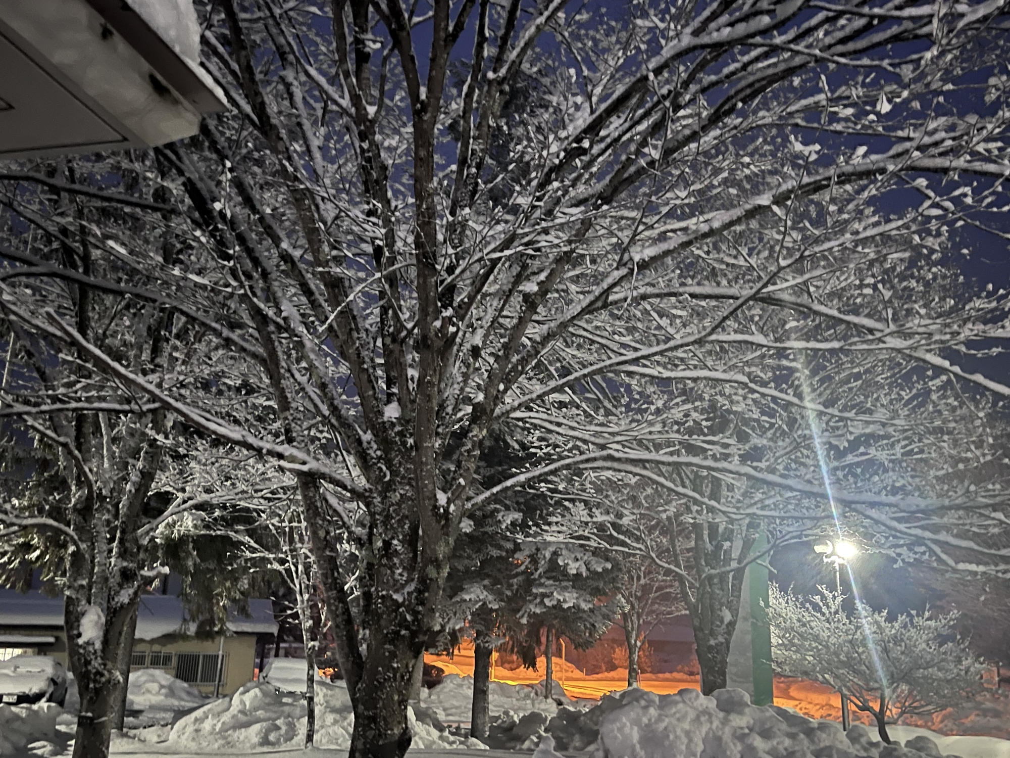 朝4:19には村内放送で、大雪警報発令のアナウンス.