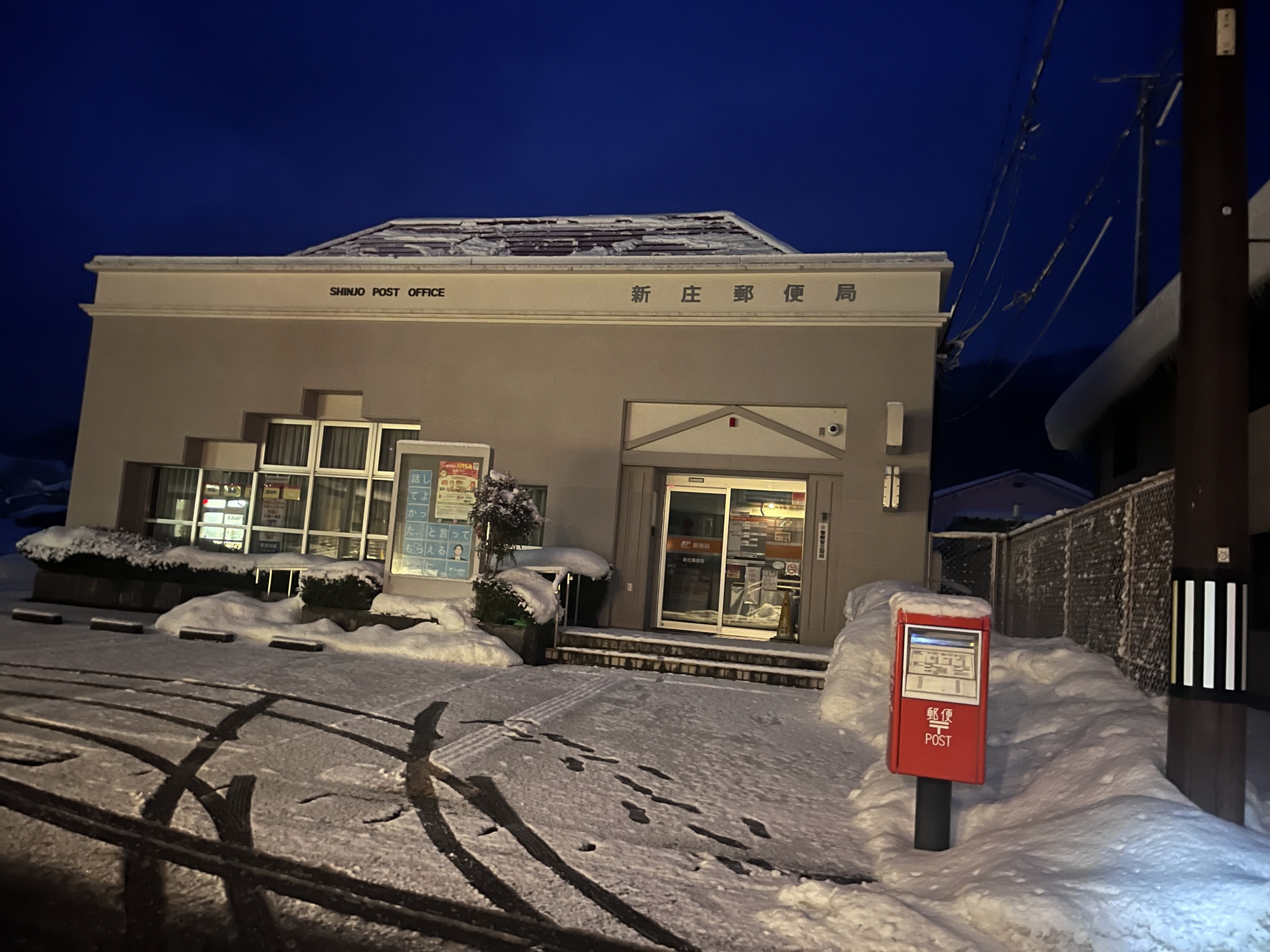 さて、昼は役場の前を抜けて……郵便局へ、