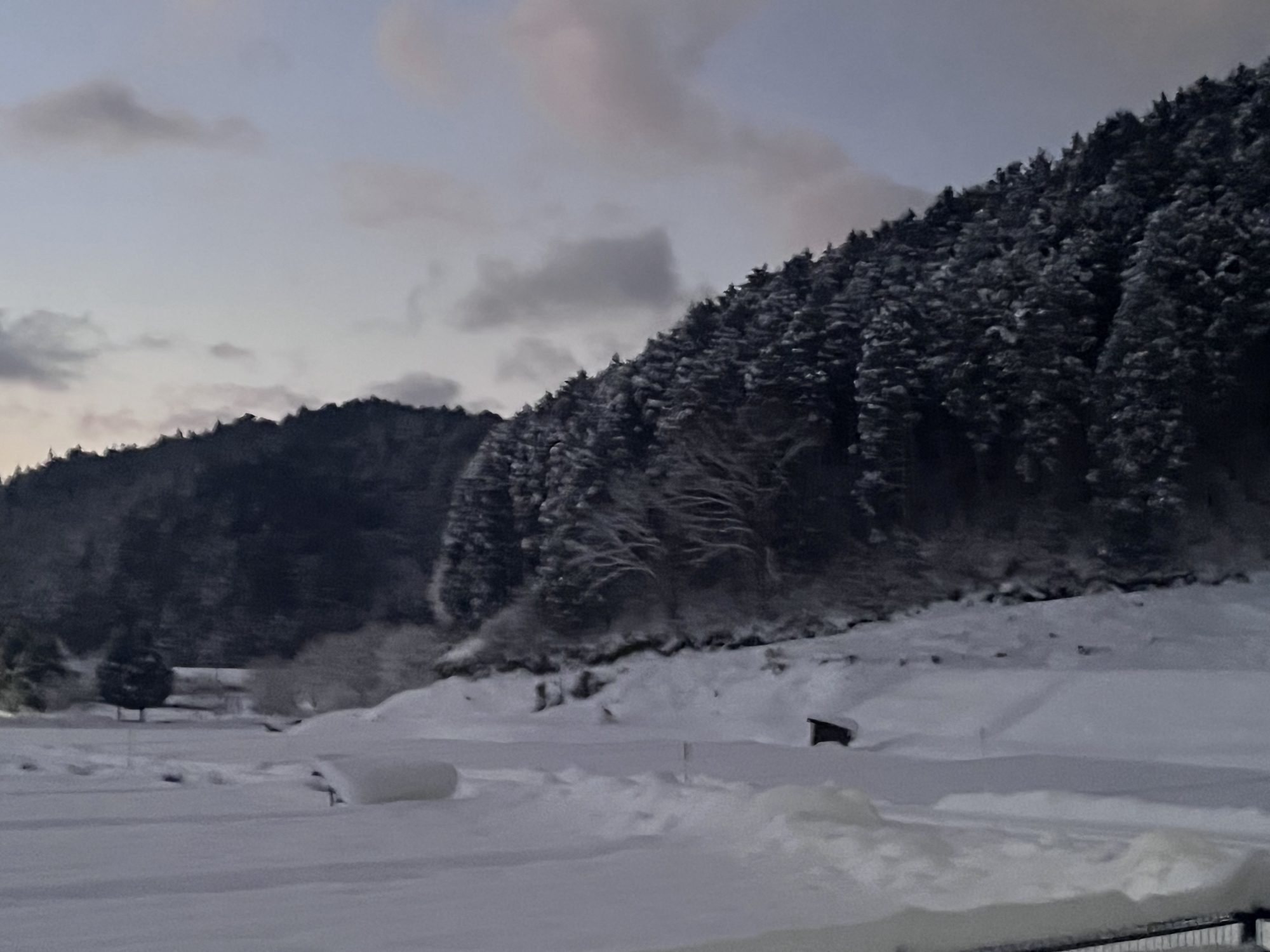 大量ではないけど、雪が往復の間降っていました.
