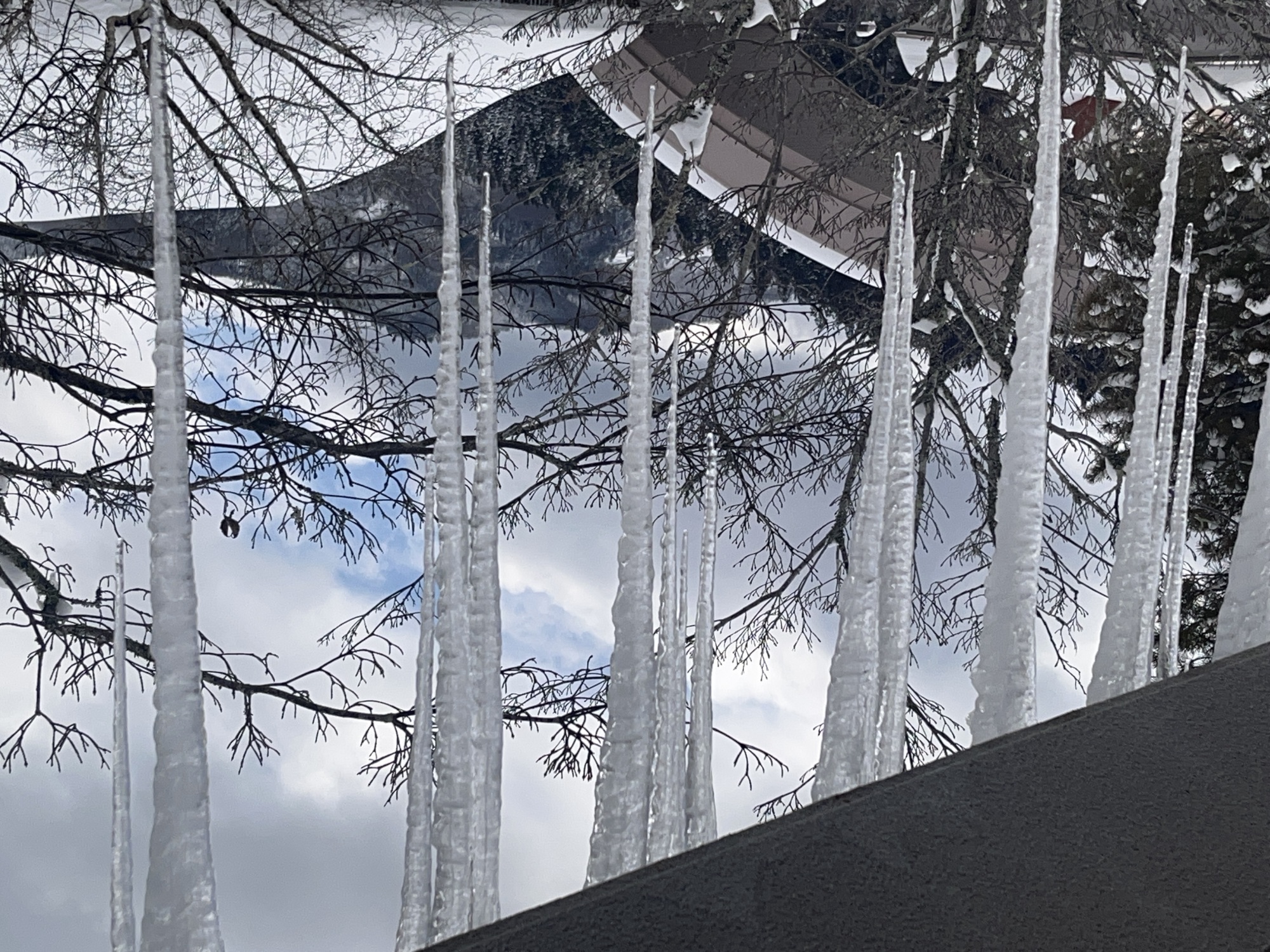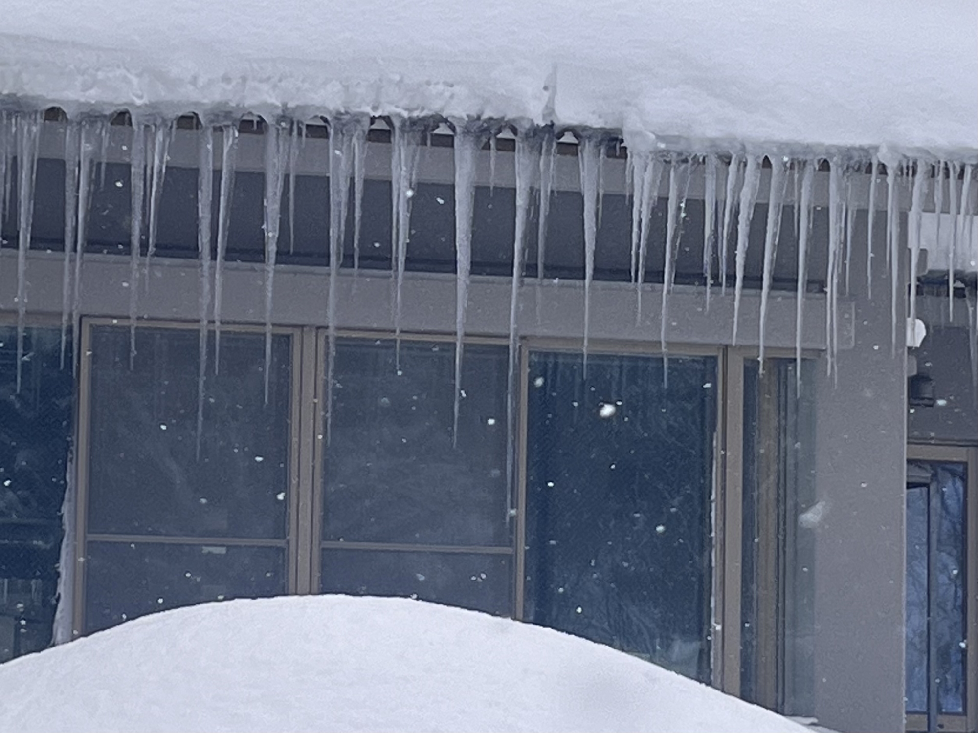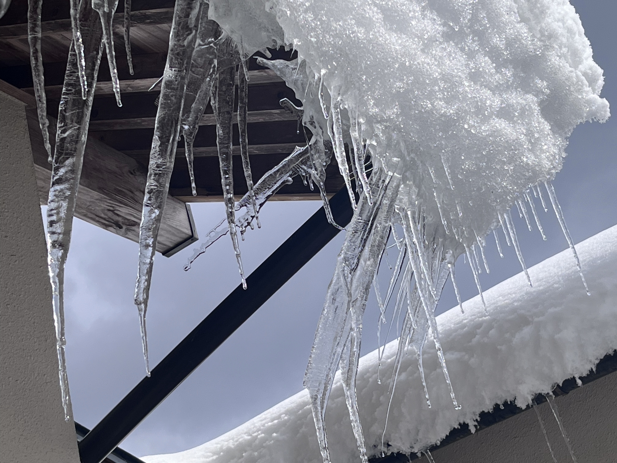 さて、官舎に戻って……玄関先の氷柱の伸び方がすごい.