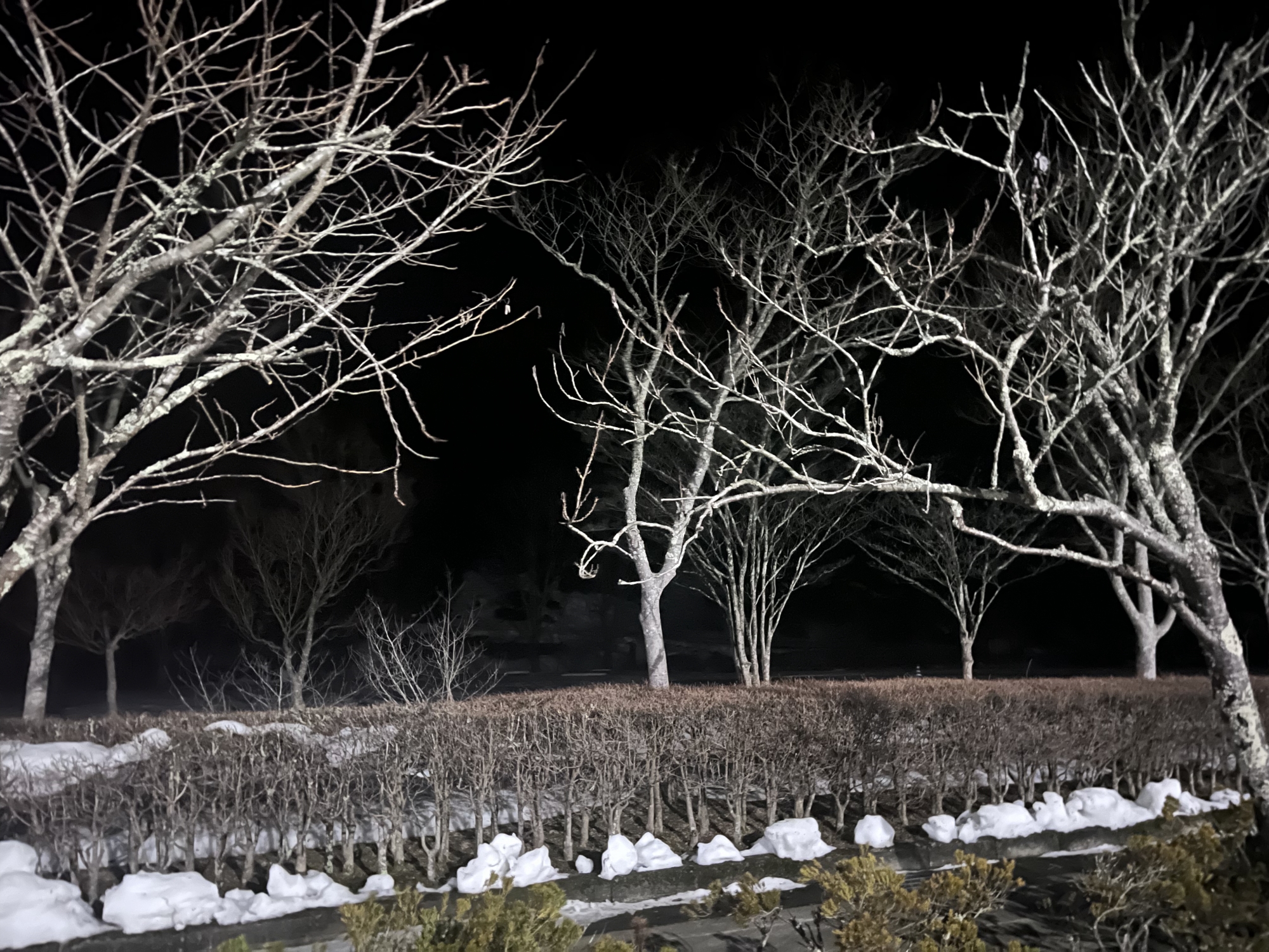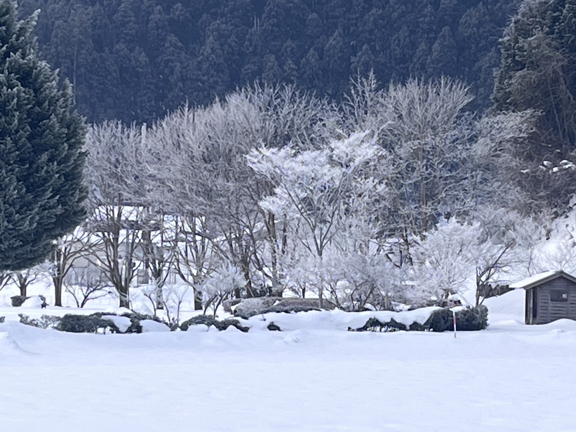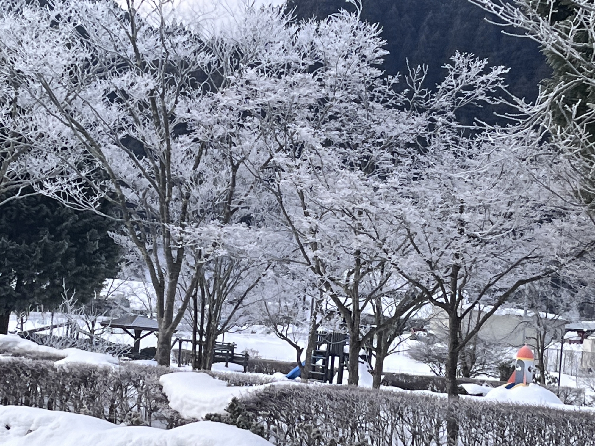 そして、木々が白く縁取り.