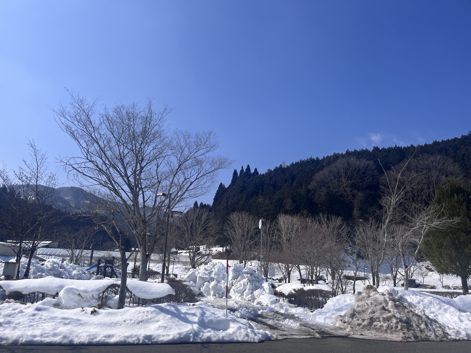 まだ、掻かれた雪の山が…….