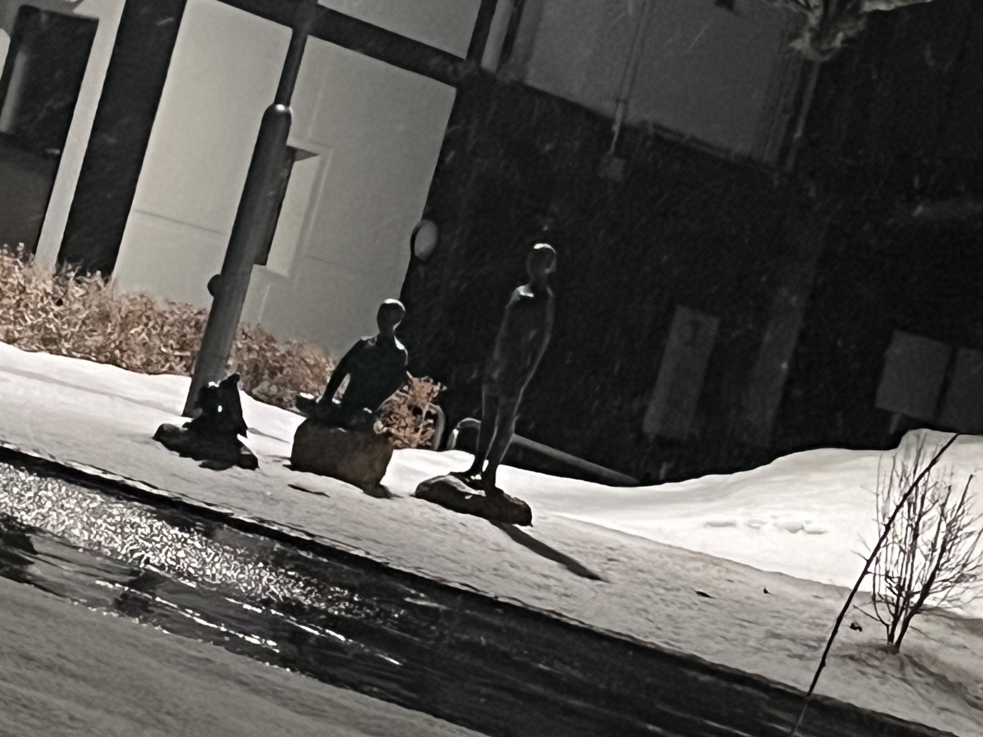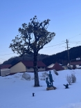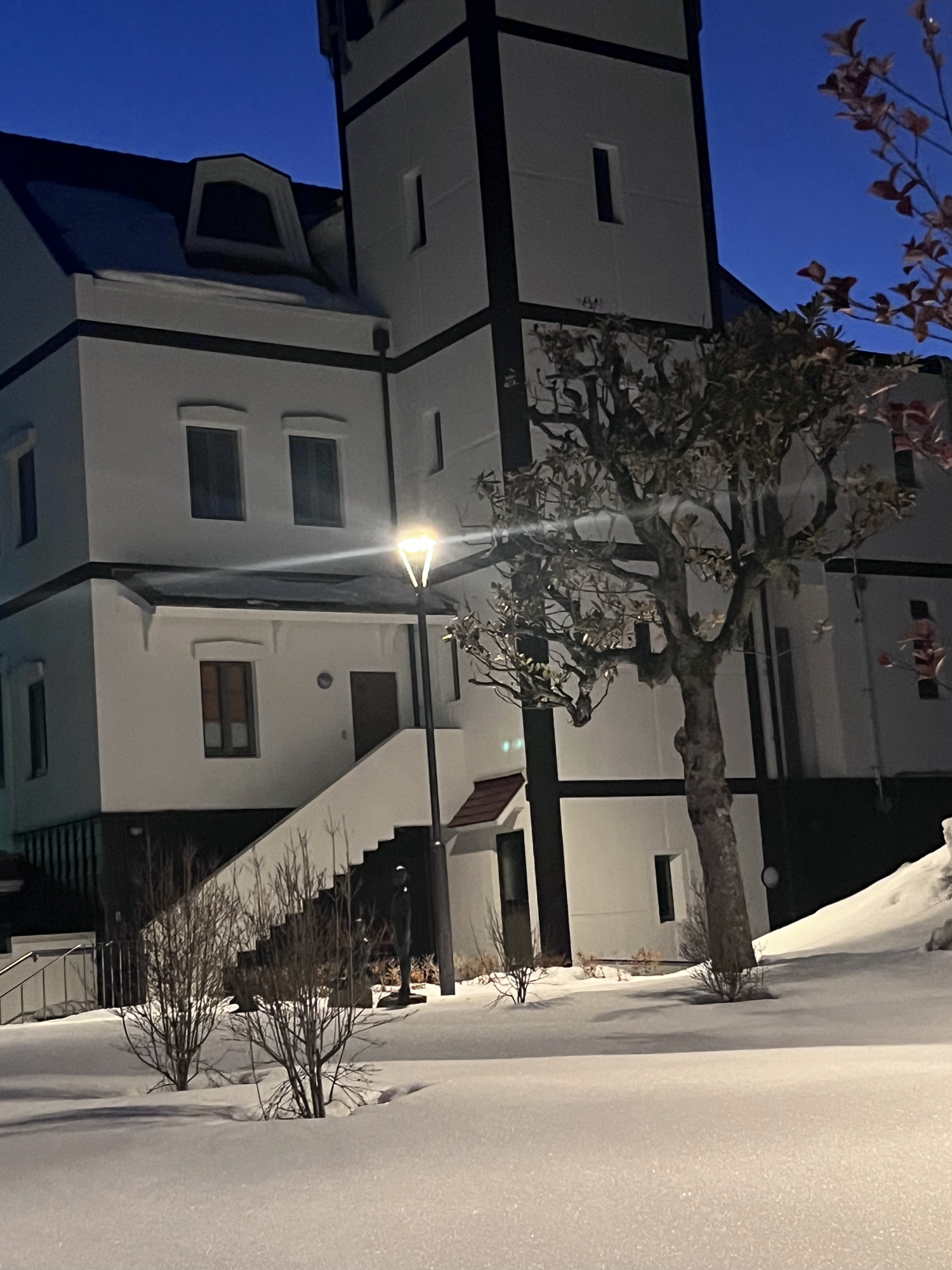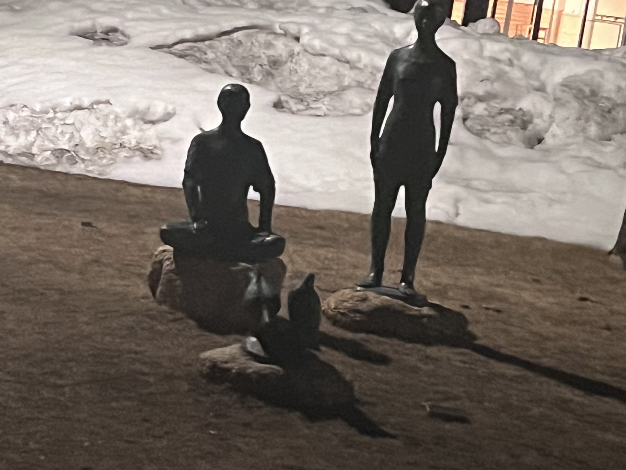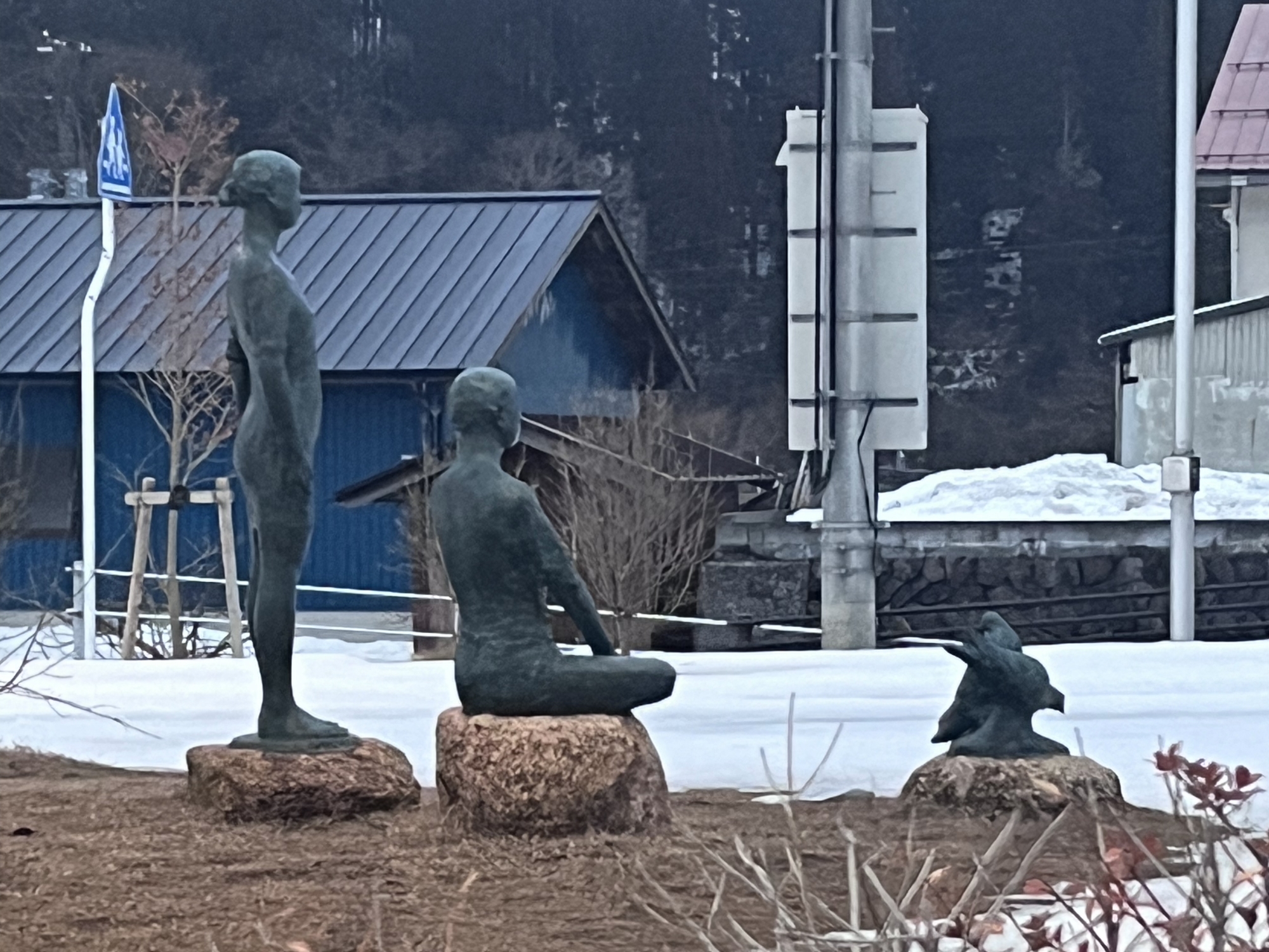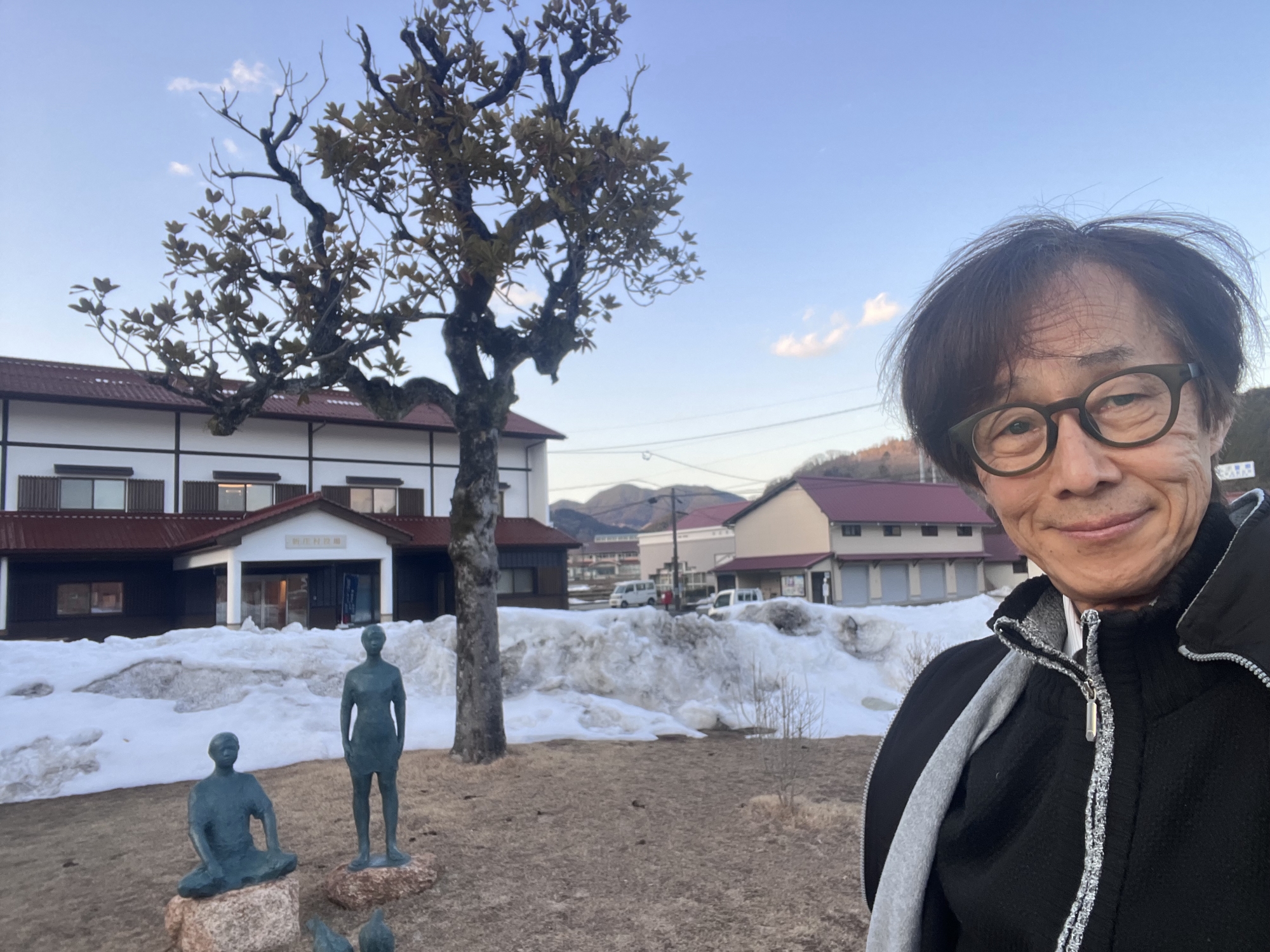 さて、金盛先生の像の所の雪は解けてますね.