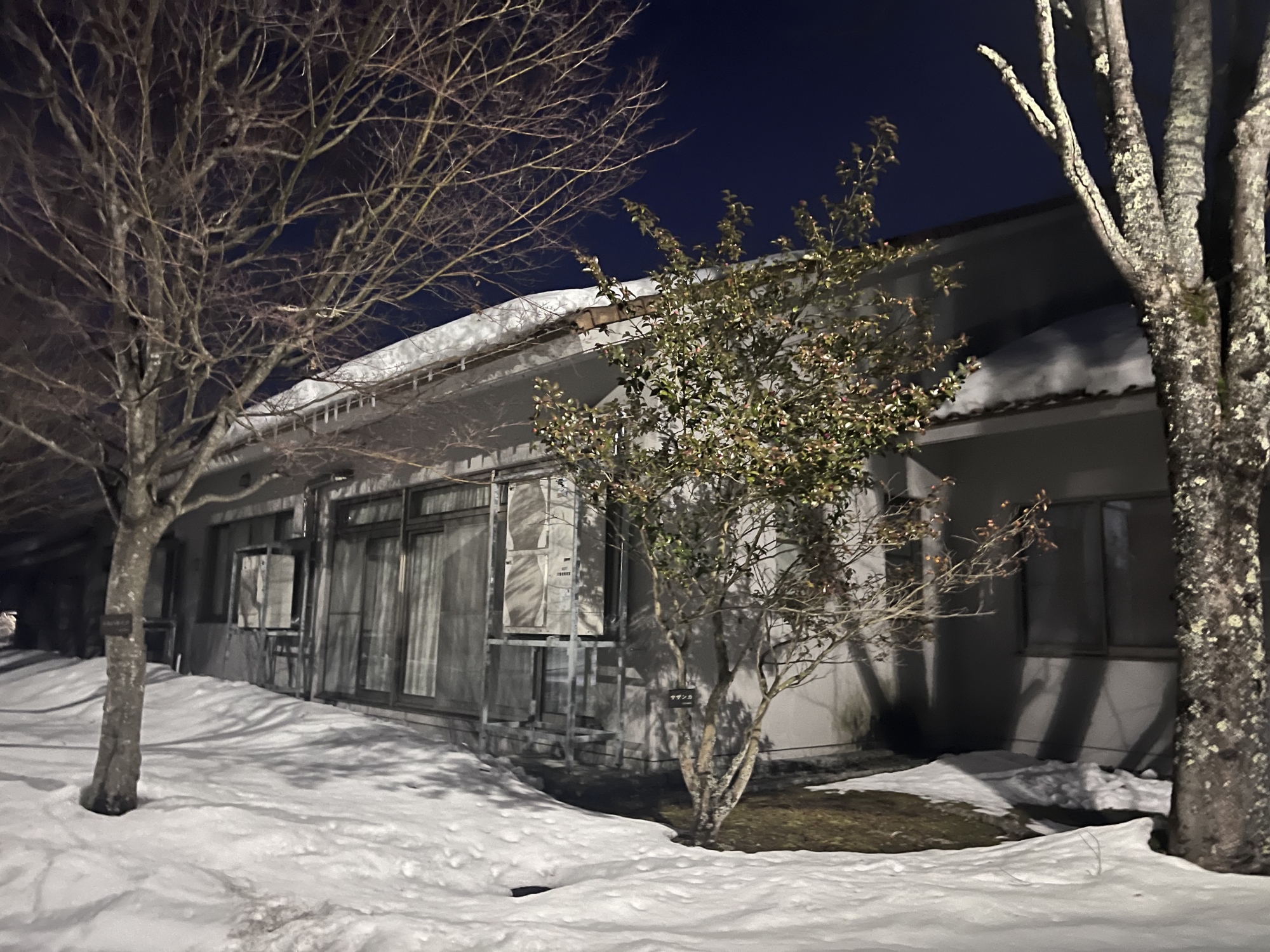 官舎横の氷柱(朝と夕).